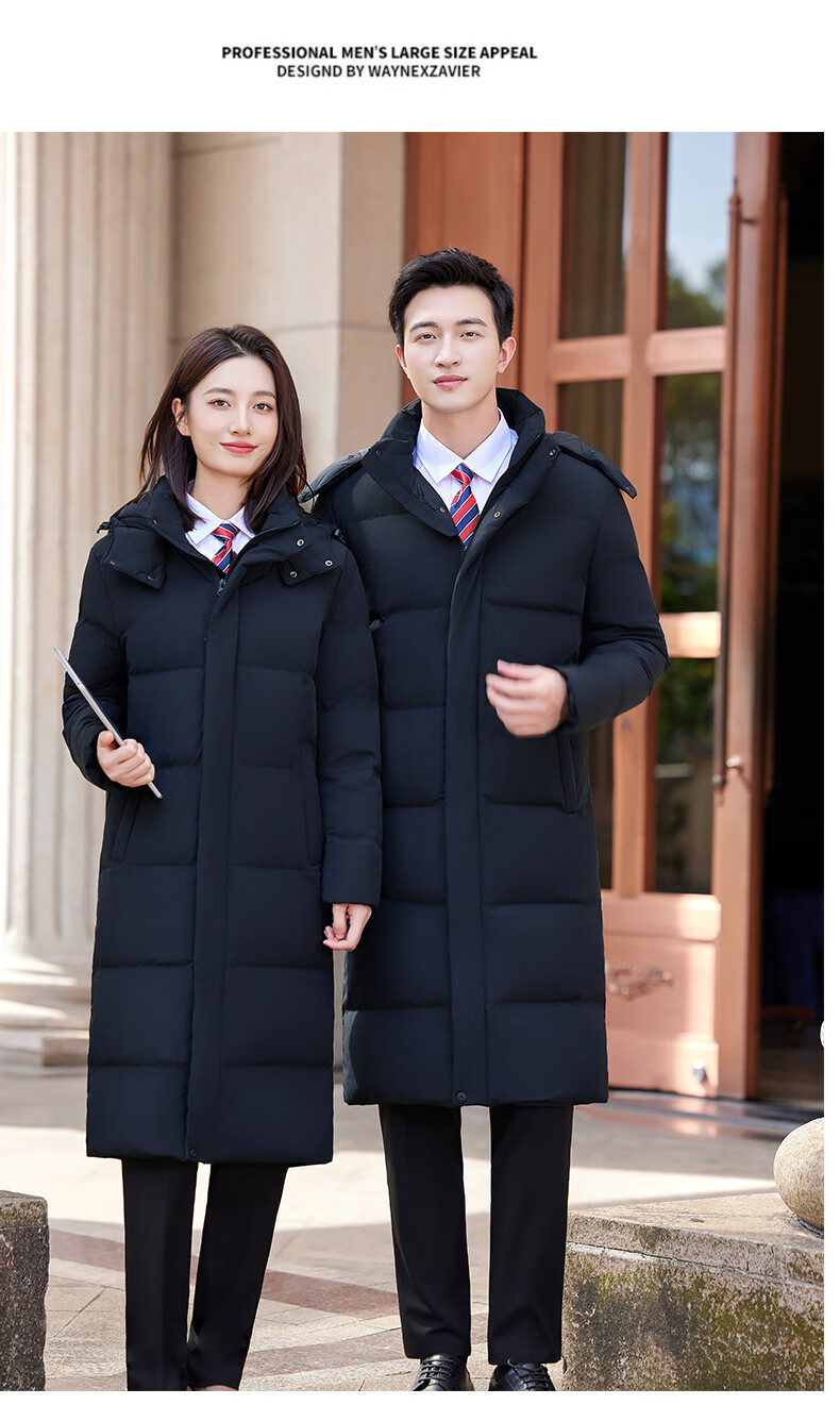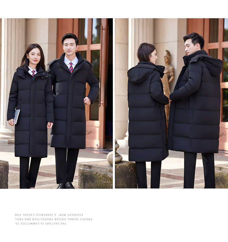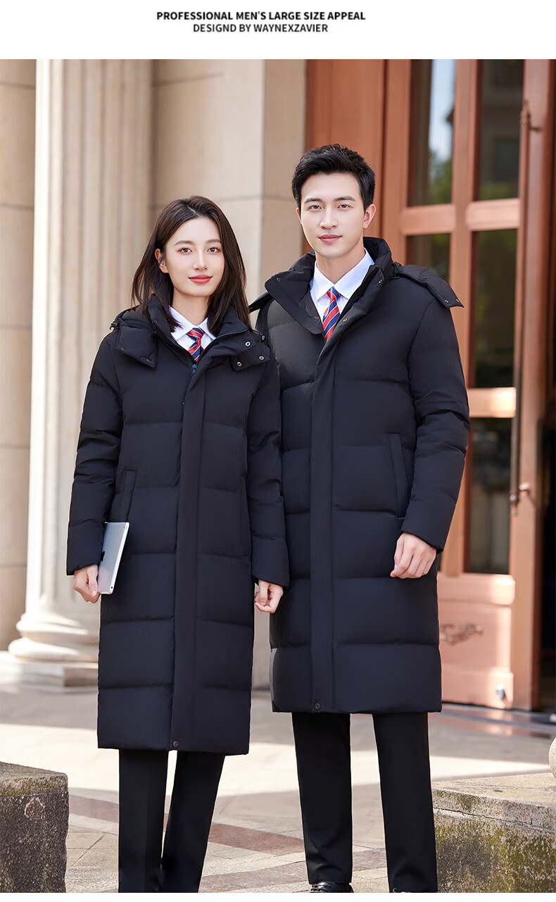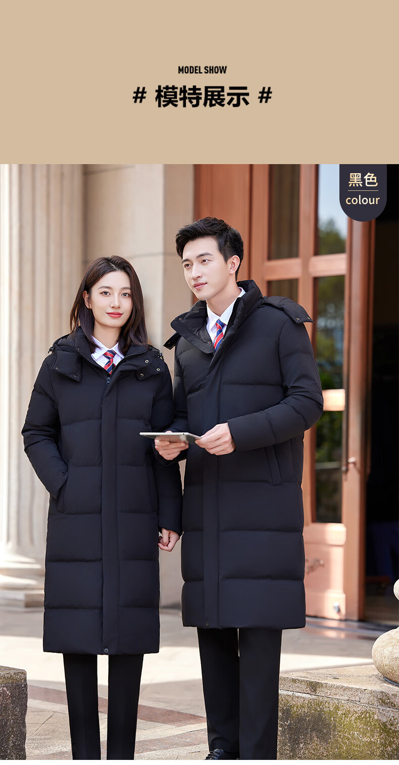 怡情姿加厚抗寒保暖中长款过膝白鸭绒羽绒服男女同款职业装冬季通勤外套 女-黑色羽绒服 S