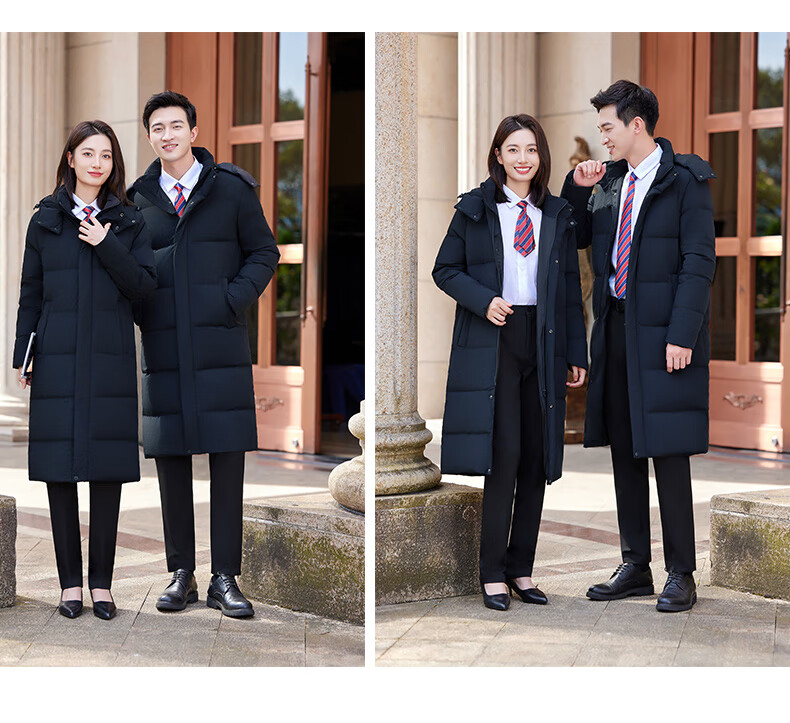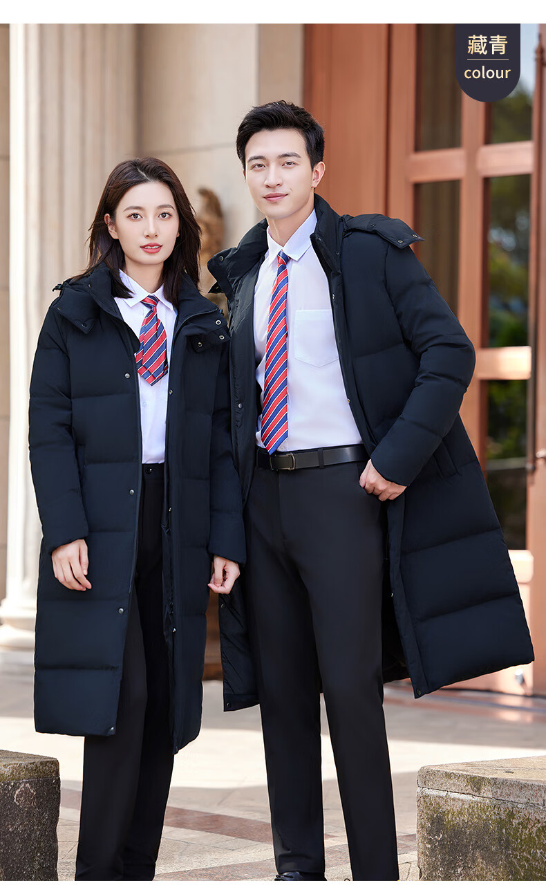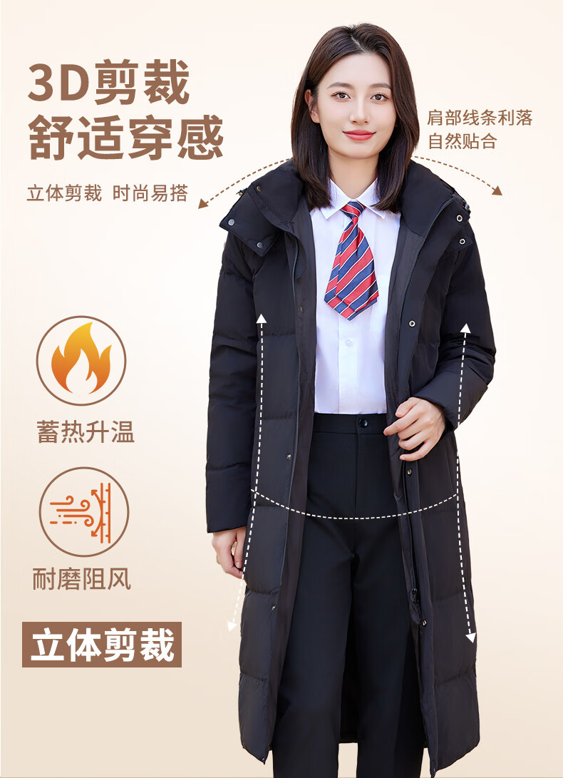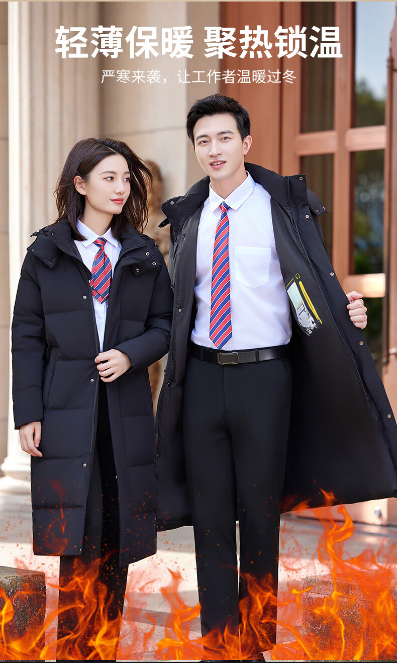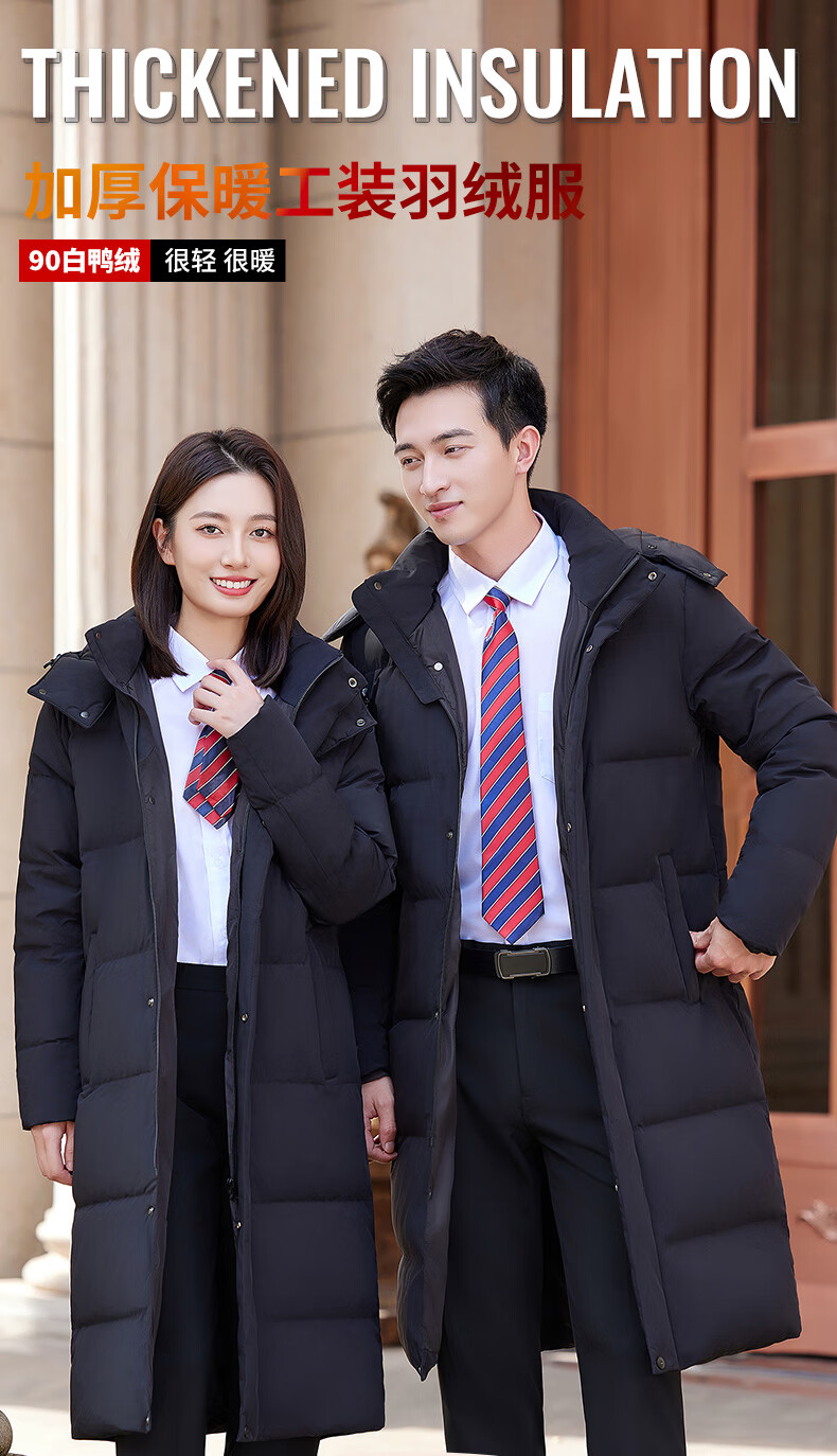 怡情姿加厚抗寒保暖中长款过膝白鸭绒羽绒服男女同款职业装冬季通勤外套 女-黑色羽绒服 S