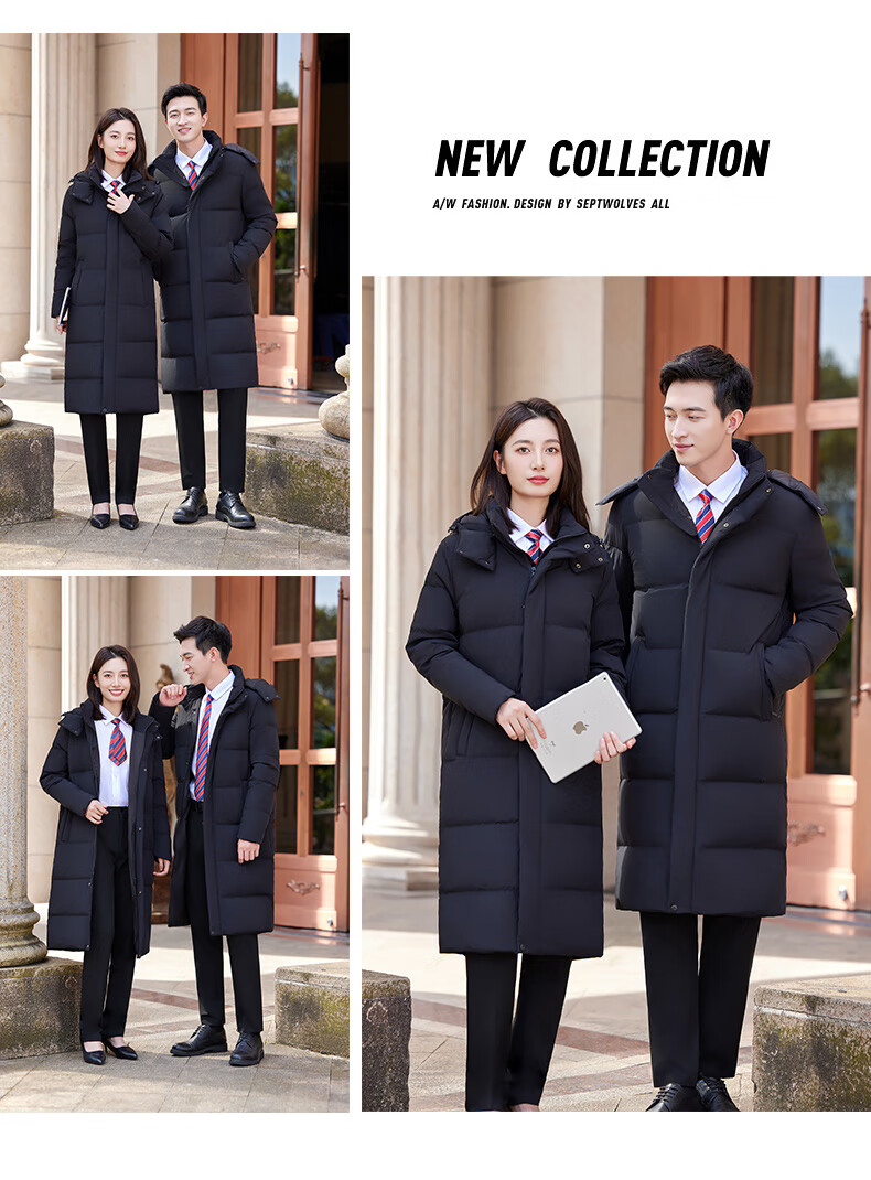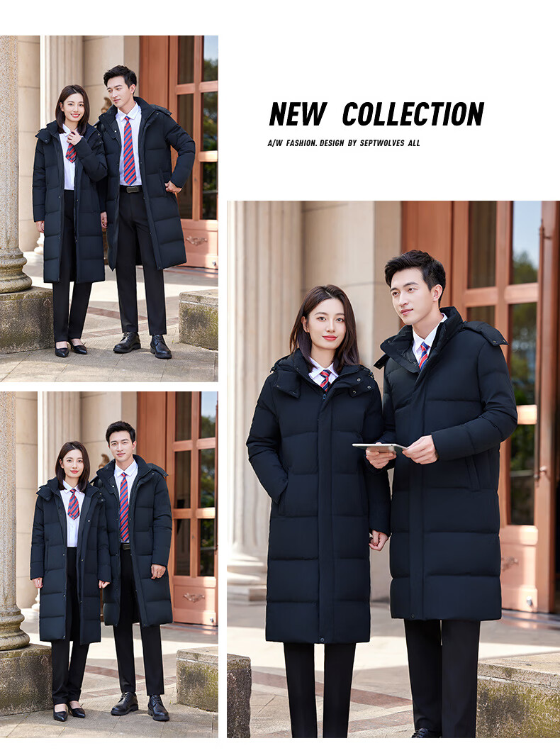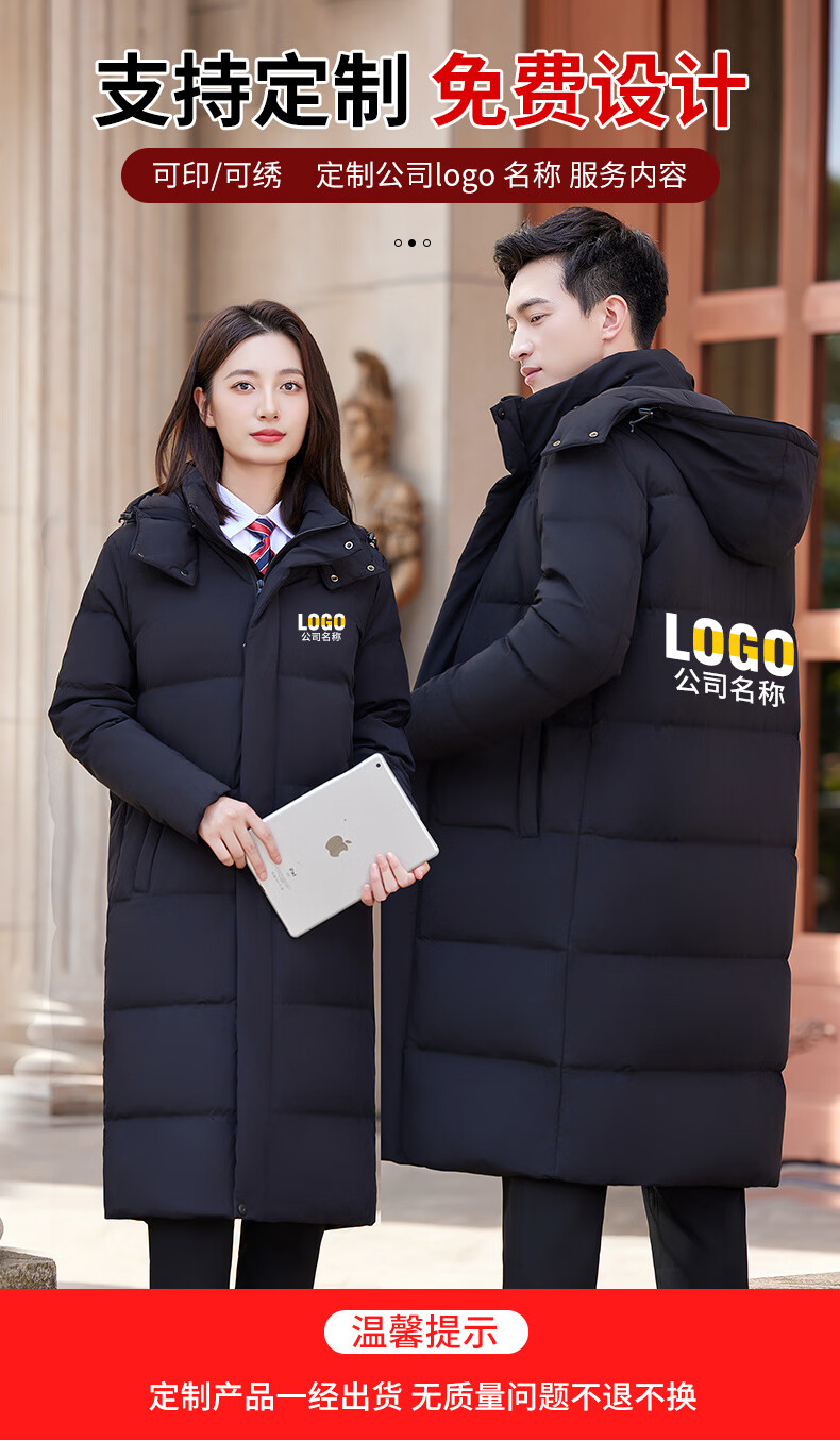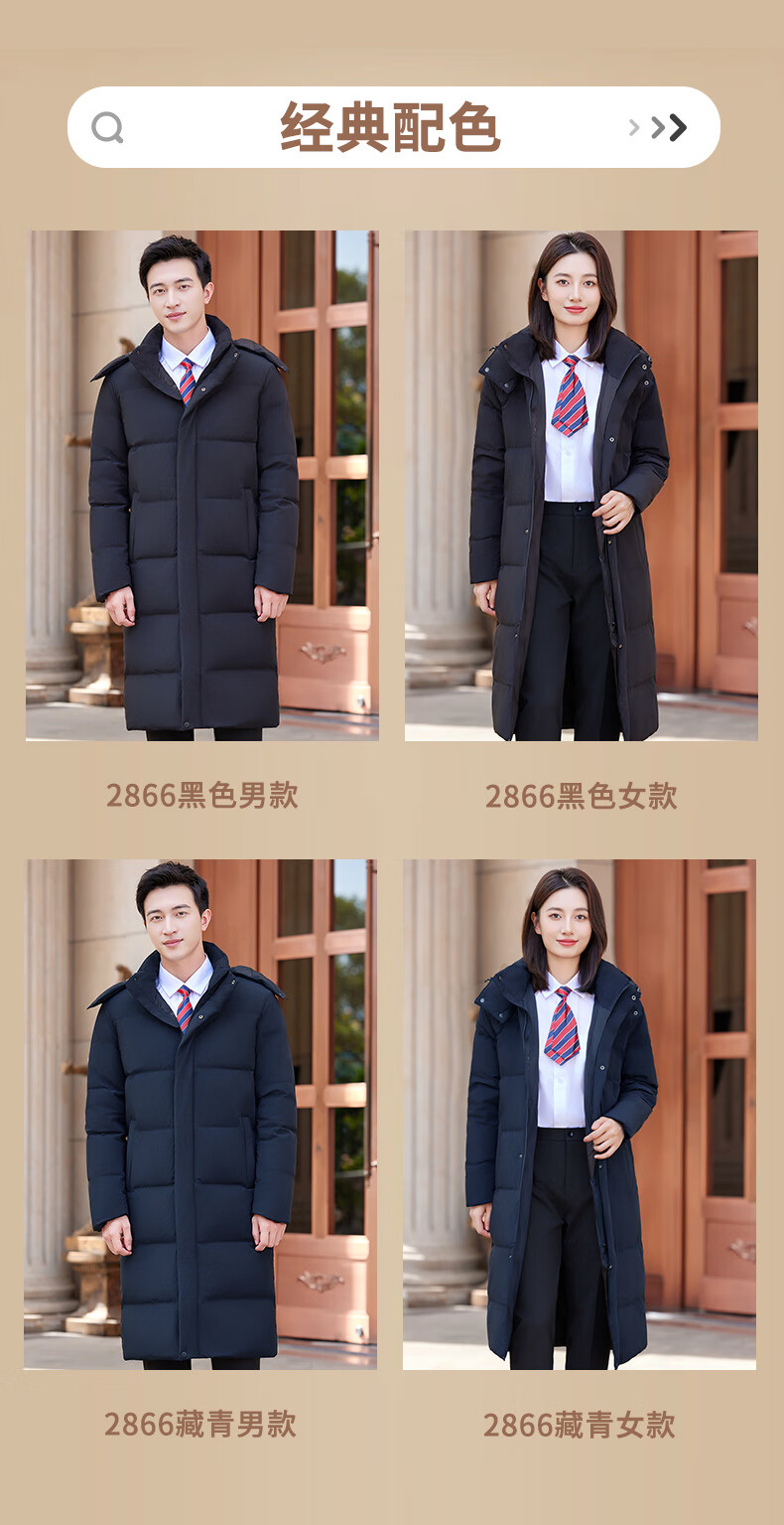 怡情姿加厚抗寒保暖中长款过膝白鸭绒羽绒服男女同款职业装冬季通勤外套 女-黑色羽绒服 S