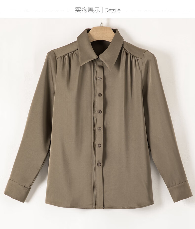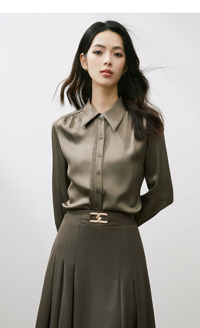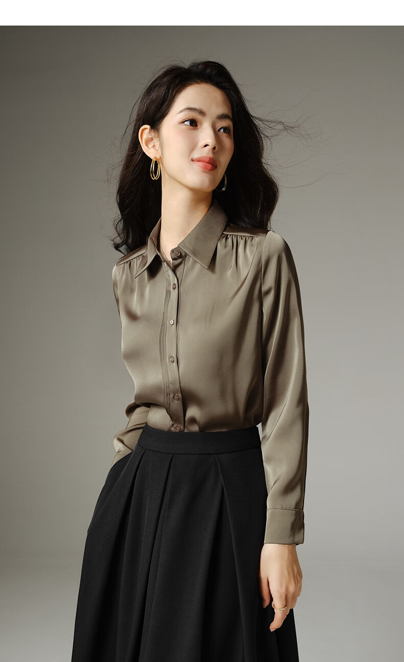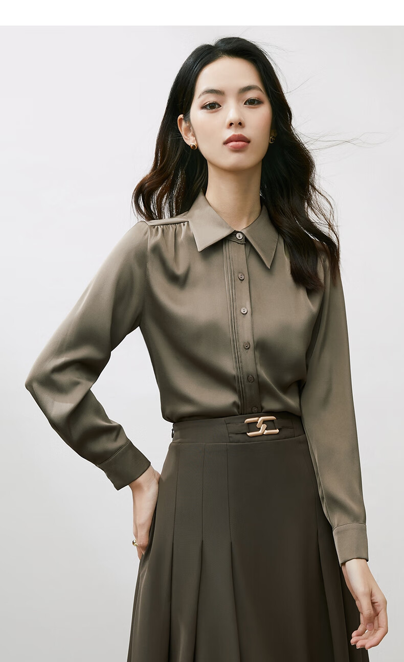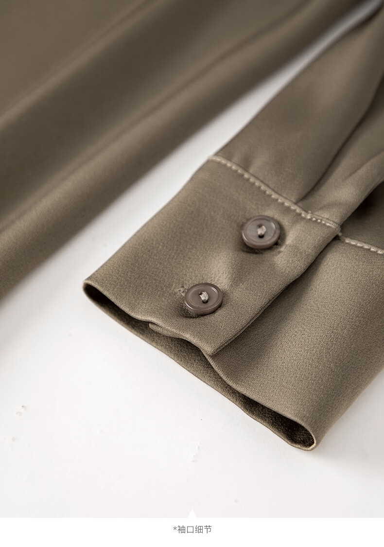 晚白【新品】职场轻正装缎面垂顺衬衫2026春季气质百搭衬衣女上衣 深棕色 M