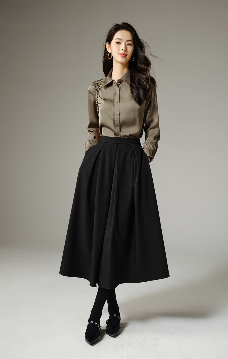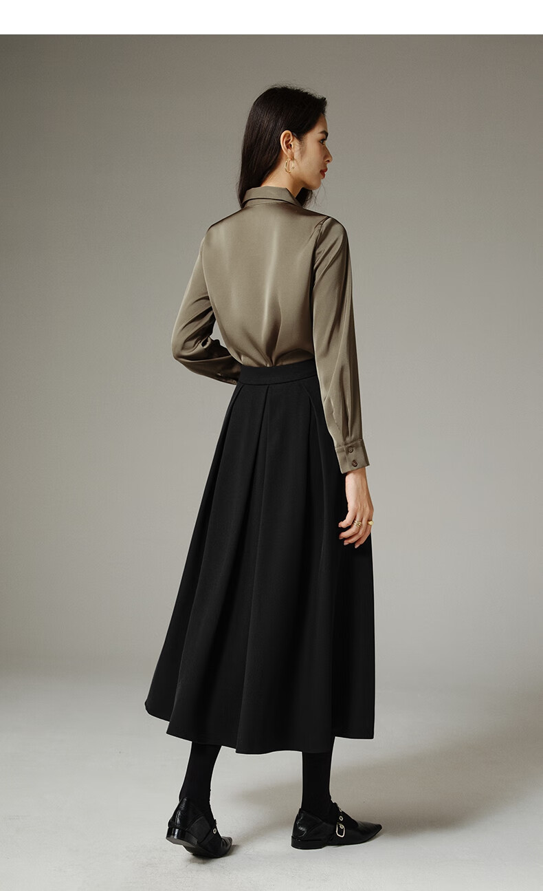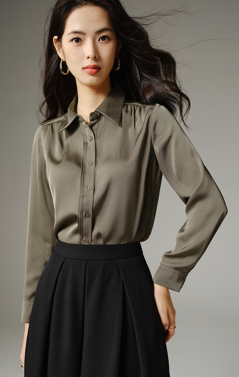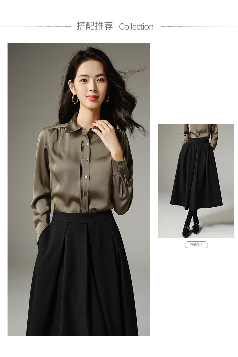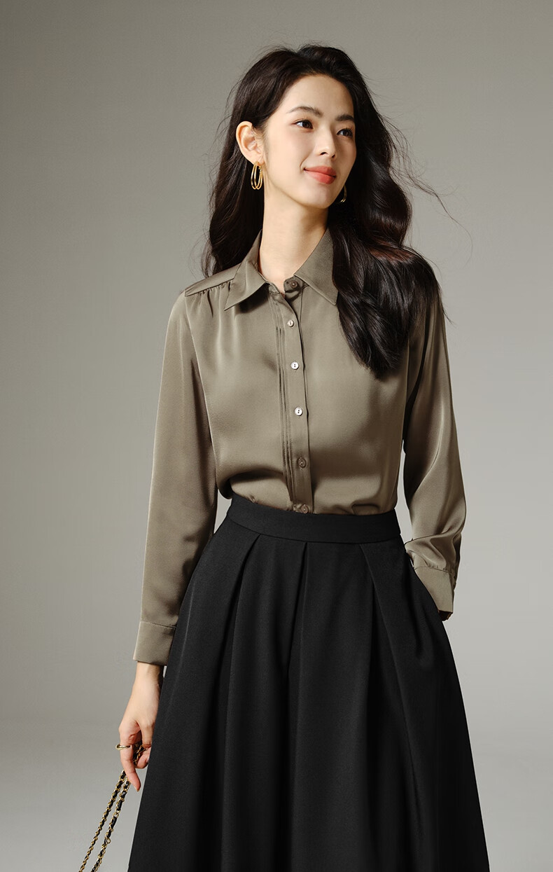 晚白【新品】职场轻正装缎面垂顺衬衫2026春季气质百搭衬衣女上衣 深棕色 M