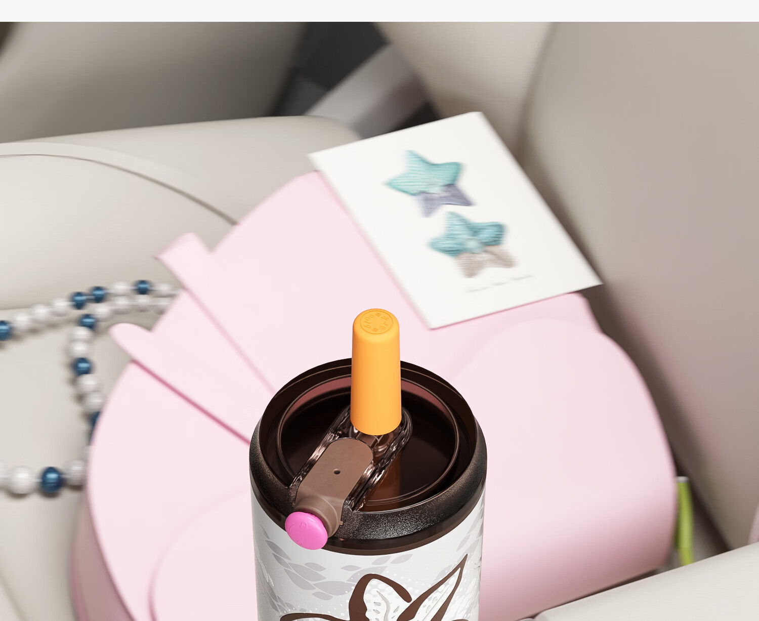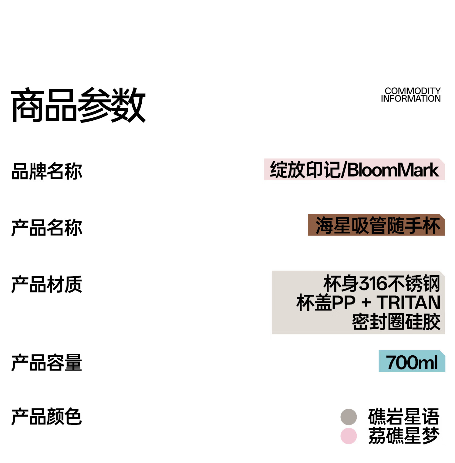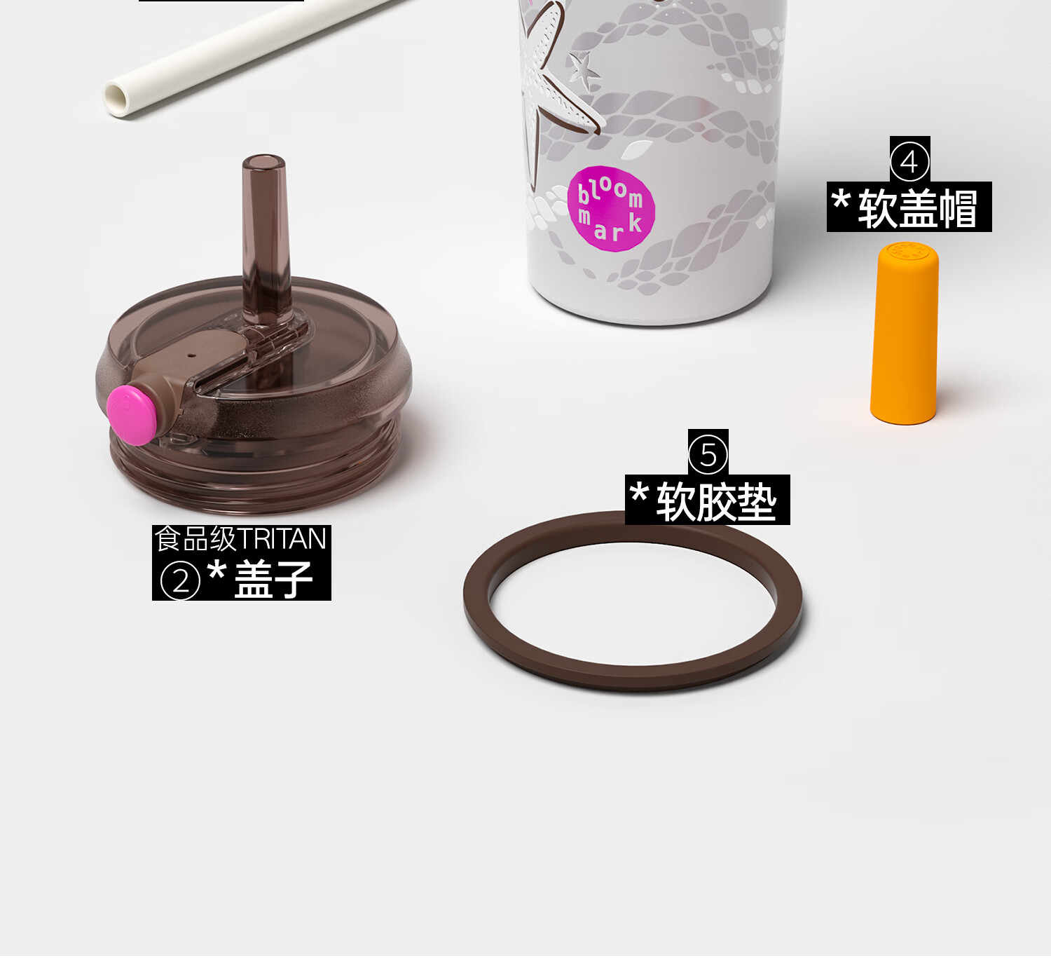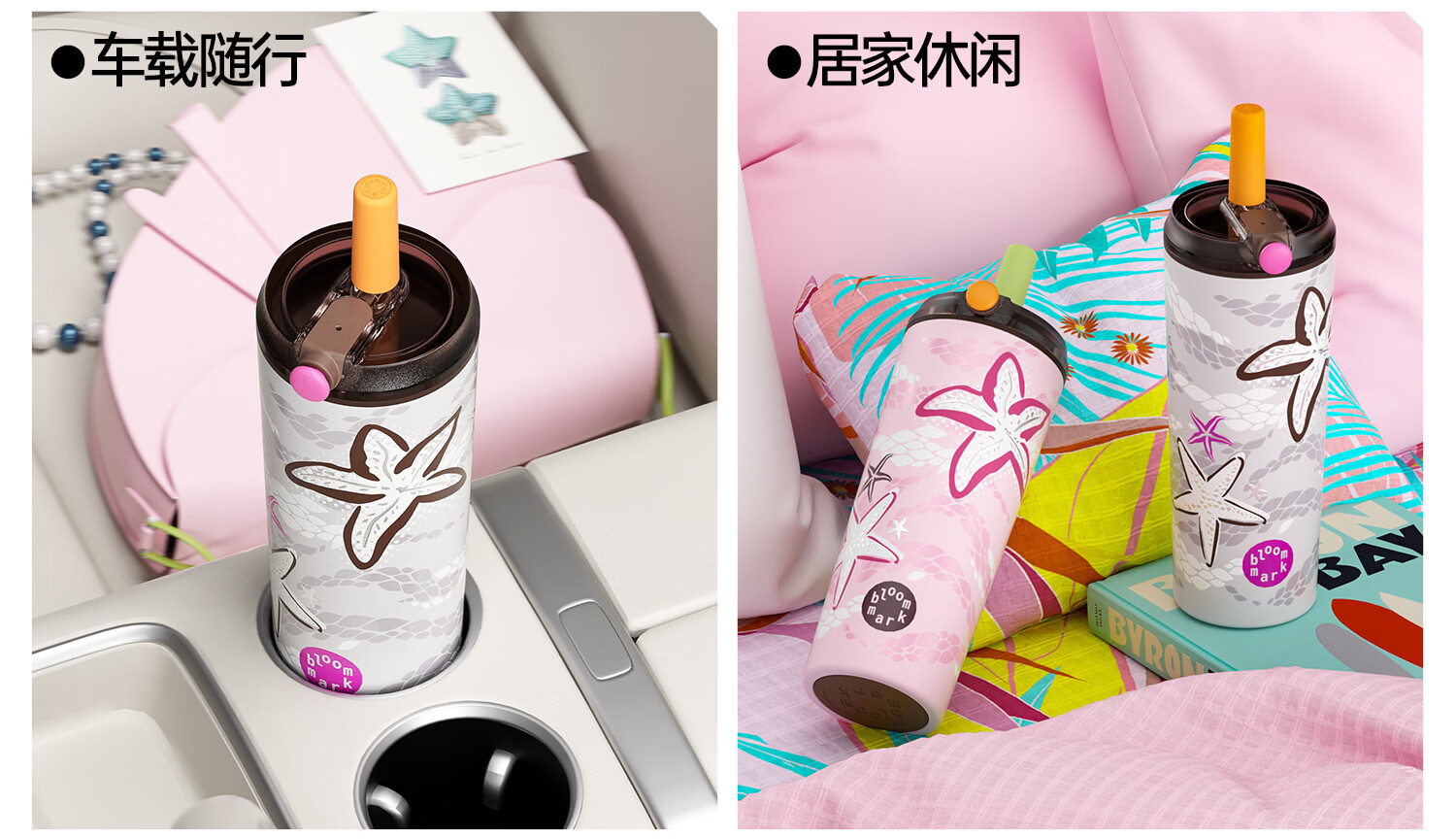 BLOOMMARK保温杯大容量女生不锈钢内胆带吸管杯子送礼便携车载水杯 礁岩星语