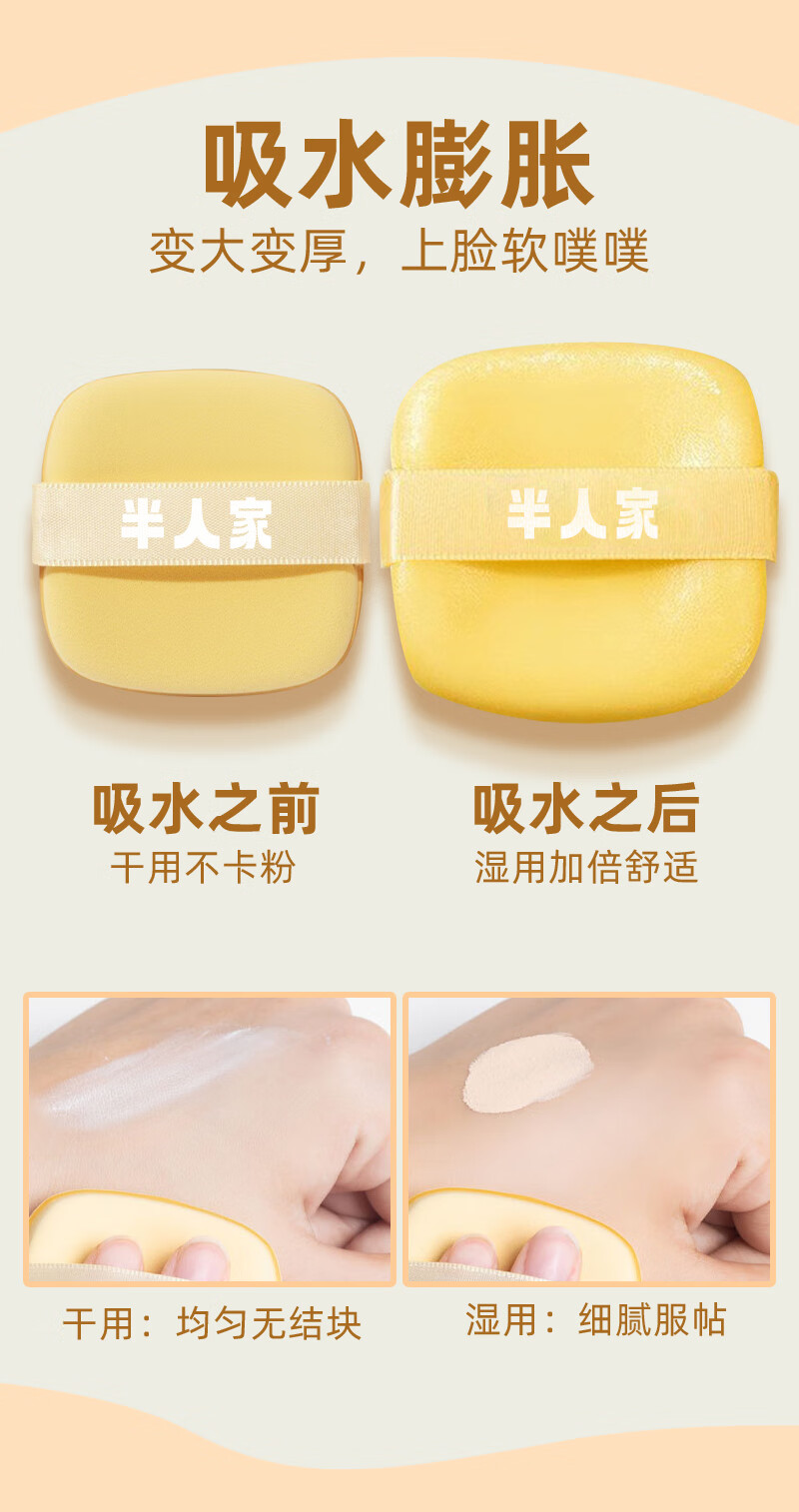 半人家黄油气垫粉扑干湿两用遇水变大超软不吃粉服帖底妆粉底液散粉饼 黄油粉扑 1枚 【无盒】