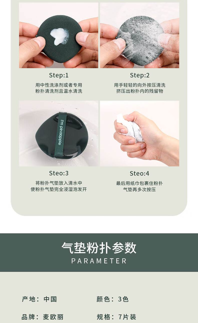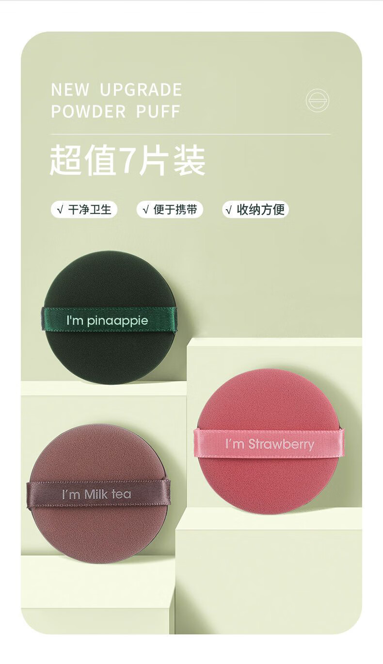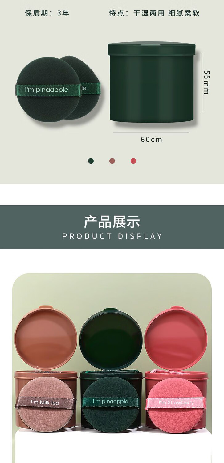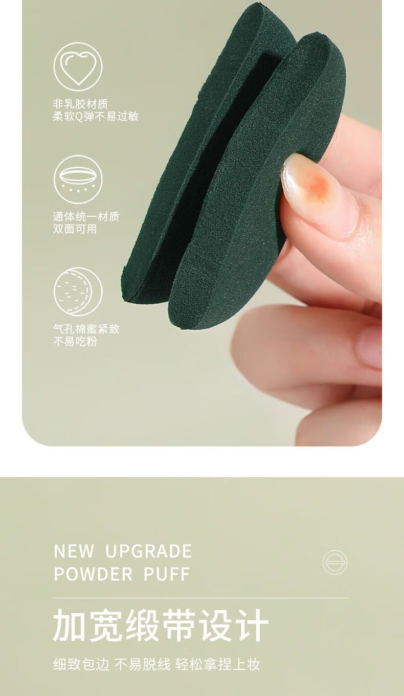 双面双效气垫粉扑干湿两用不吃粉海绵定妆粉饼散粉服帖化妆粉底液 抹茶色1盒【水滴形】 7枚