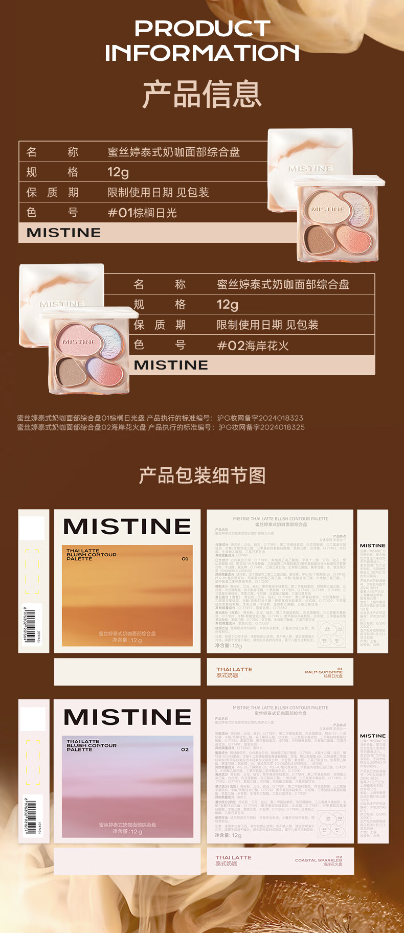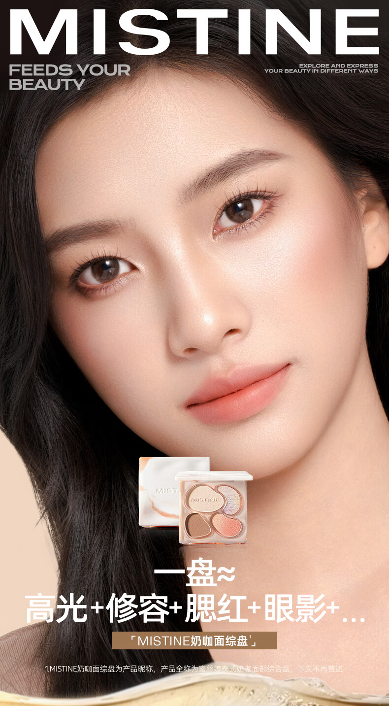 Mistine蜜丝婷奶咖面部综合彩妆一体盘粉饼高光修容腮红三合一新年礼物