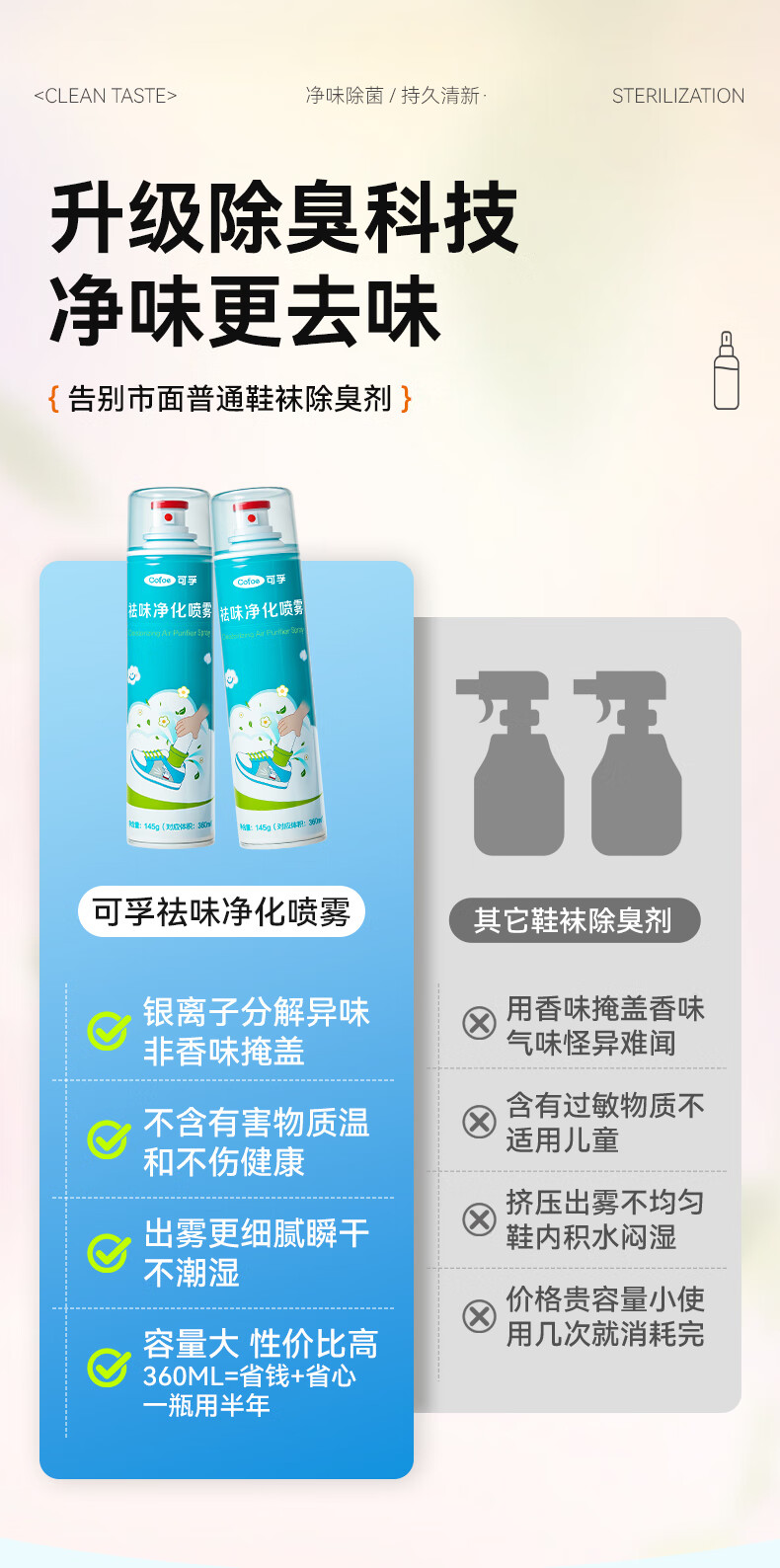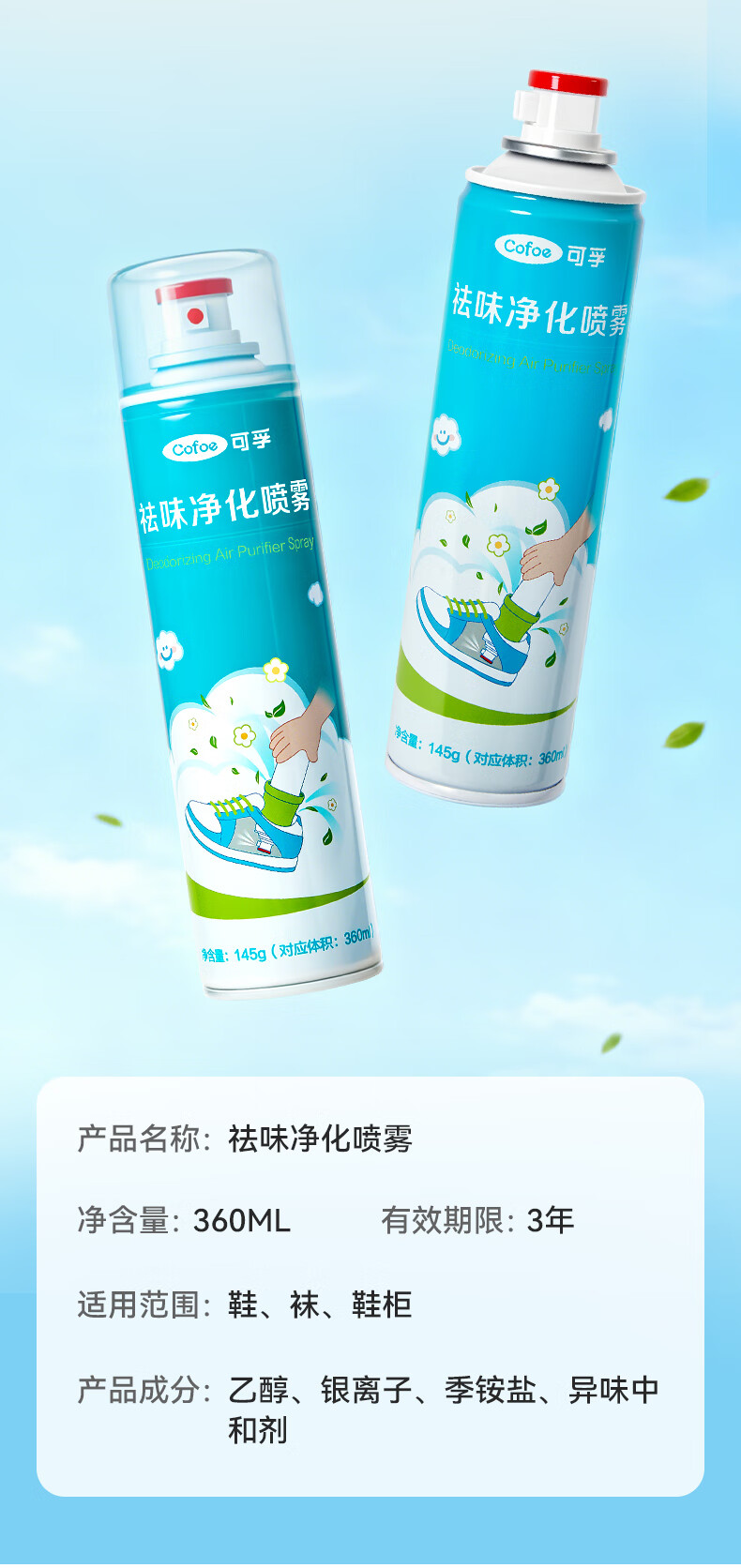 可孚 鞋子除臭喷剂360ml鞋子除臭杀菌喷雾抑菌鞋袜去异味脚气脚臭汗臭