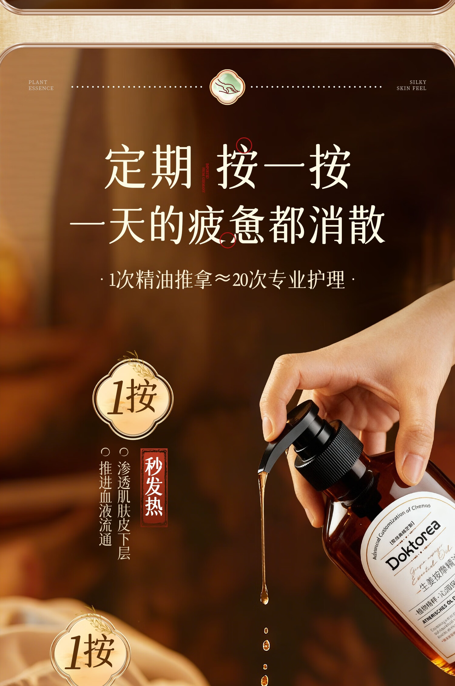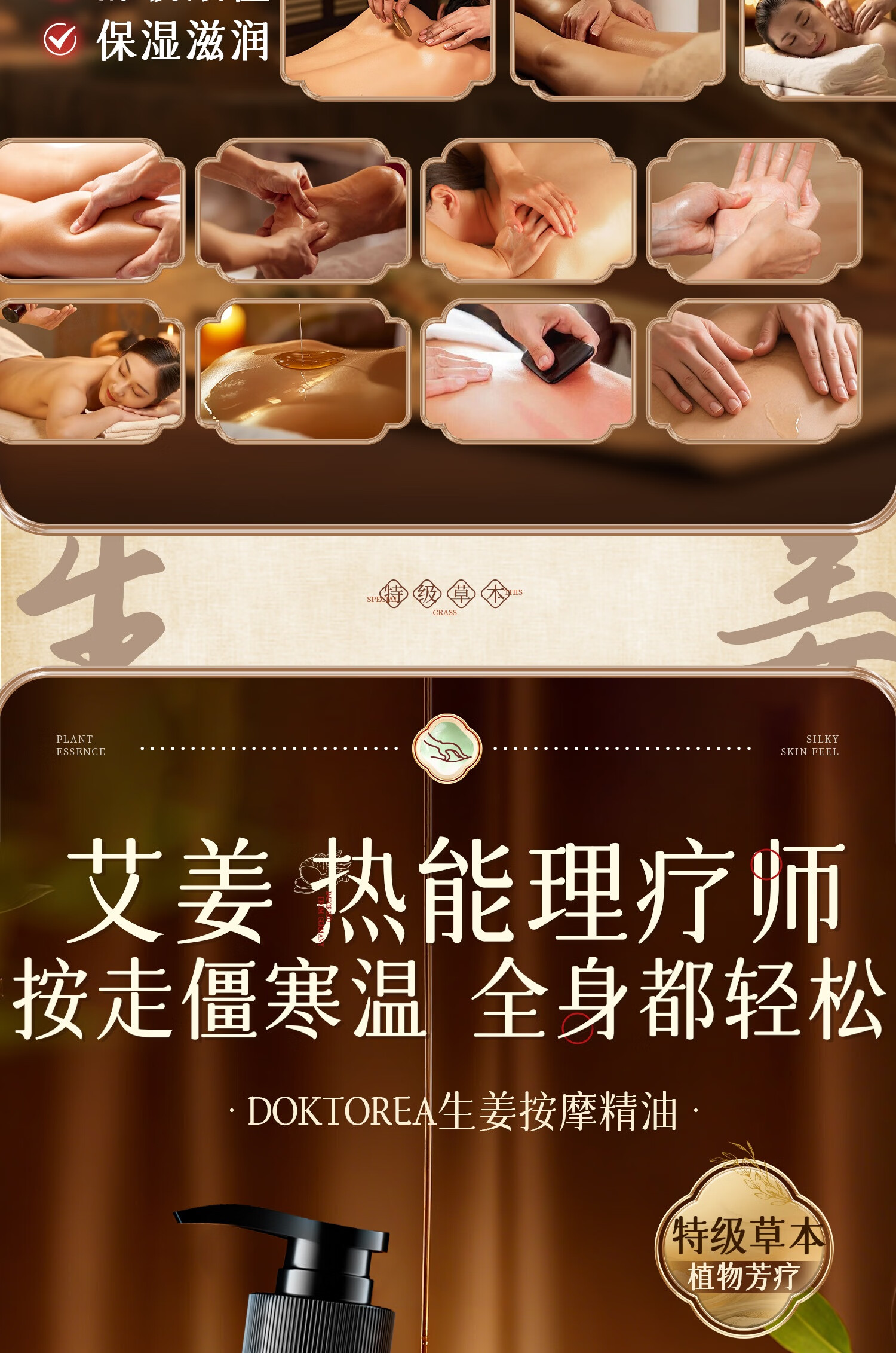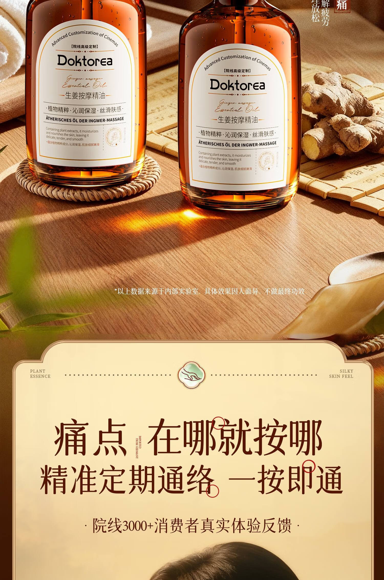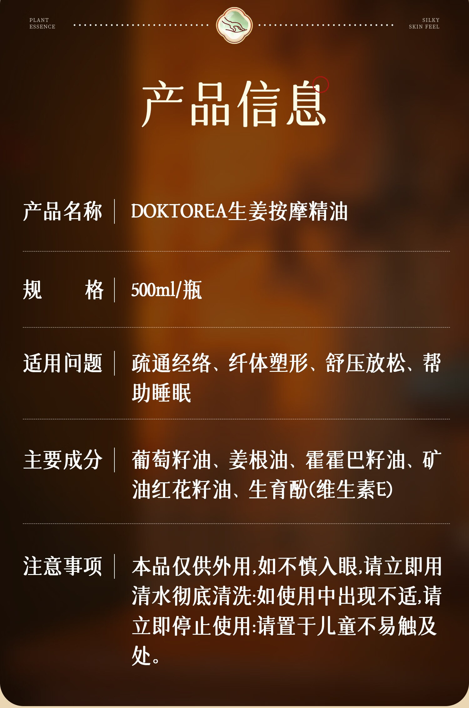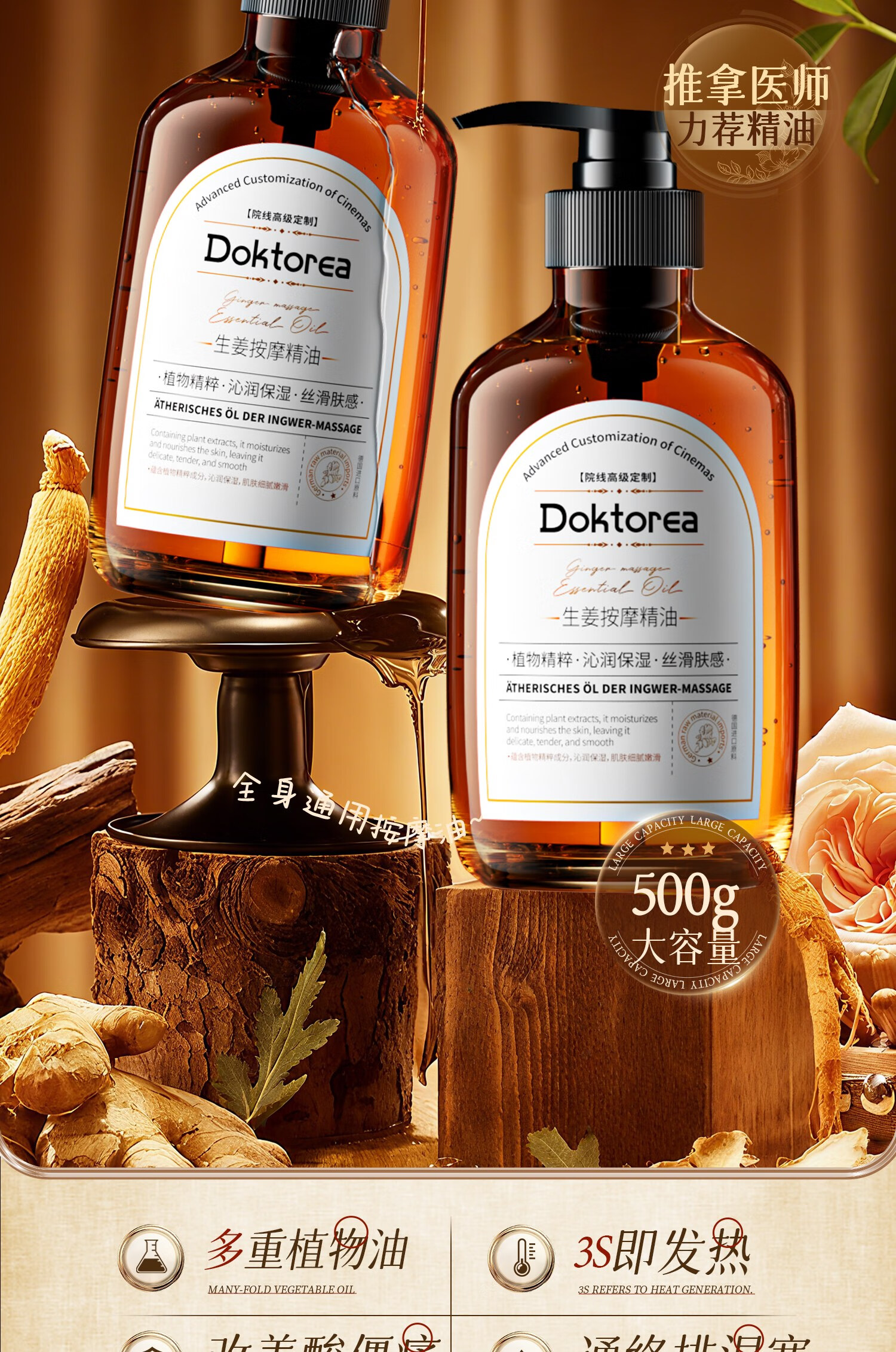 DOKTOREA生姜按摩精油祛湿全身开背推拿刮痧拔罐通经络spa身体排毒发热油