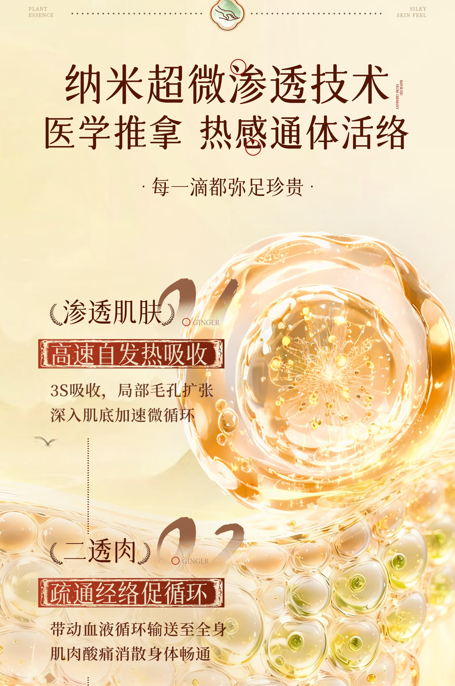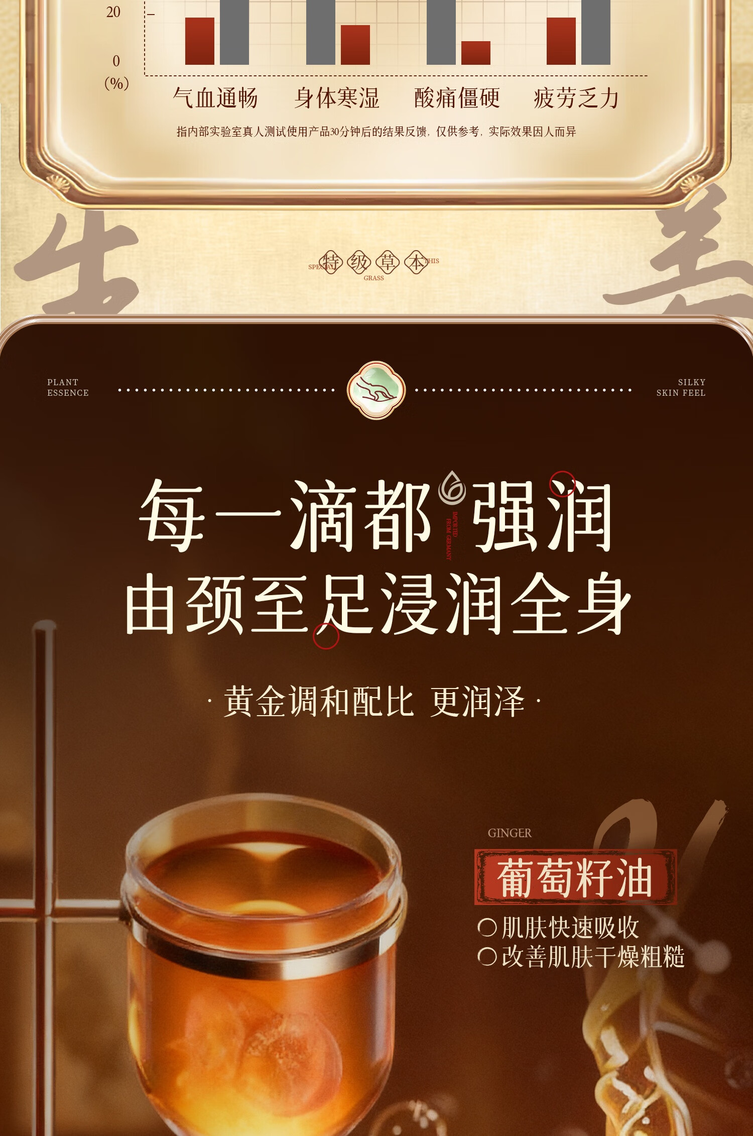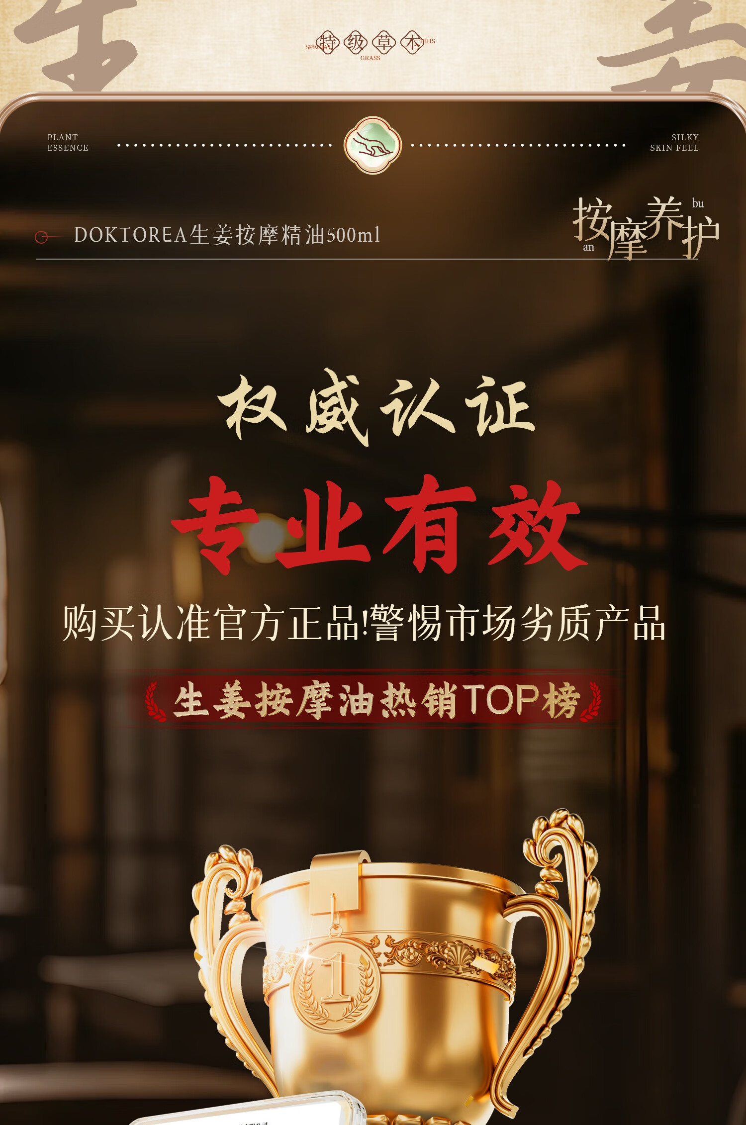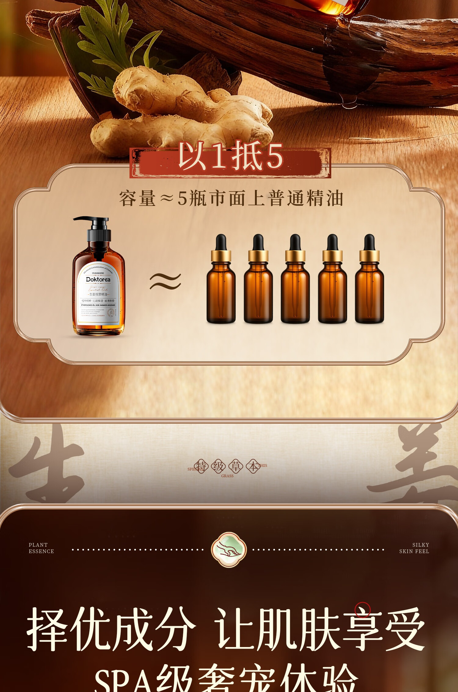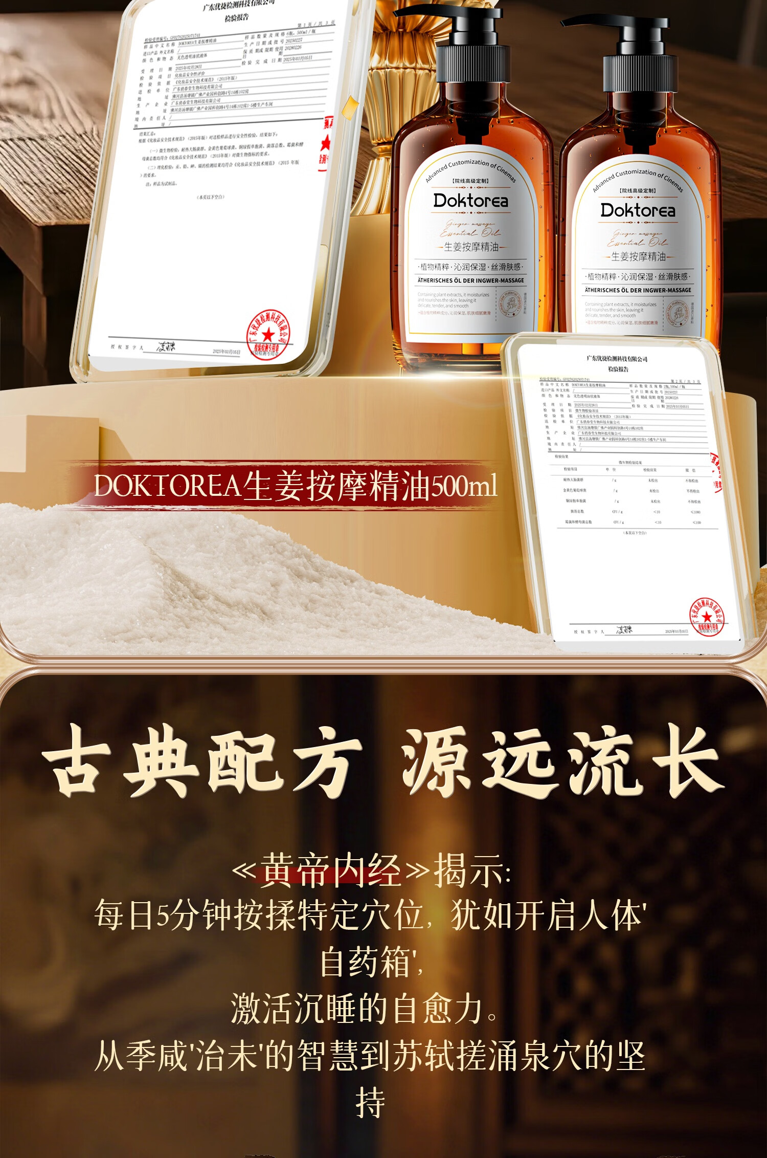 DOKTOREA生姜按摩精油祛湿全身开背推拿刮痧拔罐通经络spa身体排毒发热油
