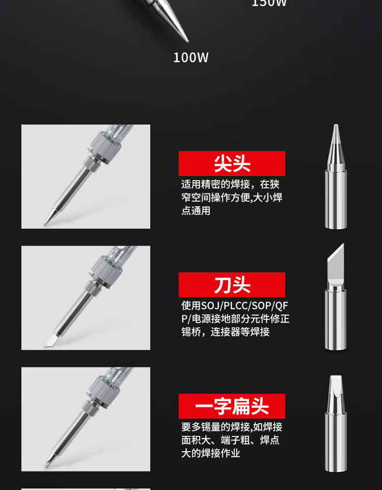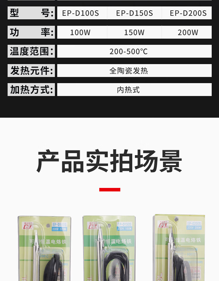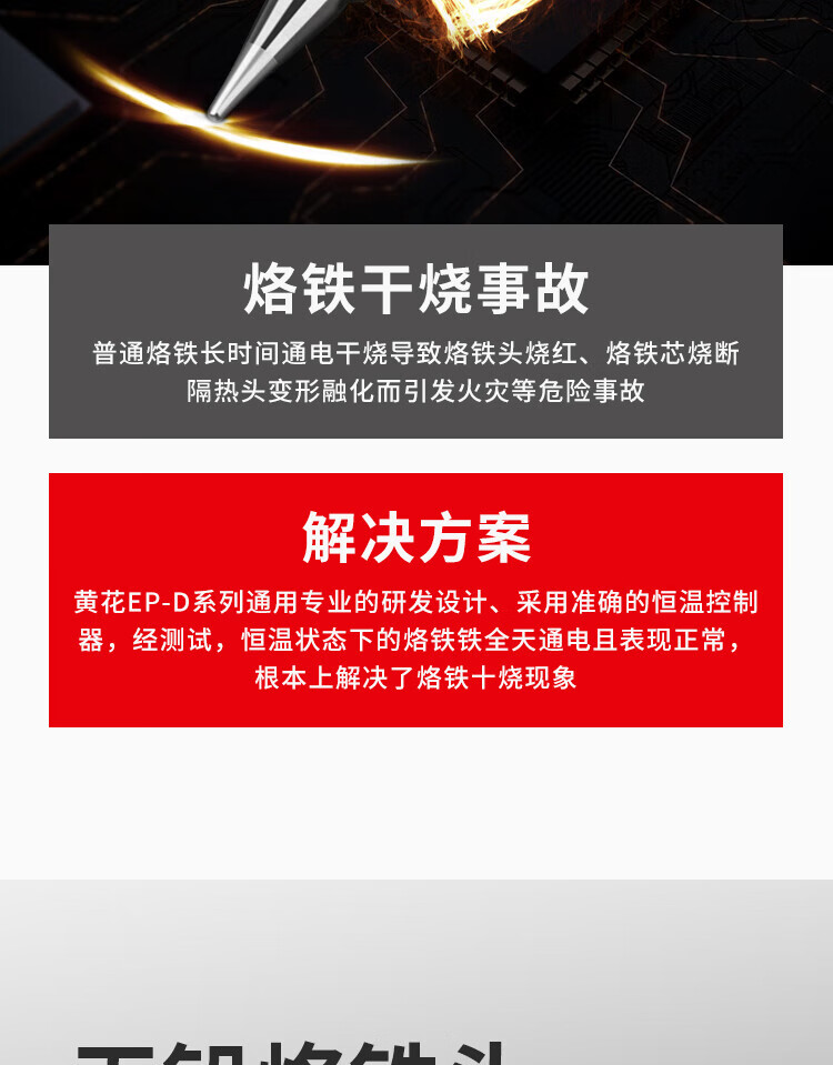OLOEY广州黄花电烙铁907恒温EP-D100/150W/200W电焊60W内热大功率洛铁 EP-100W标配【马蹄】