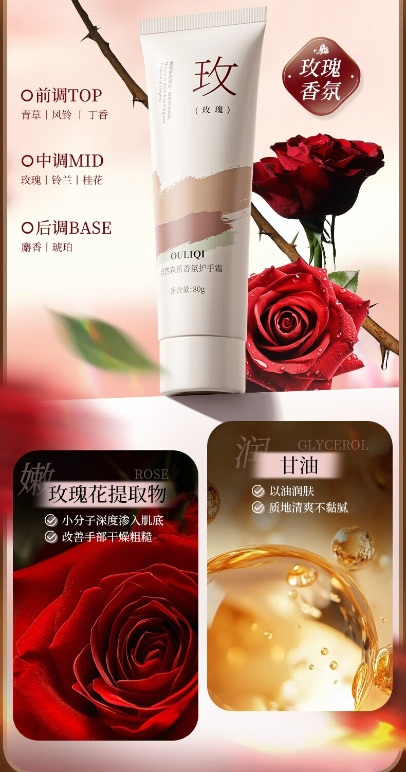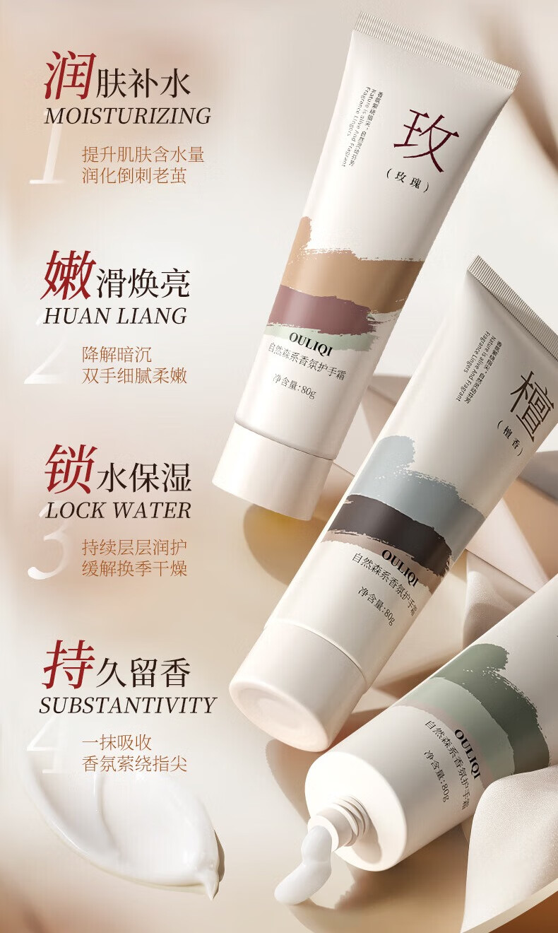 香氛护手霜滋润补水保湿清爽不油腻秋冬防干防冻裂缓解肌肤润手霜 香氛护手霜【山茶】 80gx3支装