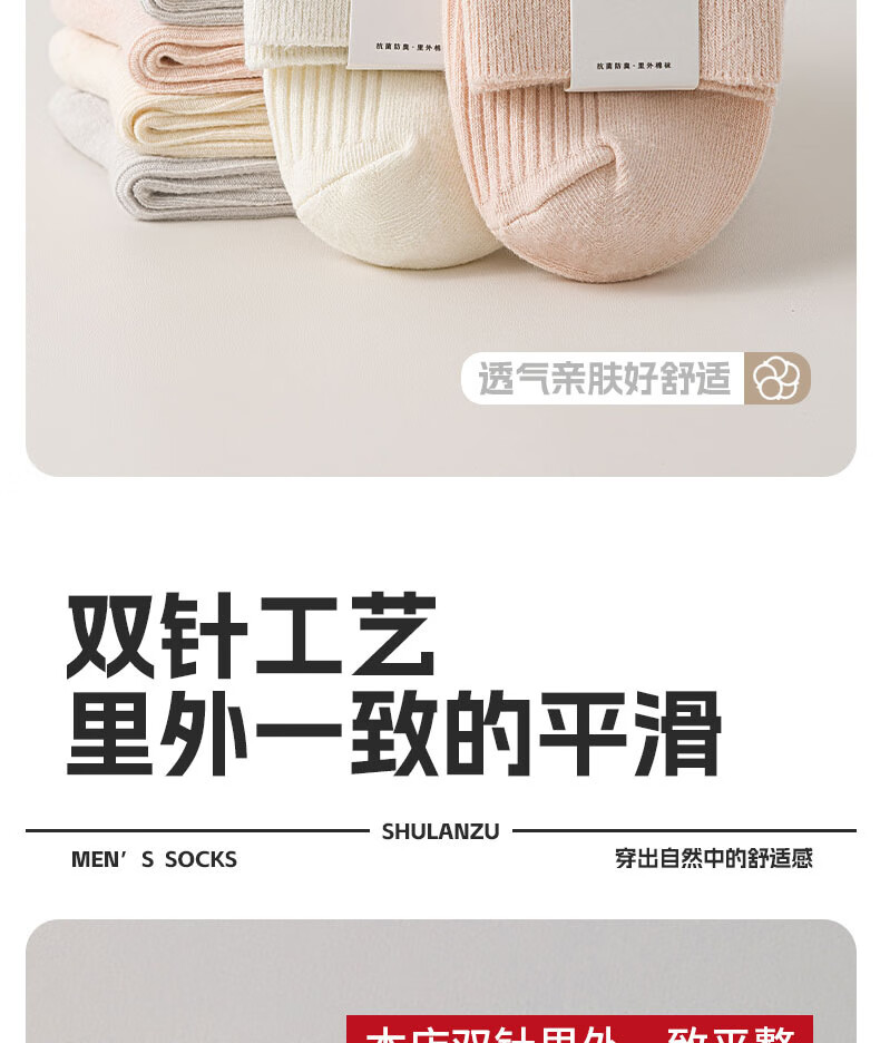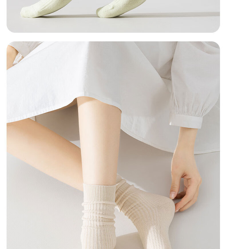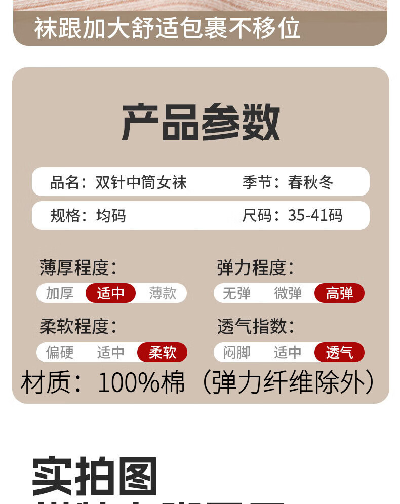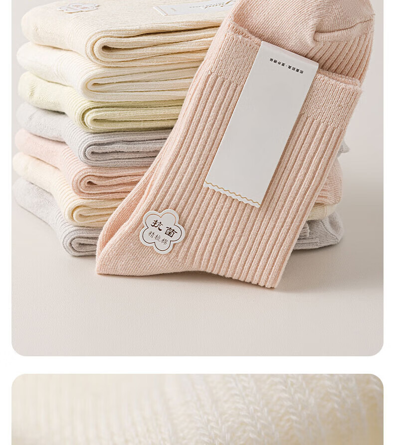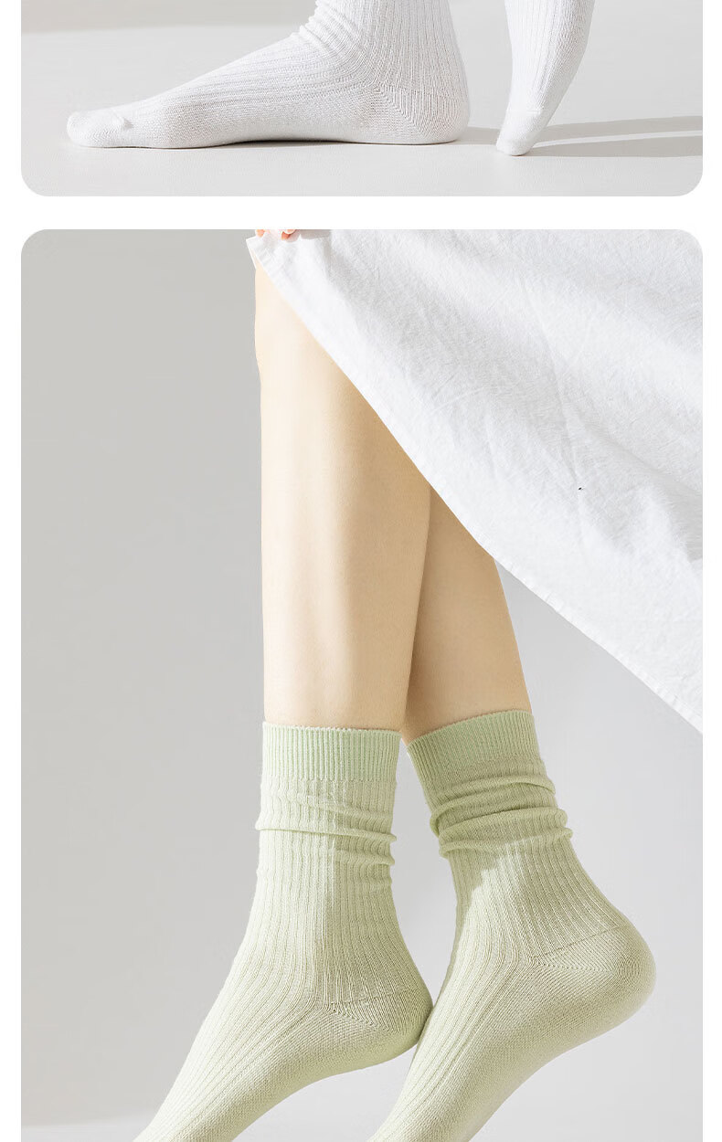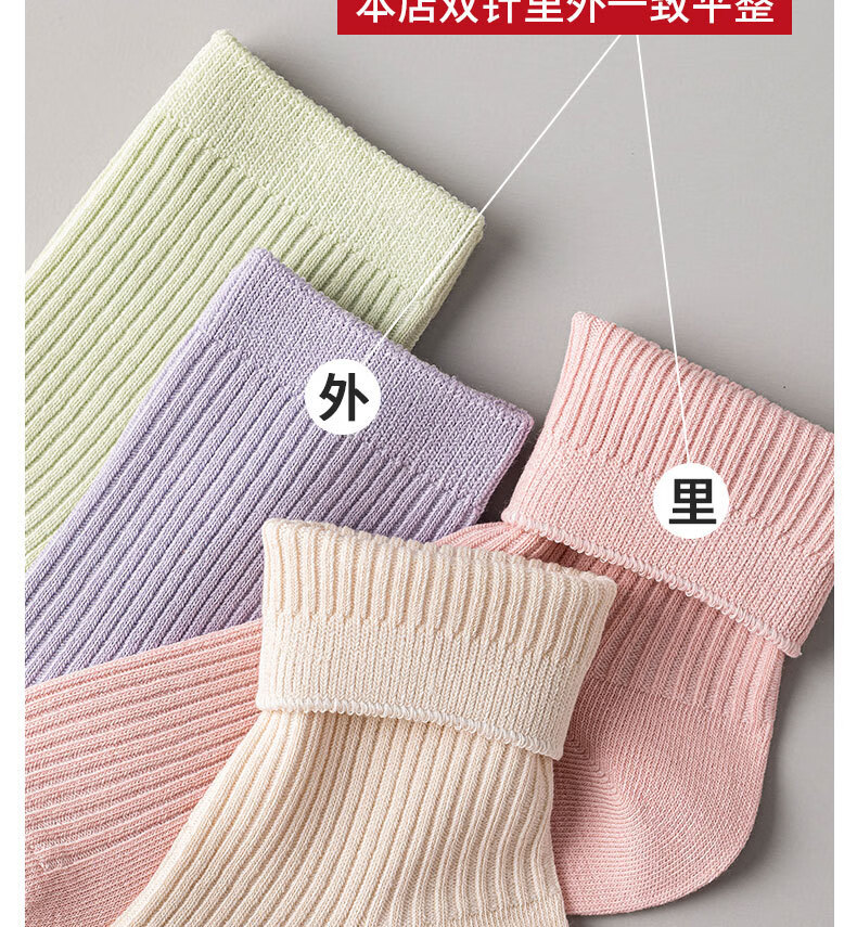 100%新疆棉女士纯棉袜子秋冬保暖加厚款双针中长筒防臭袜吸汗耐磨 女双针长袜【彩色】 5双 均码