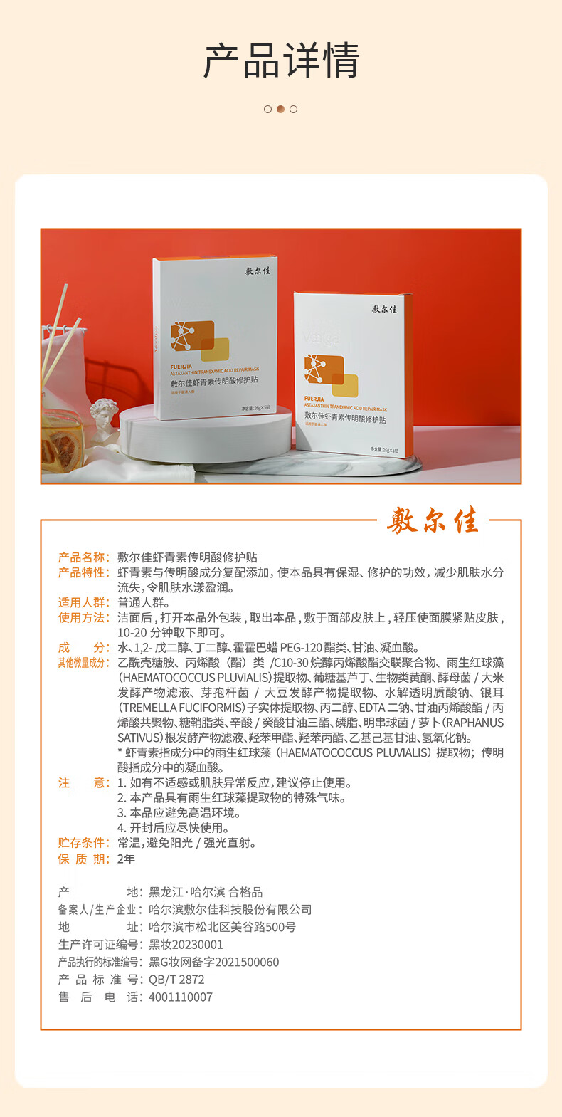 敷尔佳【成毅同款】虾青素传明酸修护贴 敷尔佳灯泡膜 补水面膜 美妆 2片体验装