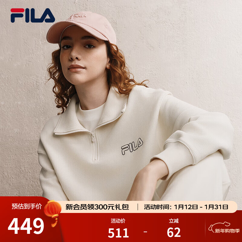 斐乐FILA半开襟男女同款卫衣25秋季新款情侣华夫格宽松休闲翻领女上衣 蒸汽白-IV L 175/96A/L