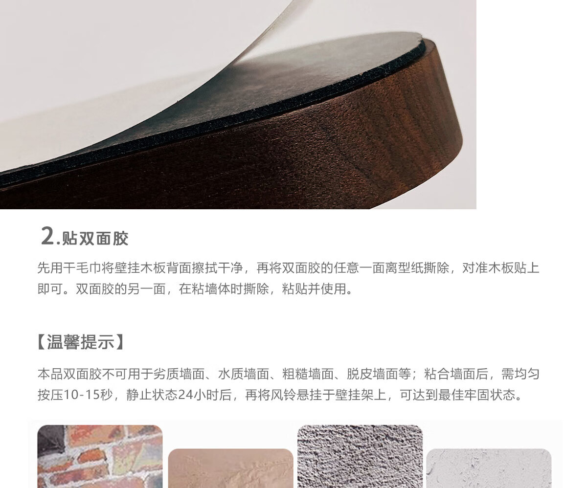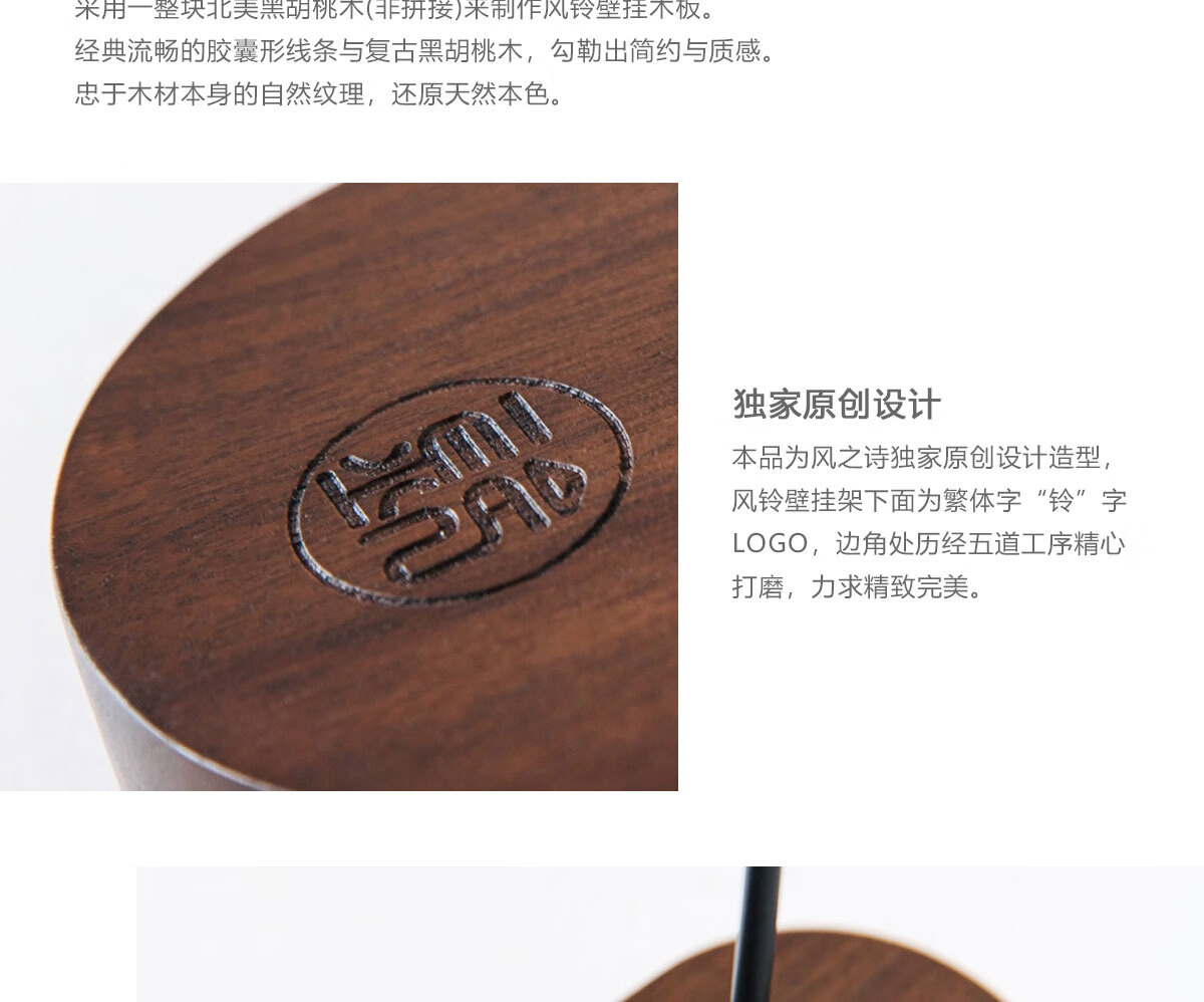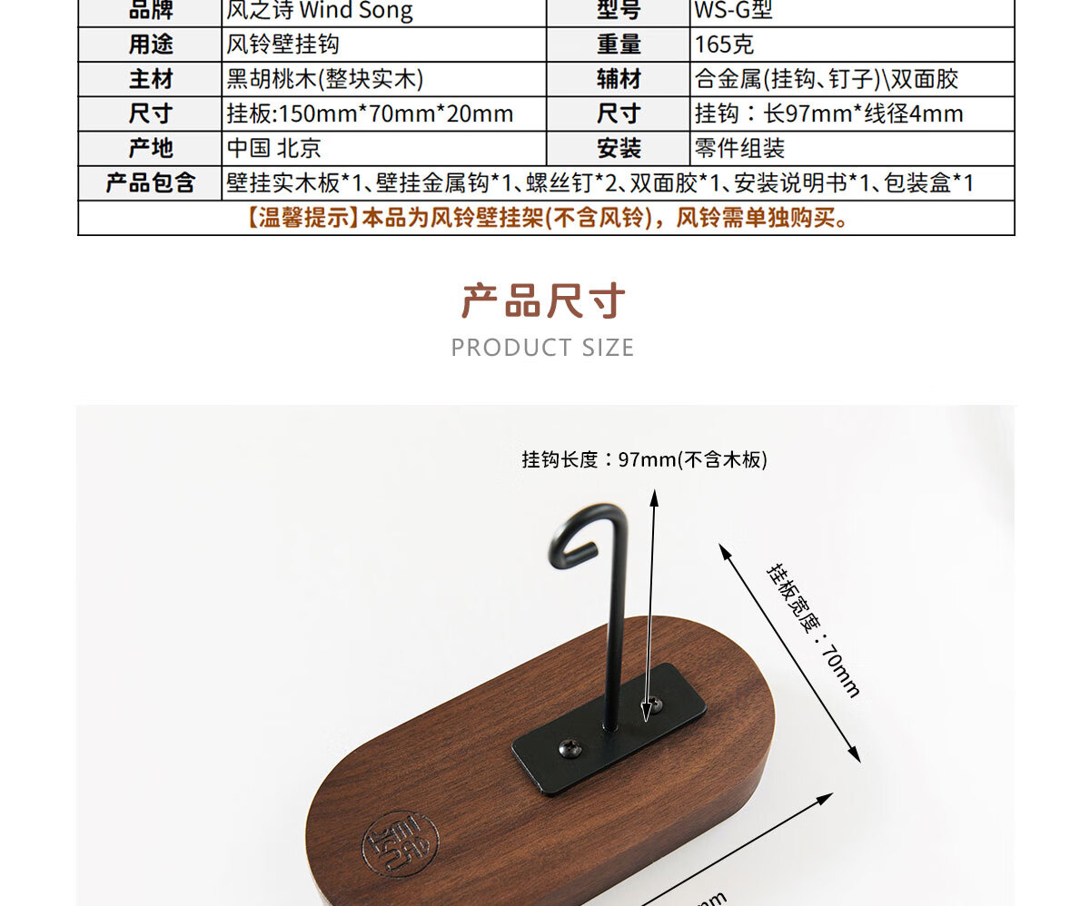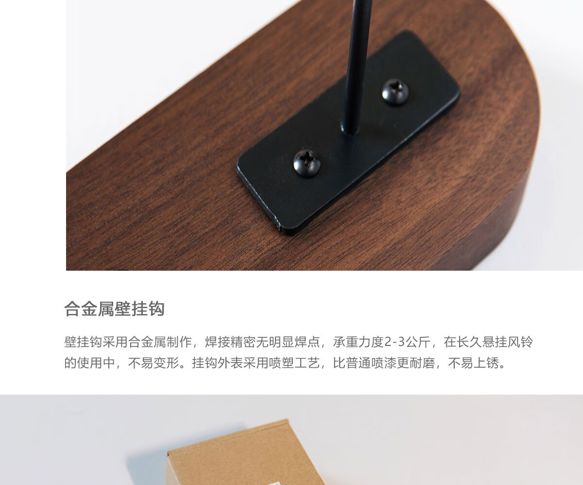 风之诗风铃实木壁挂架黑胡桃木免打孔自粘墙壁墙面挂钩阳台商铺挂饰配件 风铃壁挂架