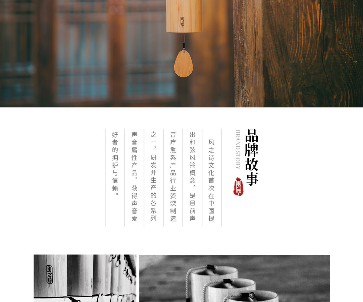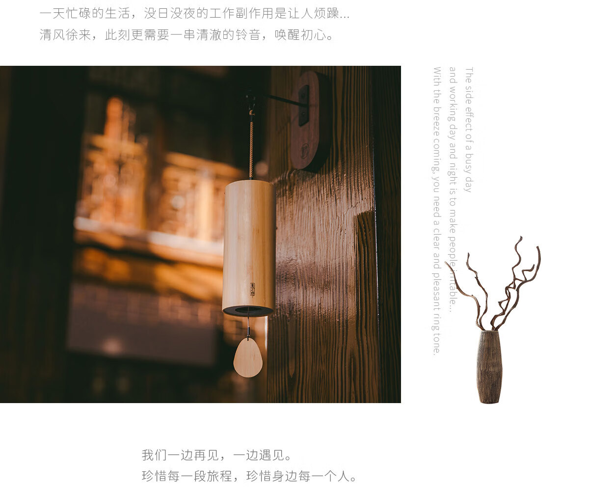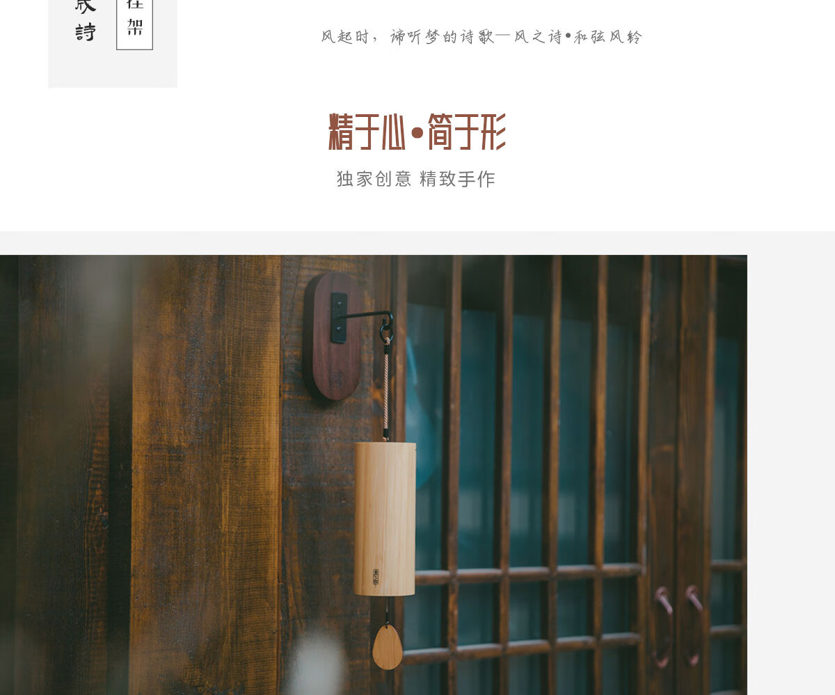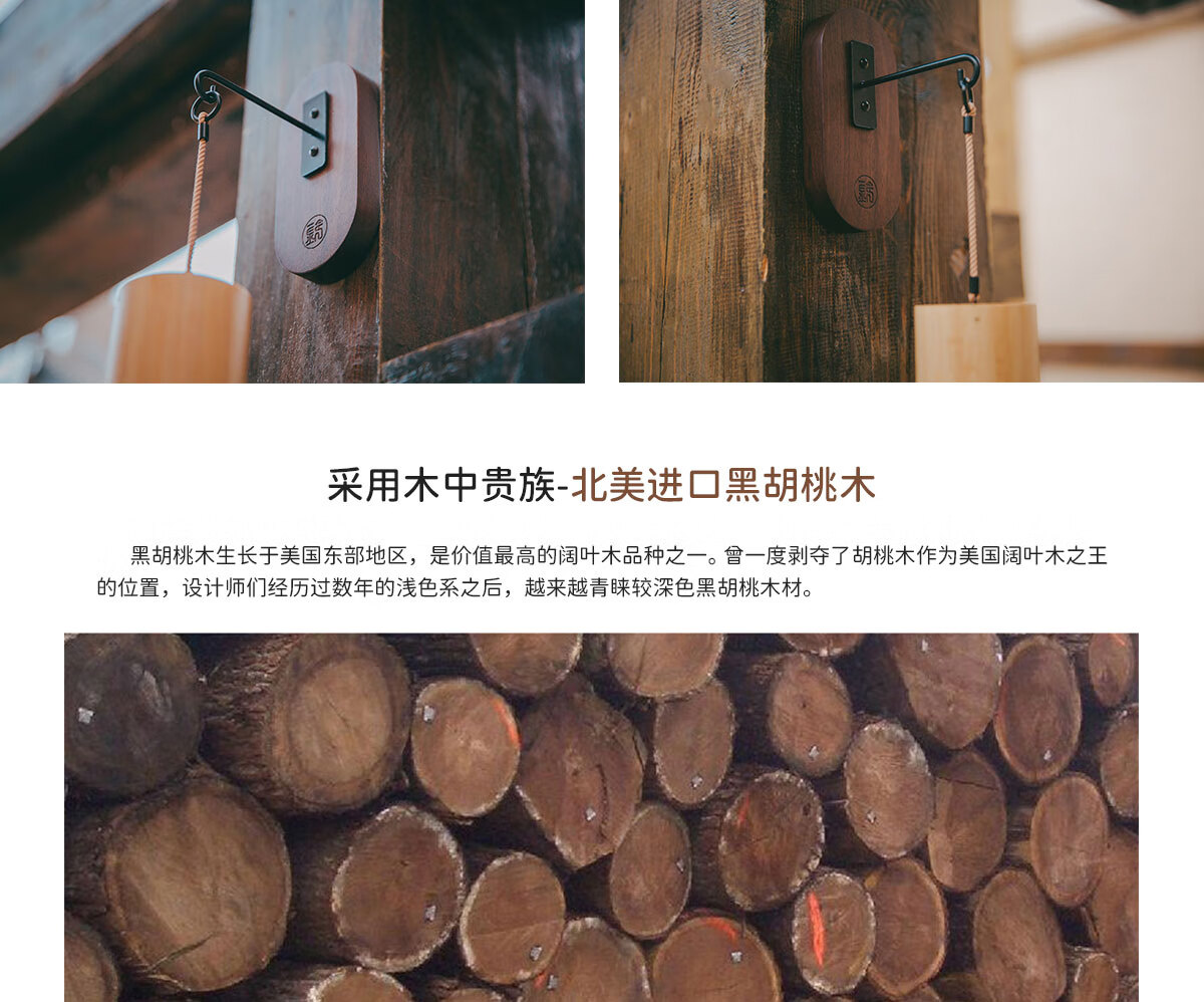 风之诗风铃实木壁挂架黑胡桃木免打孔自粘墙壁墙面挂钩阳台商铺挂饰配件 风铃壁挂架