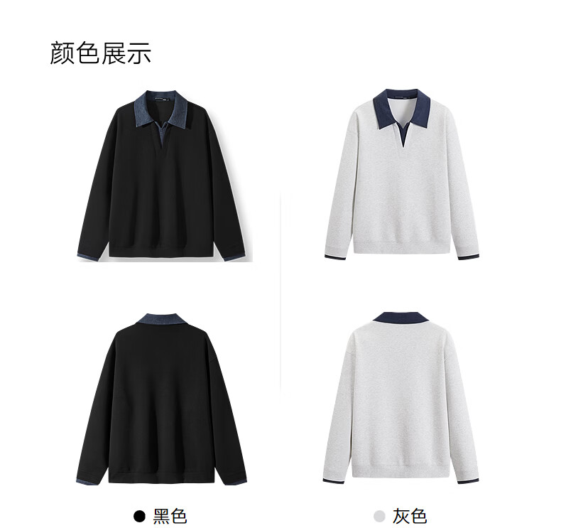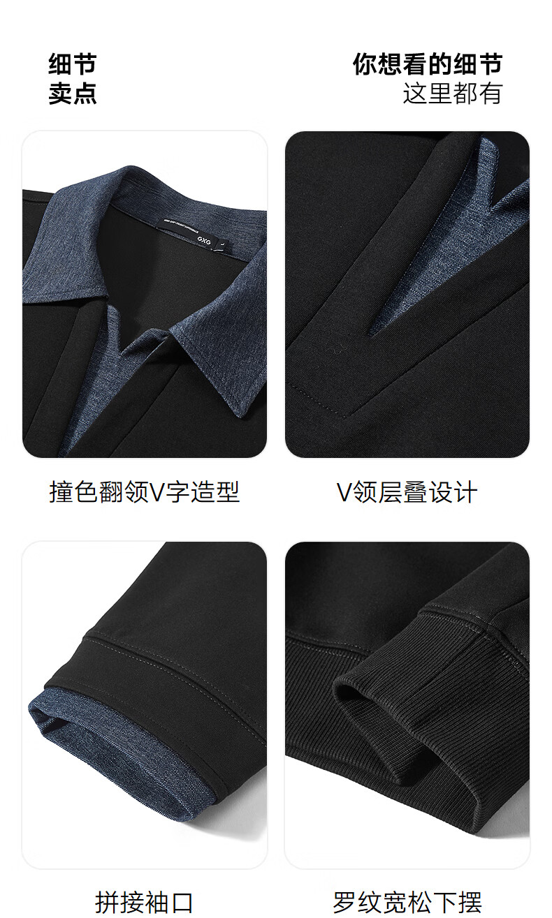 GXG男装 25年秋季新品假两件拼接领口休闲百搭学院风翻领卫衣 黑色 L