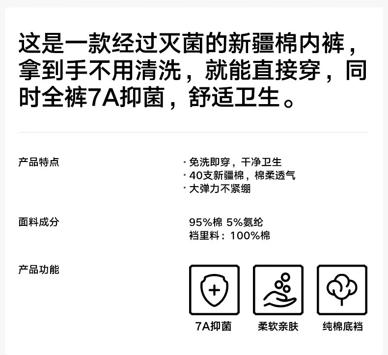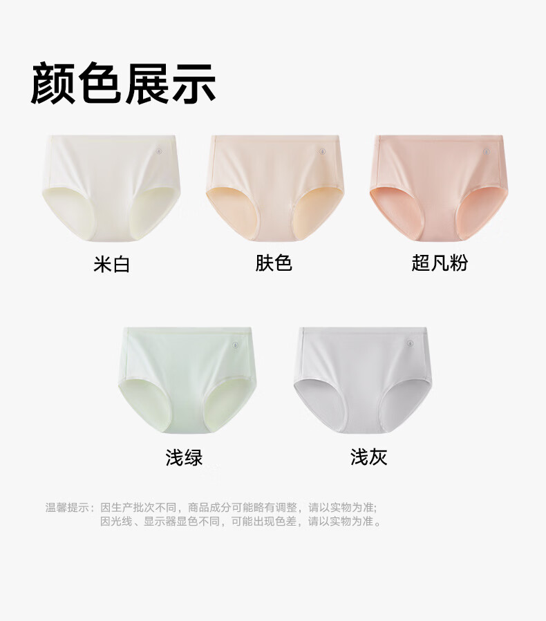 松山棉店【首穿免洗】新疆棉7A抑菌内裤女士无痕透气三角裤弹力舒适独立装 浅绿+肤色+浅灰 3条 L 推荐:115-130斤