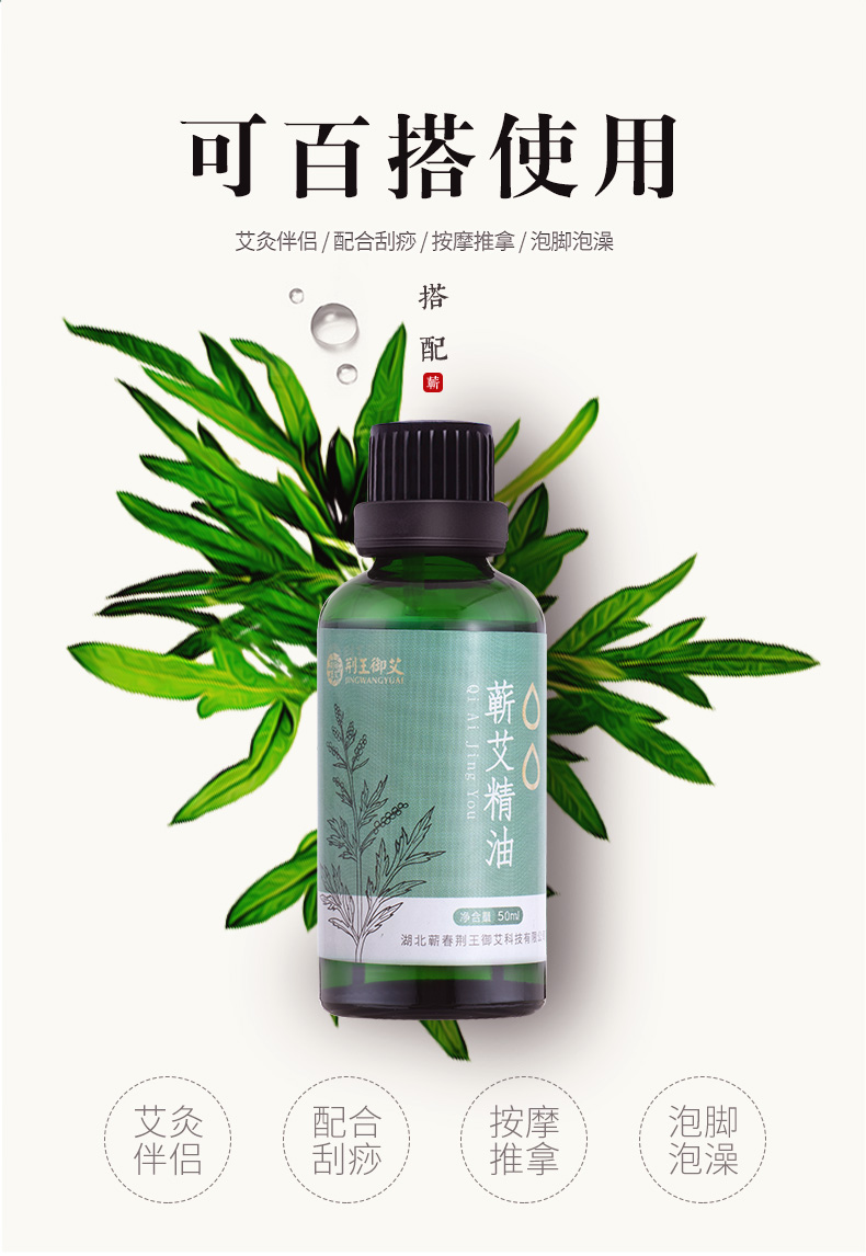 荆王御艾蕲艾草精油50ml开背按摩油通经络眼脸面部刮痧精油全身体泡澡拔罐