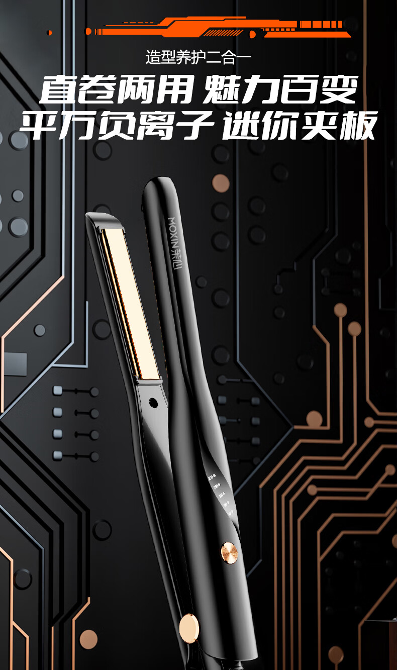 茉心卷发棒直发夹板男士专用直板夹不伤发直卷两用刘海直发器烫发夹神器13mm千万负离子送男友礼物 旗舰款黑色【精油涂层+五档调节+千万负离子】赠梳夹