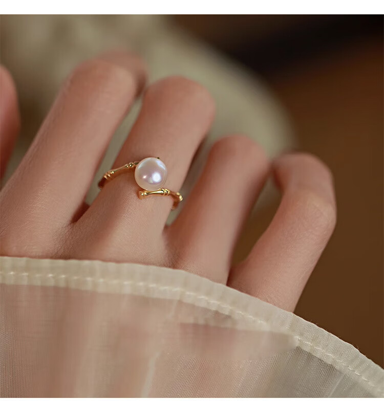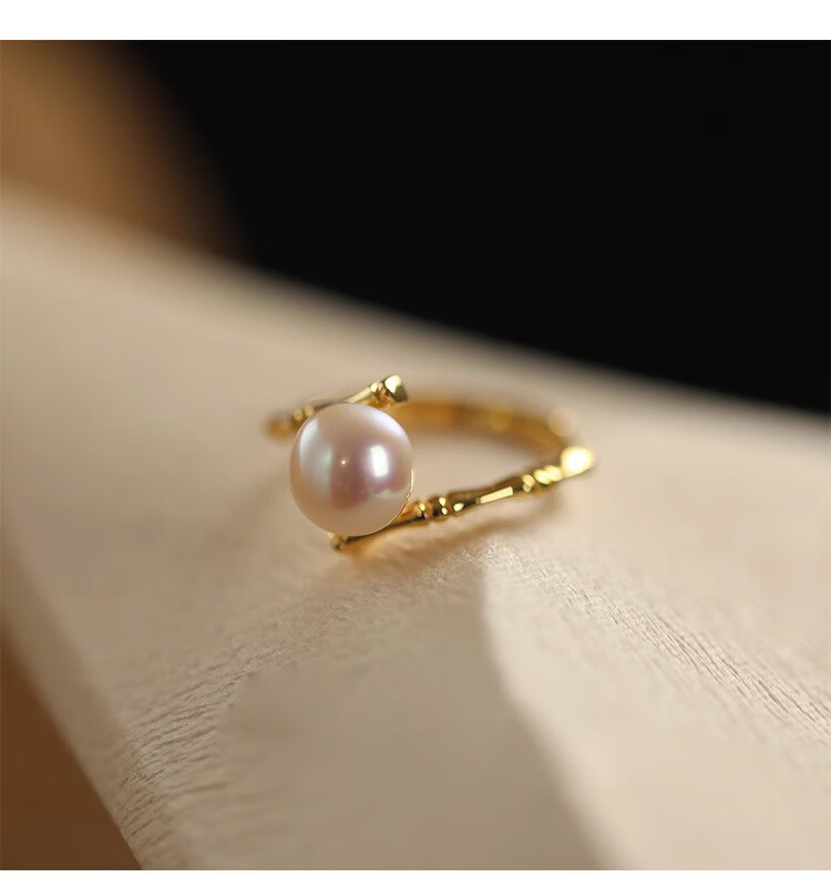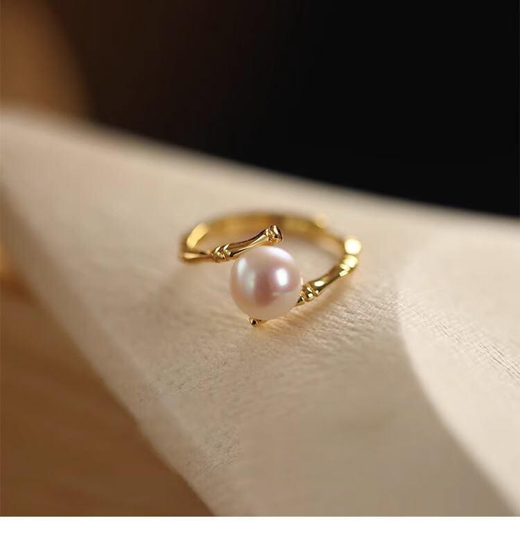 花饰庄园淡水珍珠戒指女小众设计开口食指戒轻奢感时尚个性指环潮 竹节戒指【淡水珍珠】