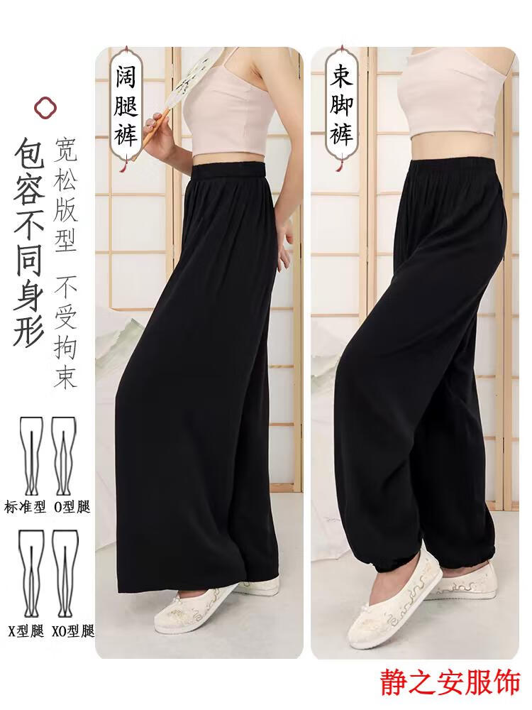 玛菲萱汉服衬裤马面裙内衬汉元素长裤内搭直筒裤黑色宋制打底裤子 黑色阔腿款 均码 裤长80C适合150-157CM