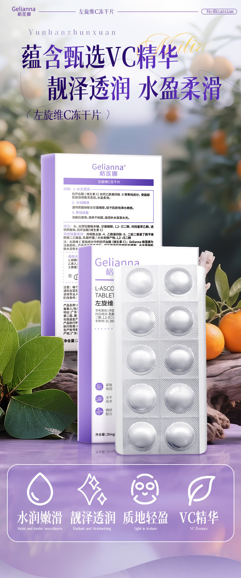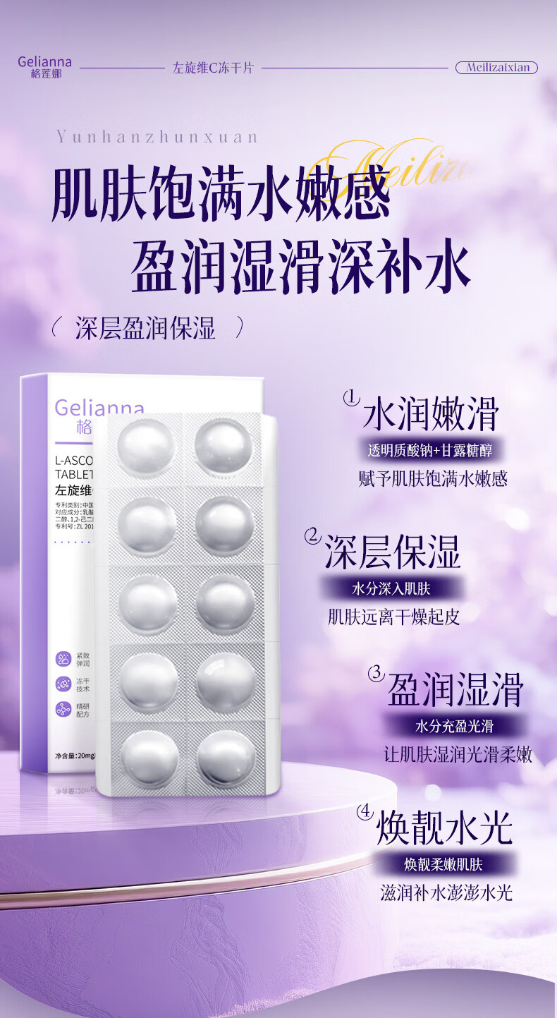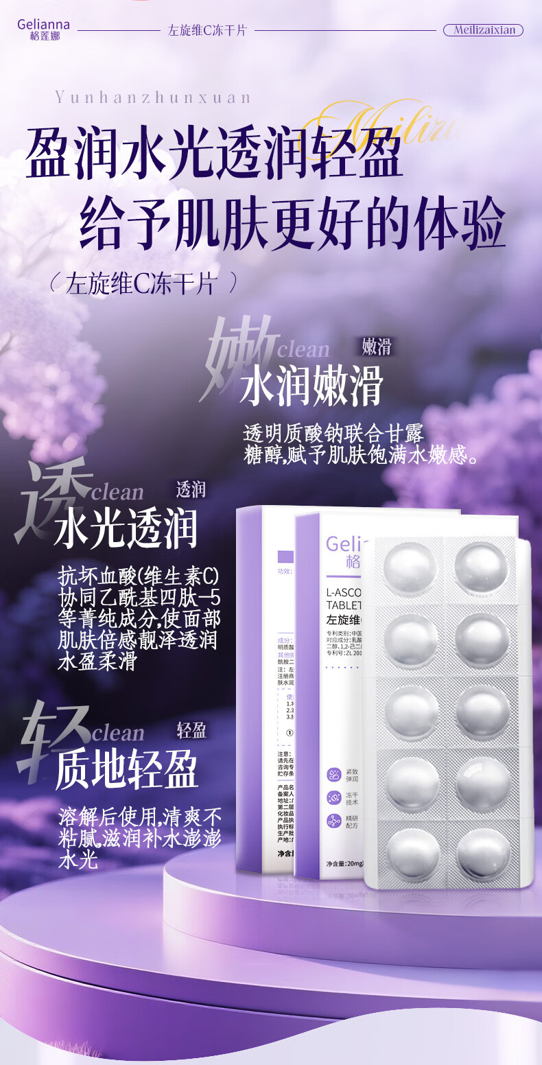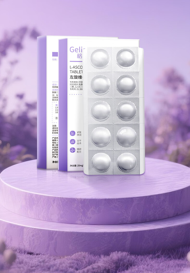 格莲娜左旋vc冻干片抗皱紧致精华淡化细纹补水保湿抗衰老提亮肤色正品 一盒左旋维C冻干片 10粒/盒