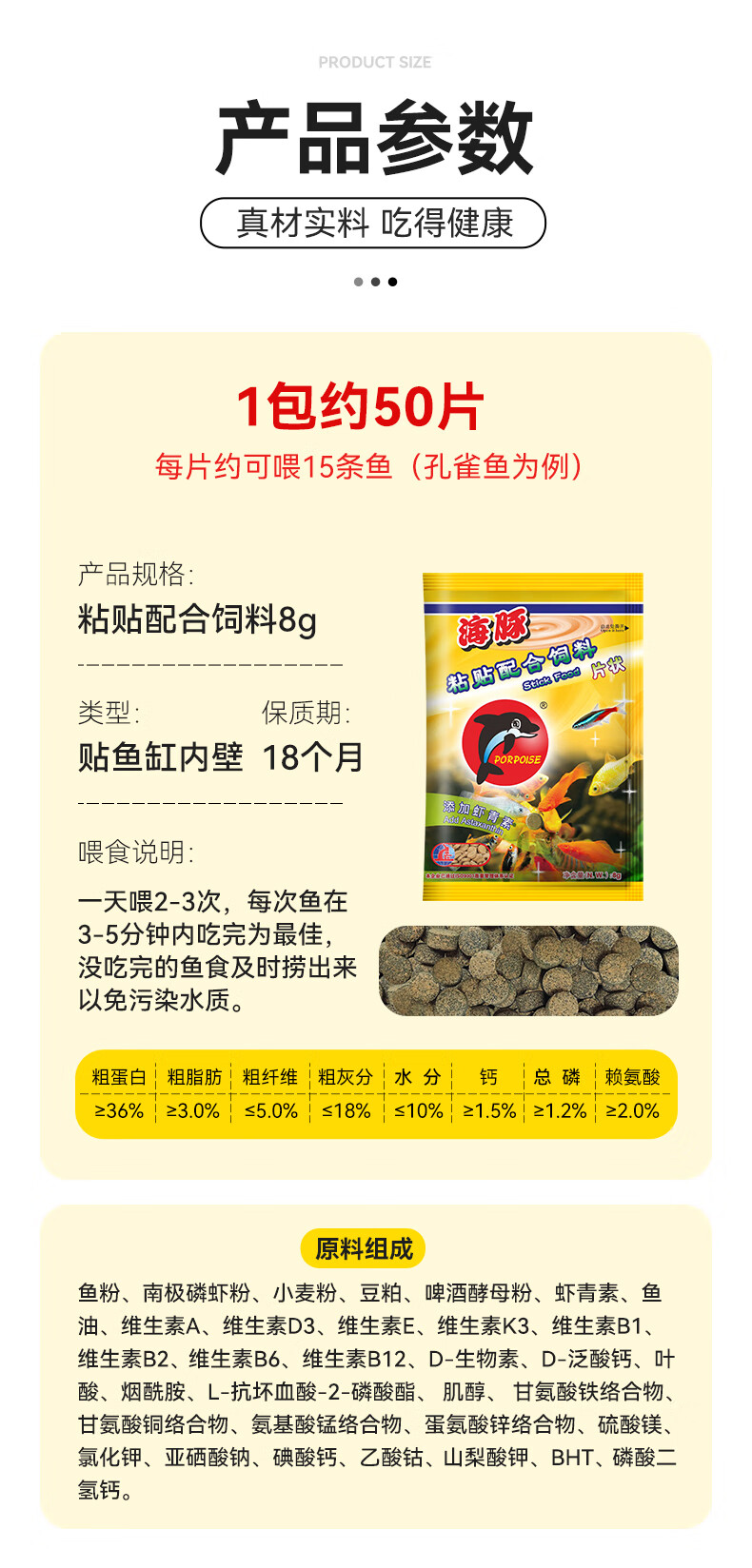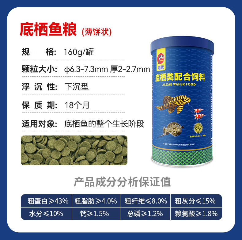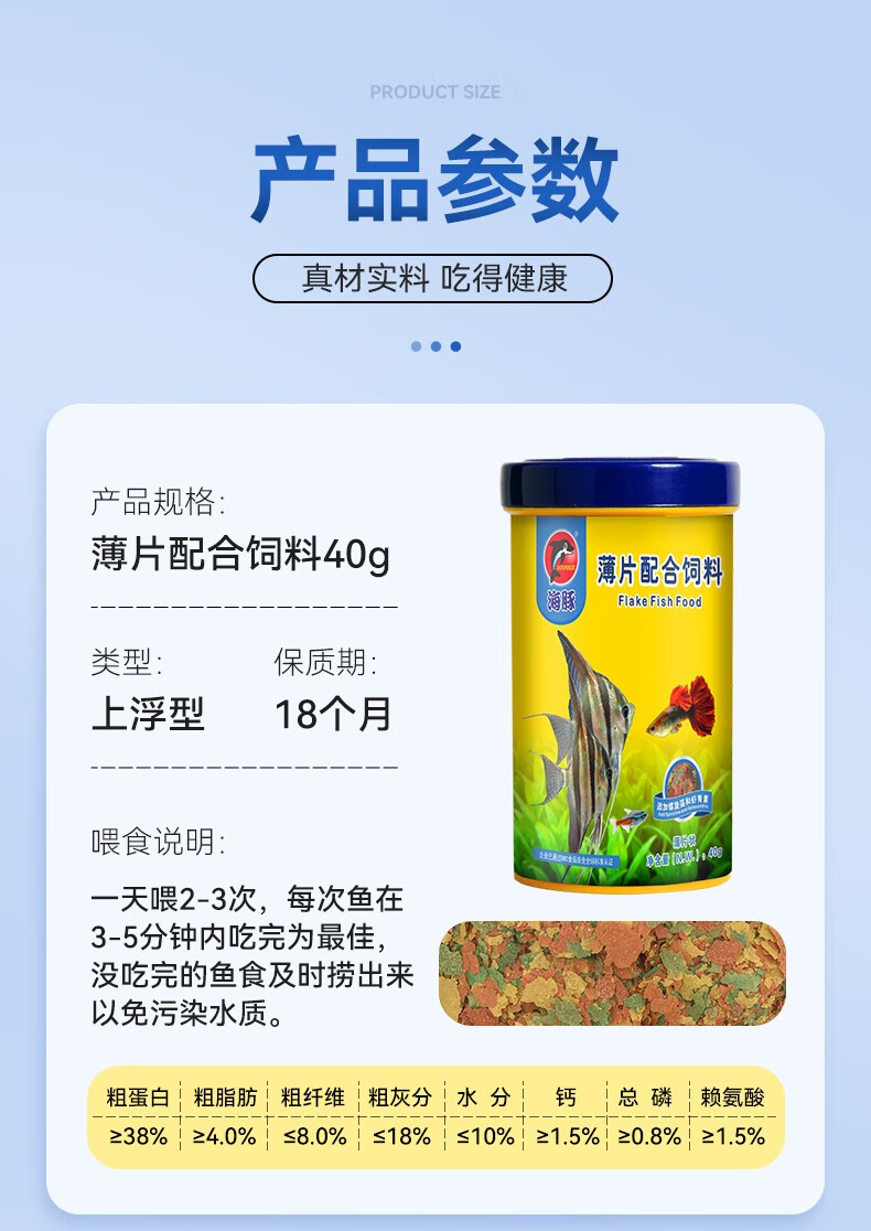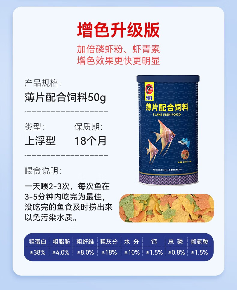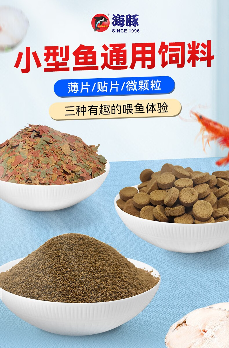 海豚孔雀鱼饲料鱼食小型热带鱼饲料螺旋藻斗鱼灯科鱼通用型鱼粮不浑水 8g贴片鱼食【1袋】