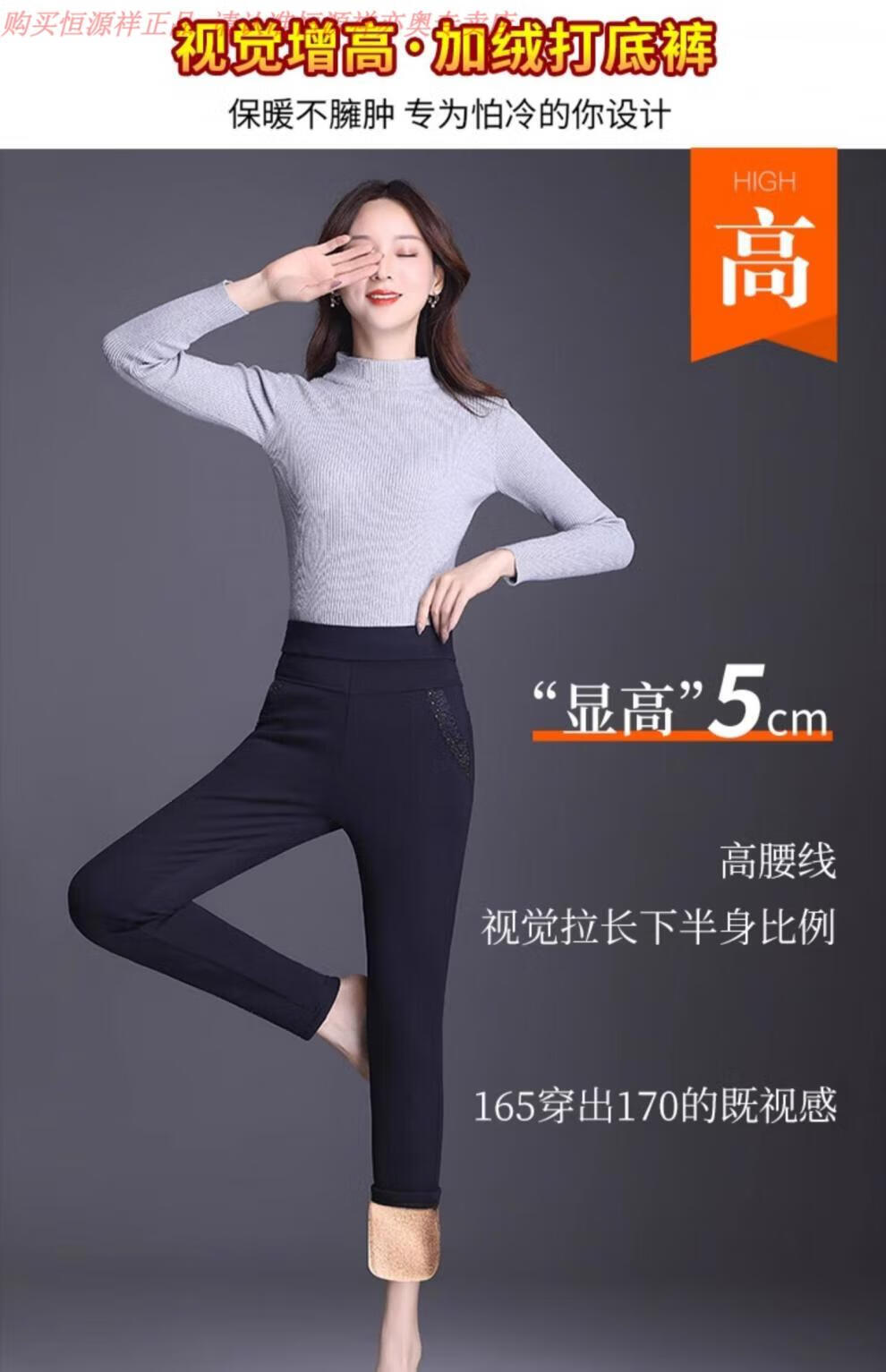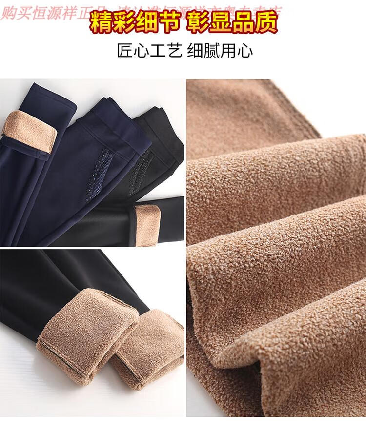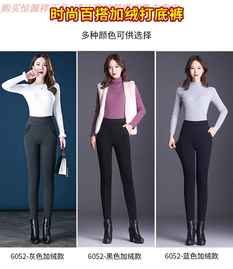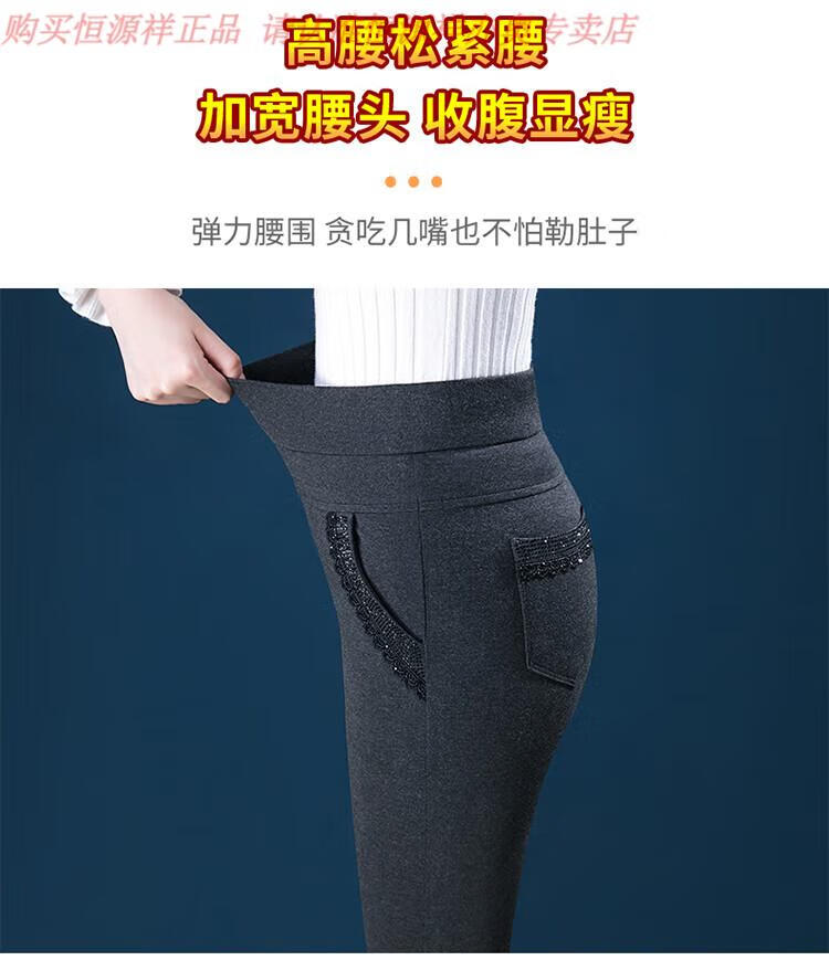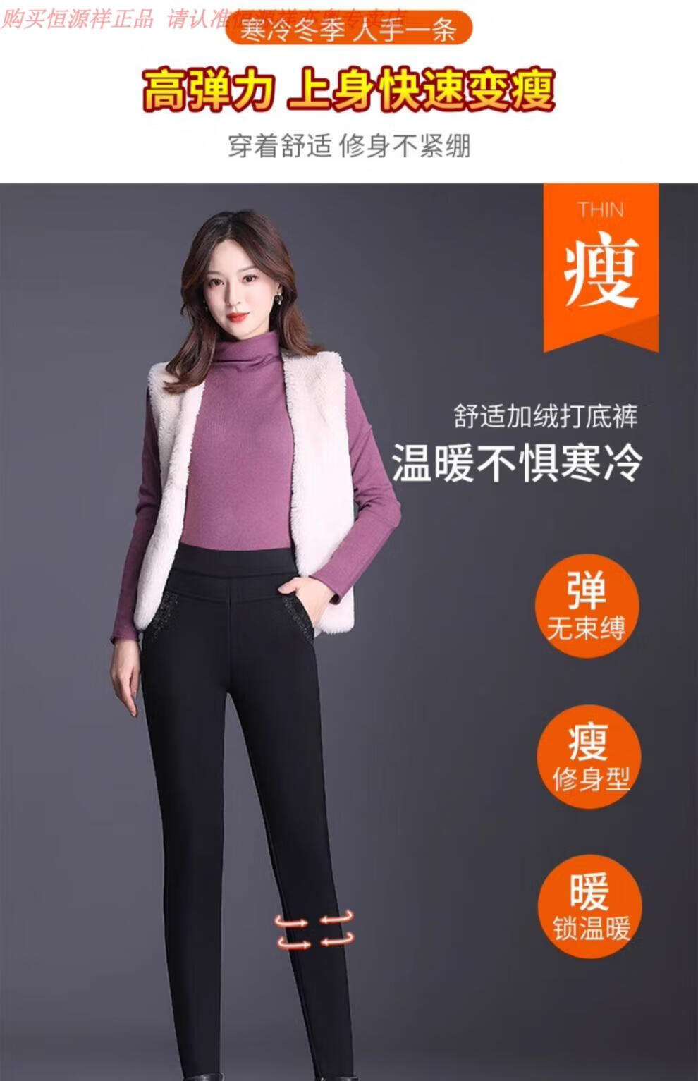 恒源祥加绒打底裤女外穿冬季女裤保暖中老年妈妈加厚羊羔绒小脚裤子秋冬 黑色-单裤不加绒 M 建议体重90多斤-100斤