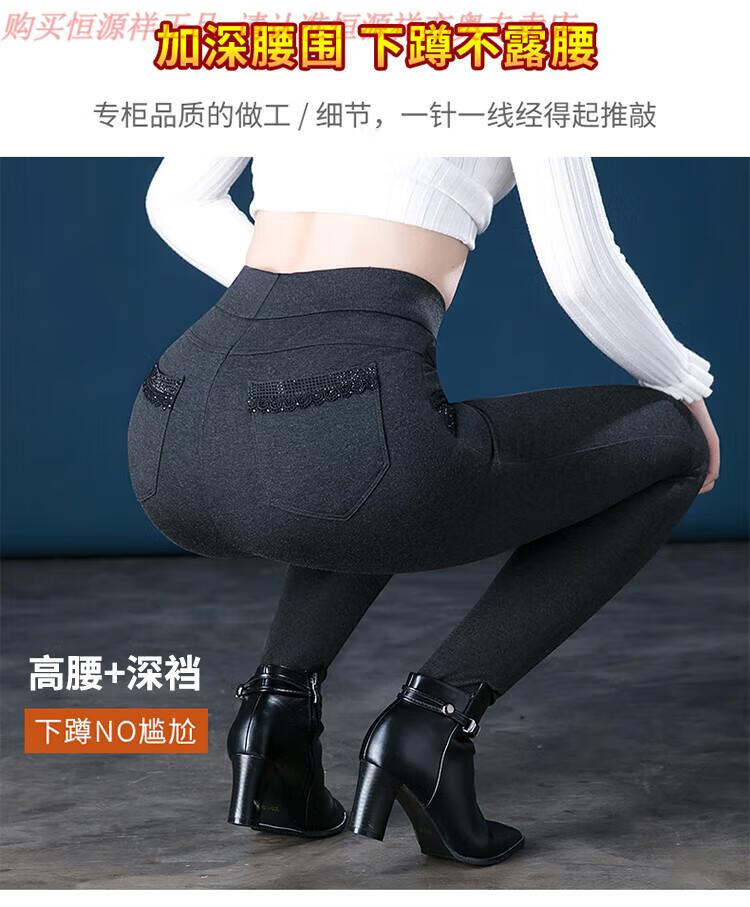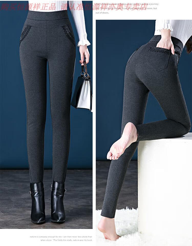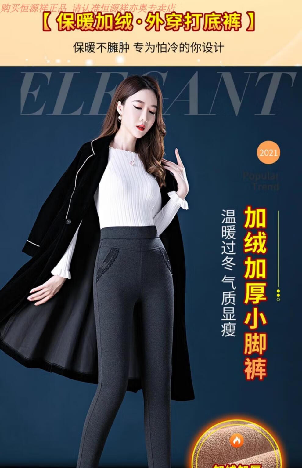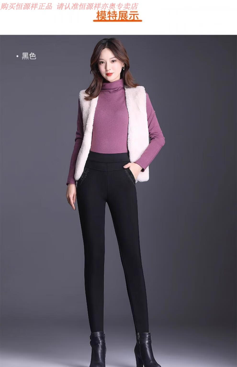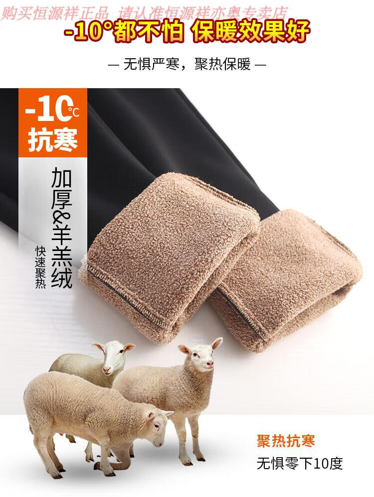 恒源祥加绒打底裤女外穿冬季女裤保暖中老年妈妈加厚羊羔绒小脚裤子秋冬 黑色-单裤不加绒 M 建议体重90多斤-100斤