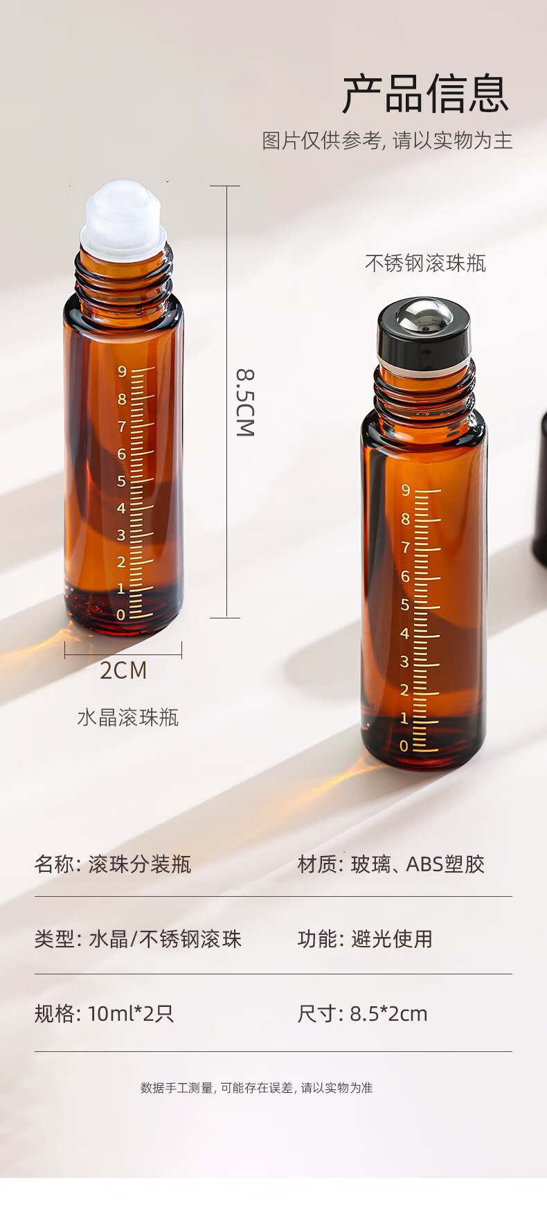 晨色避光滚珠分装瓶10ml玻璃走珠上药器旅行便携式滴管精油空瓶子