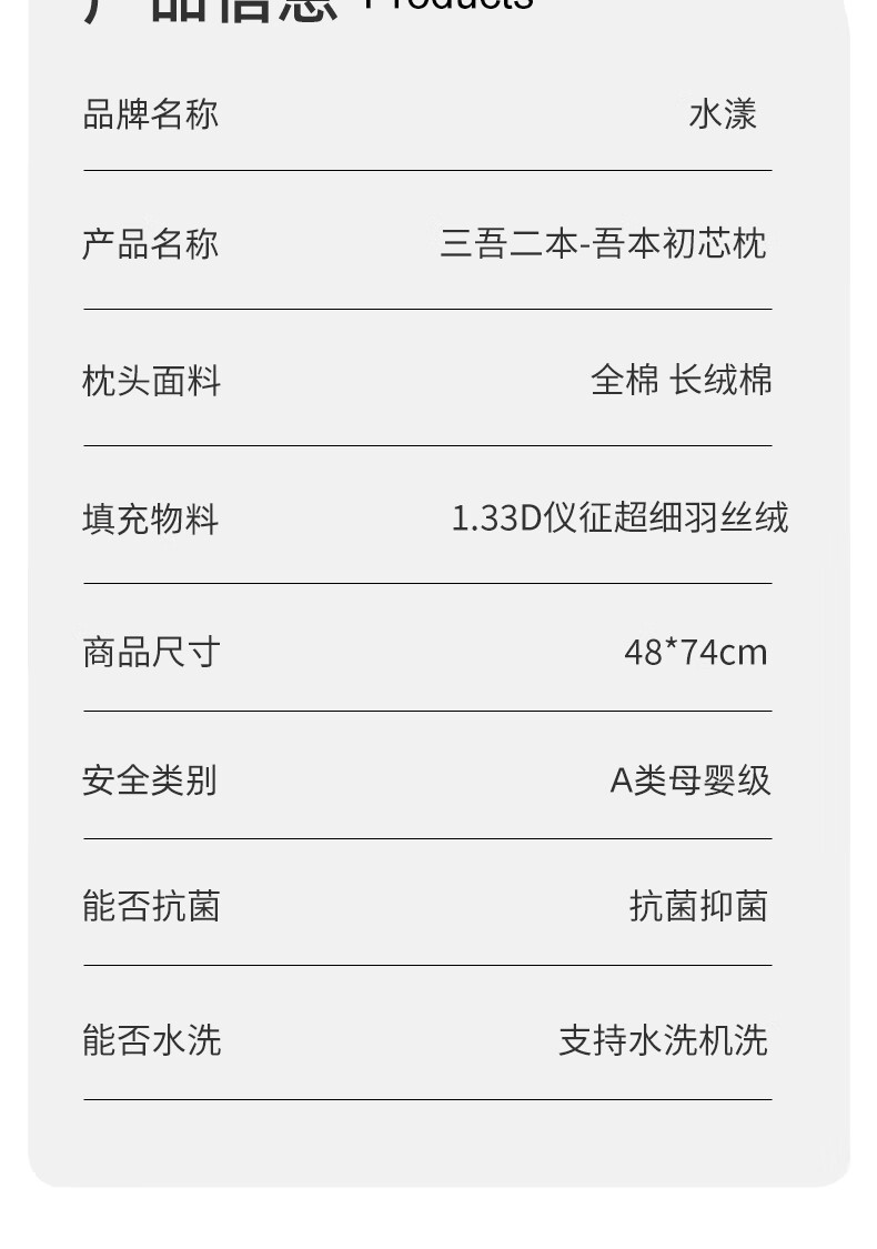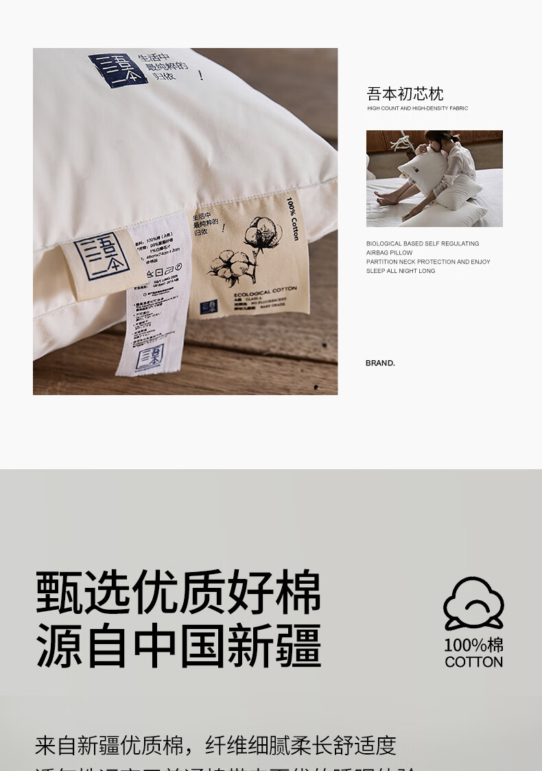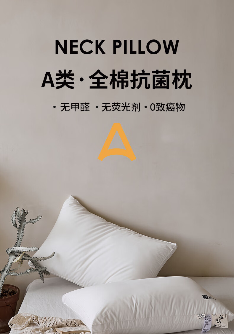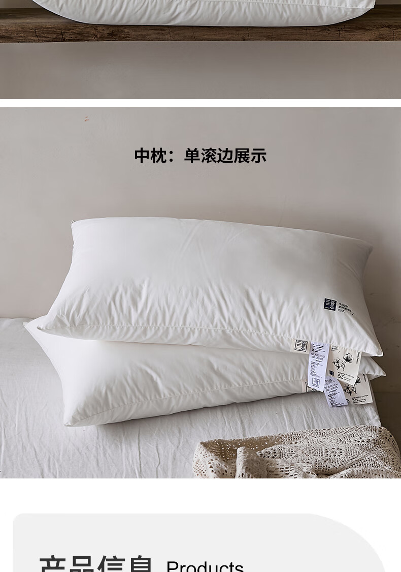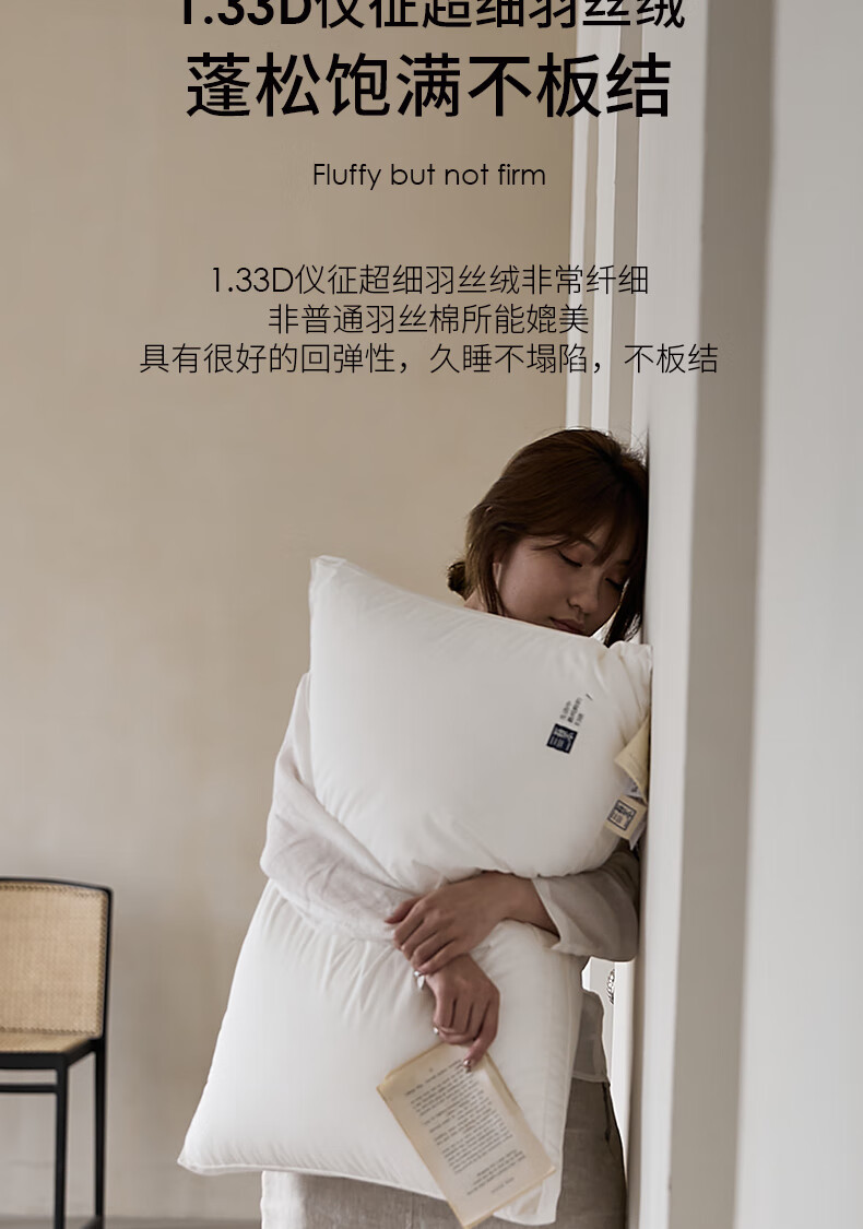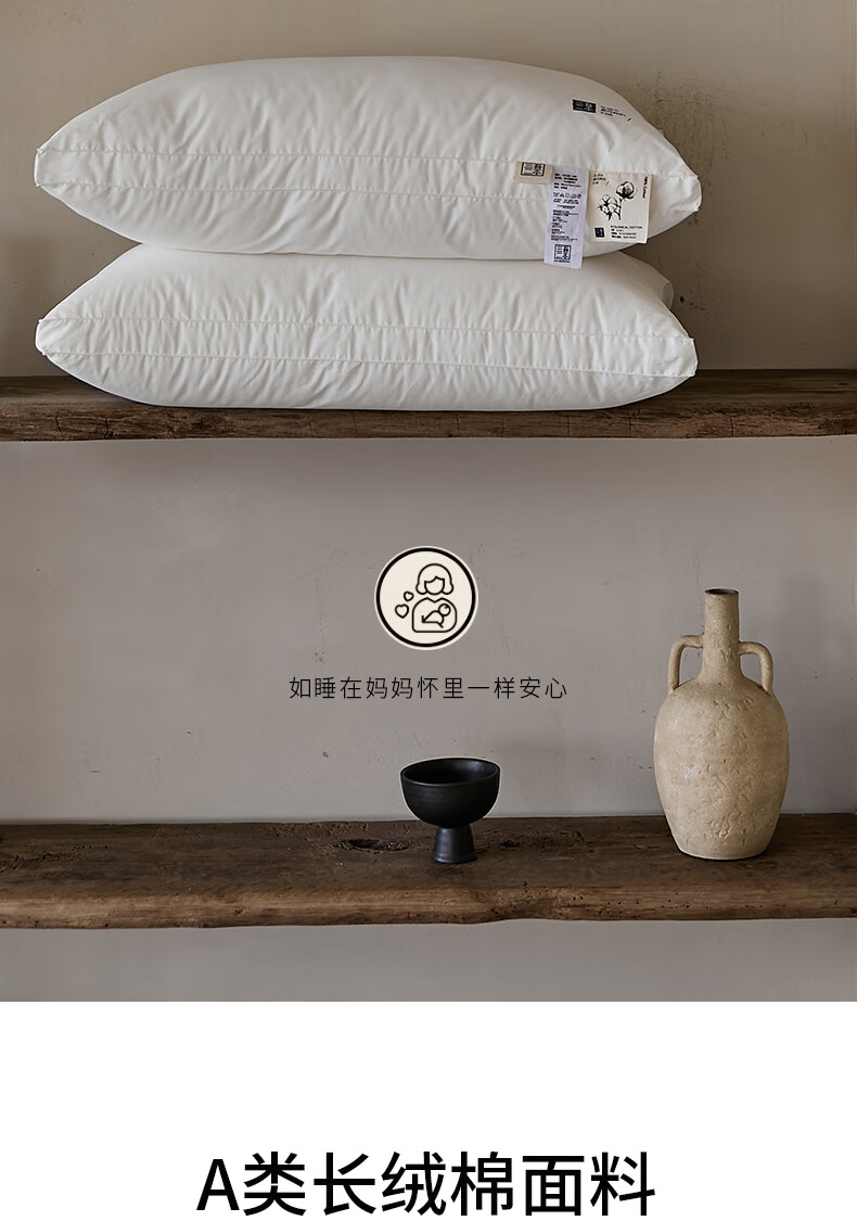 水漾日式A类羽丝绒枕芯护颈椎助睡眠不塌陷可水洗新款枕头 吾本初芯枕_单滚边中枕_1只装(48