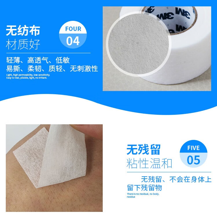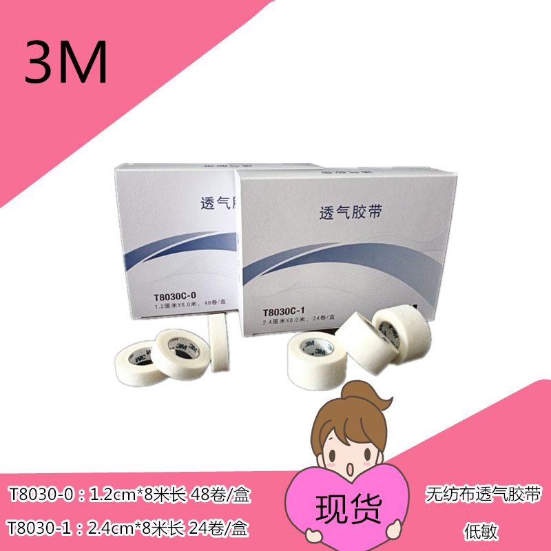 3M透气胶带医用胶布无纺布胶贴低敏T8030C-1纱布敷料输液固定3卷装