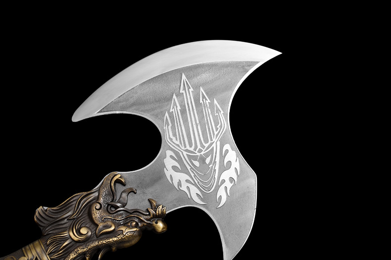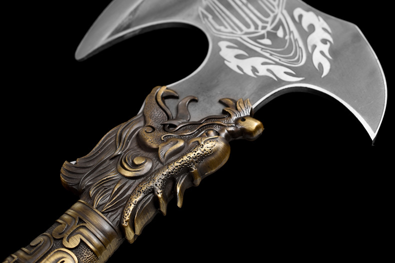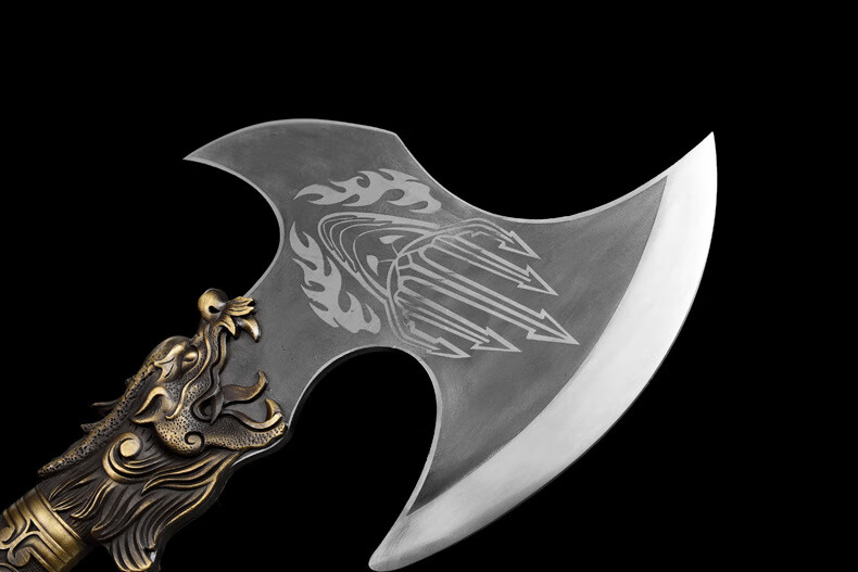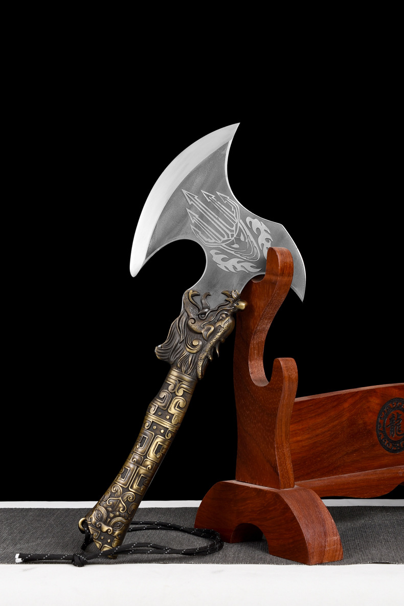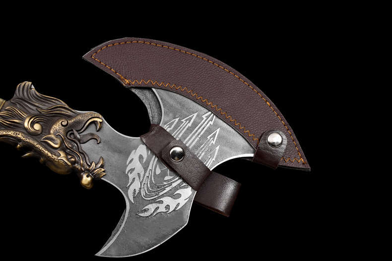 龙虎斩龙泉锻打砍骨斧厨房商用斩猪牛羊大骨刀屠夫肉摊肉联厂锋利剁骨刀 铁叉战斧【带皮套】