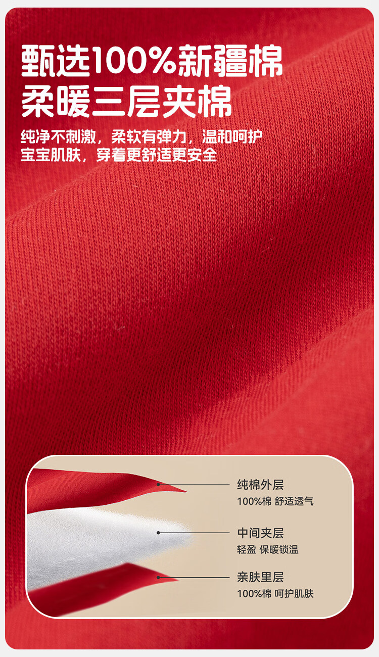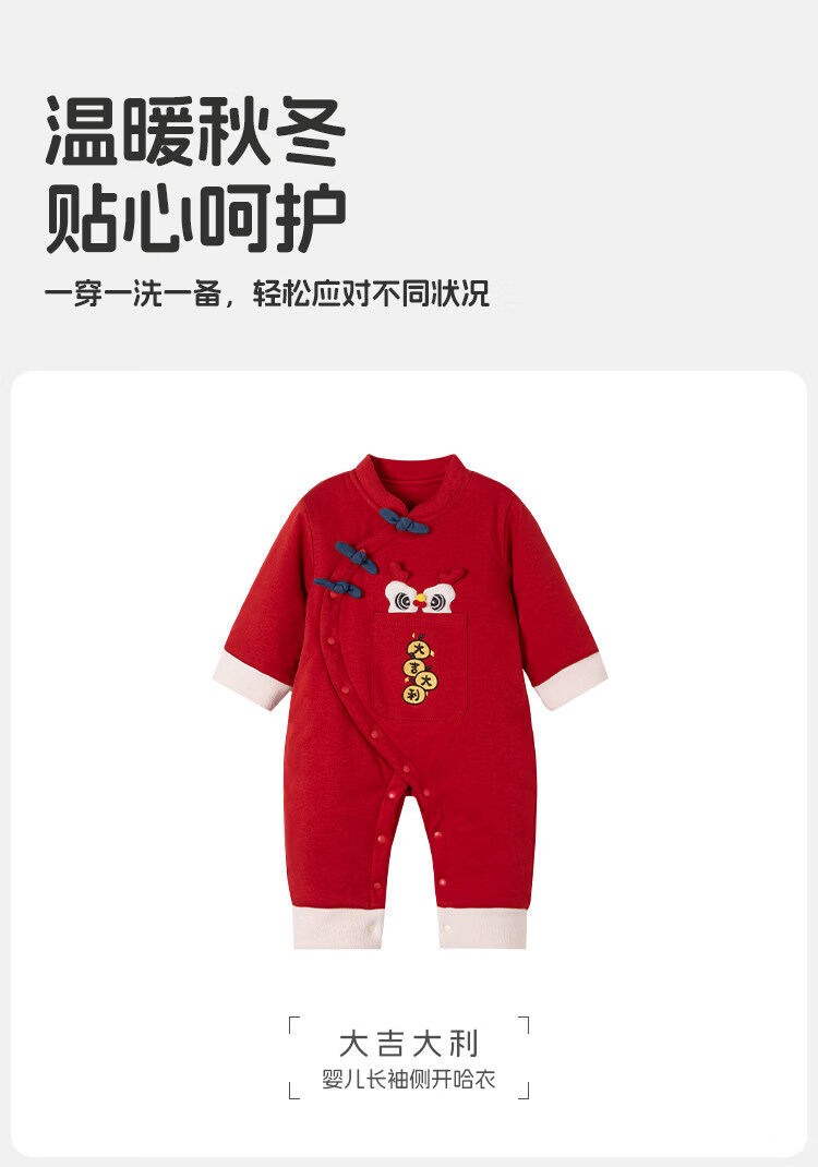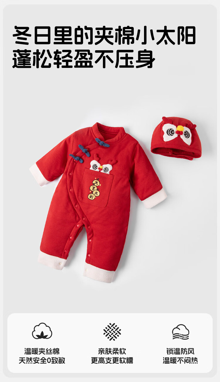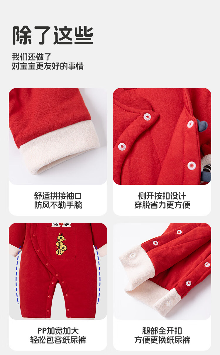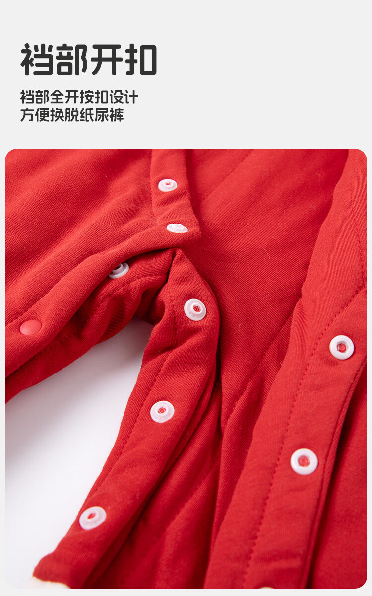 Kordear宝宝加厚夹棉保暖连体衣婴儿拜冬年服红色过新年服棉服 大吉大利 73cm