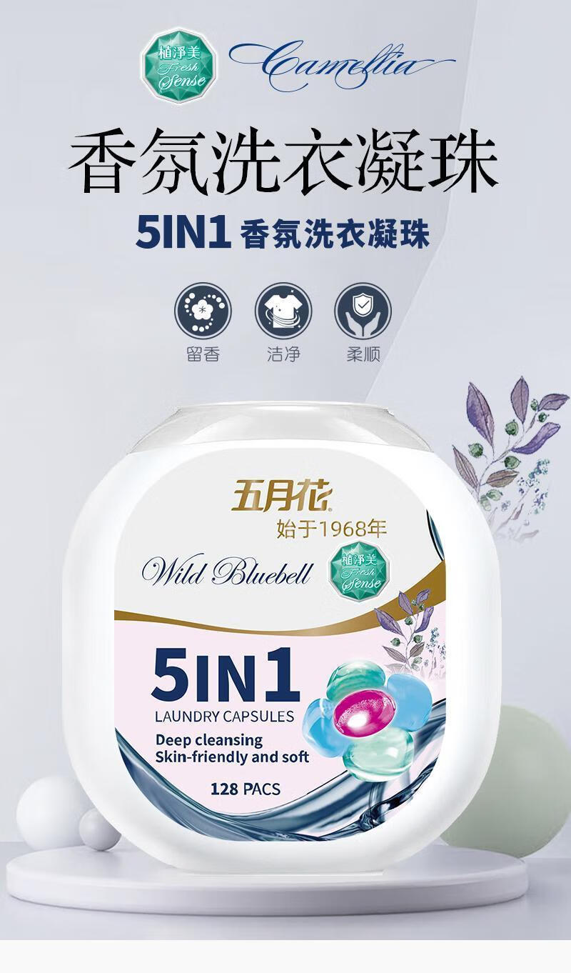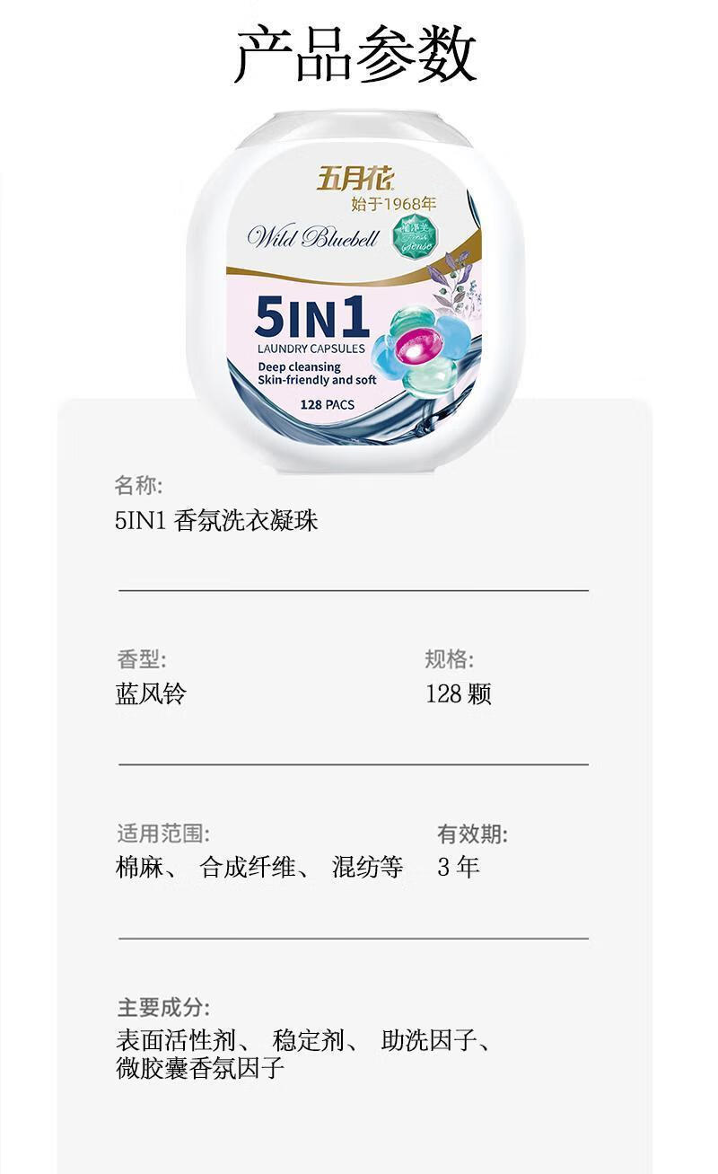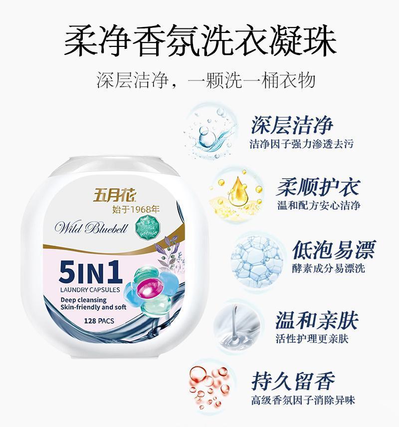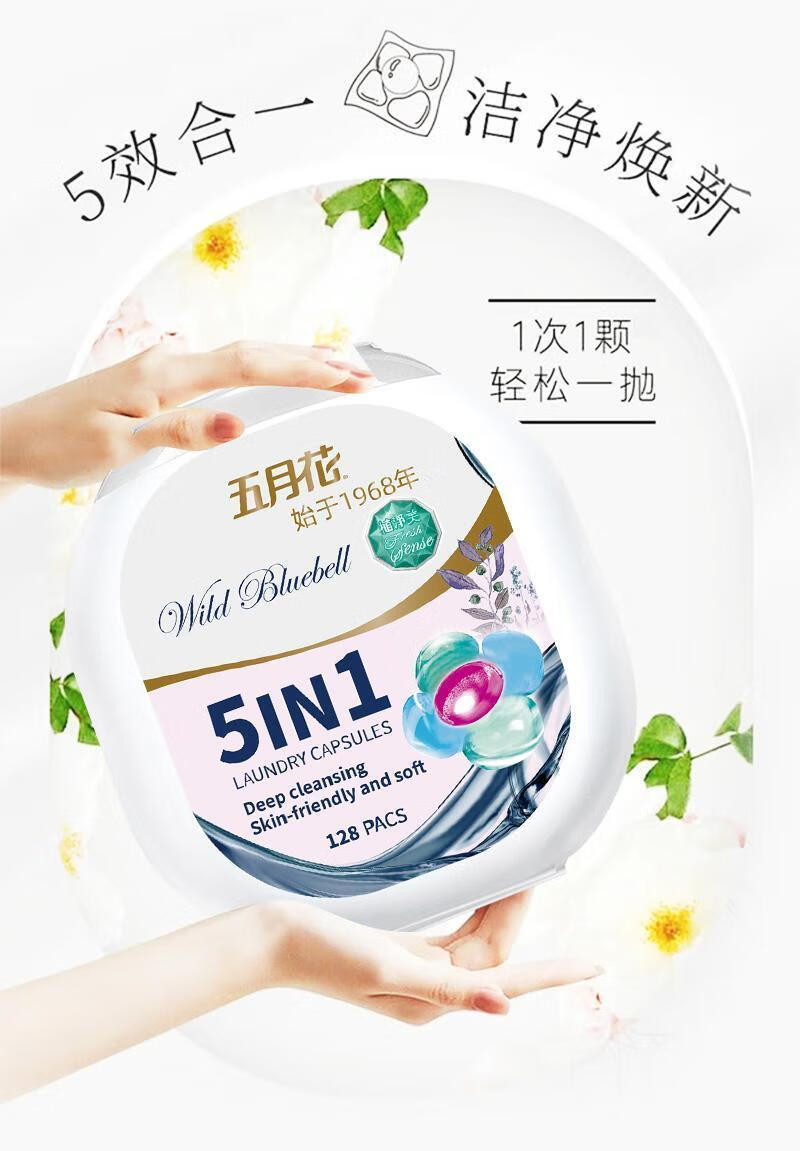 五月花【品质优选】五月花大桶130粒洗衣机五合一洗衣凝珠深净柔顺去渍 套餐 蓝风铃130颗共1桶