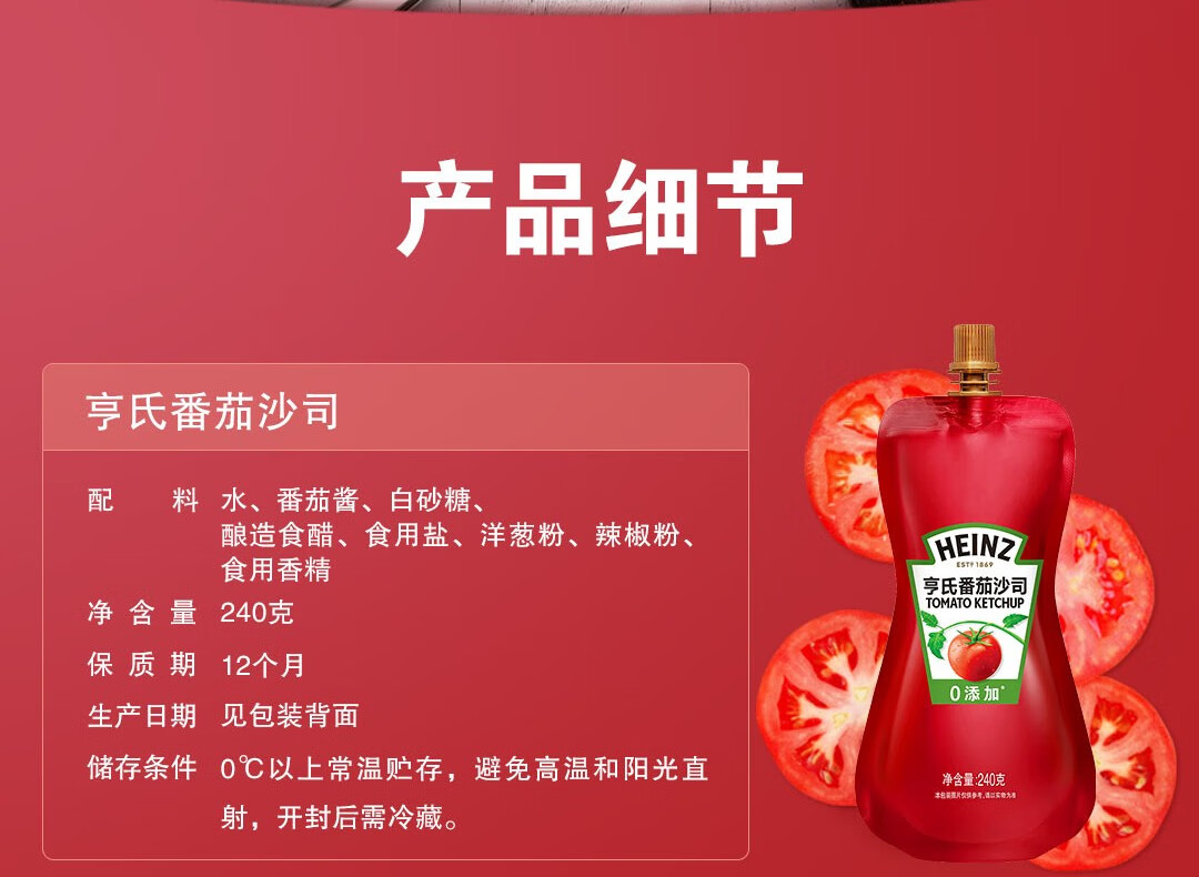 亨氏(Heinz)番茄酱 袋装番茄沙司240g*2袋 意大利面薯条酱