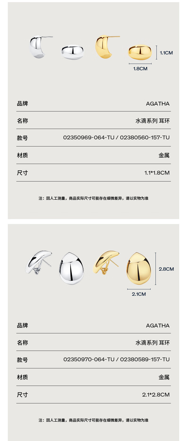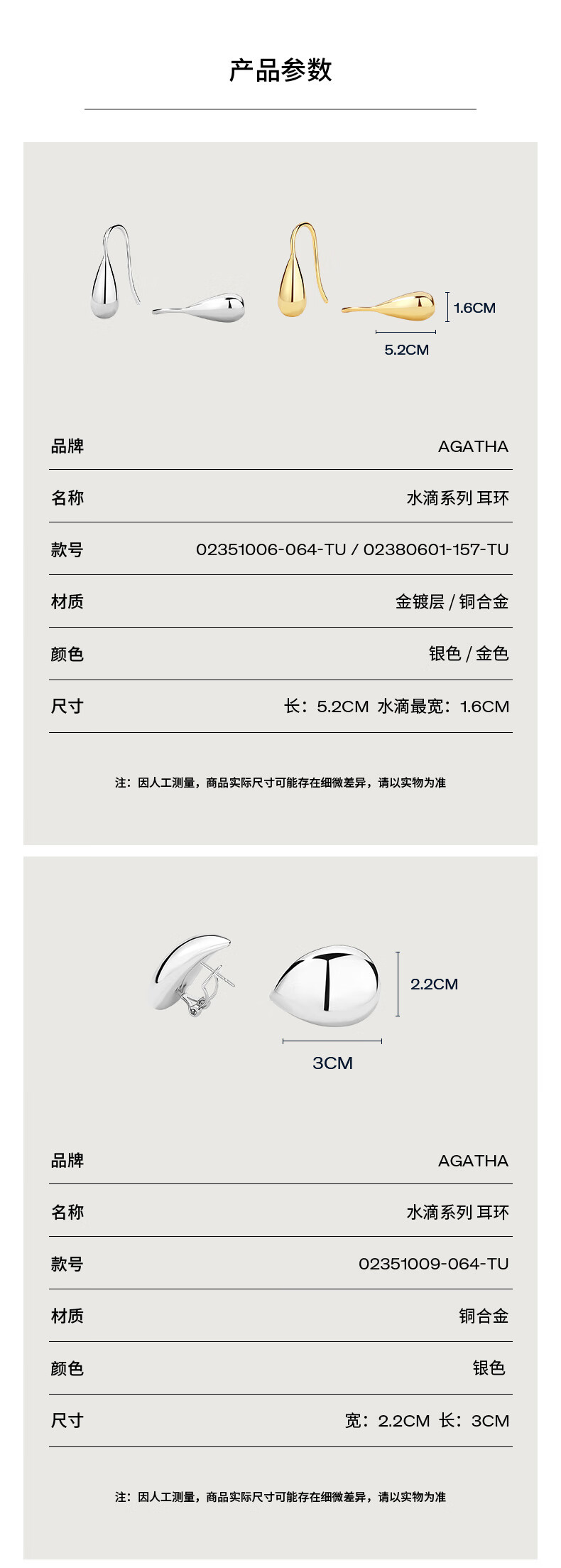 AGATHA/瑷嘉莎 水滴系列耳钉女士 新年礼物送女友高级感小众气质耳饰 【新品】银色露珠耳钉