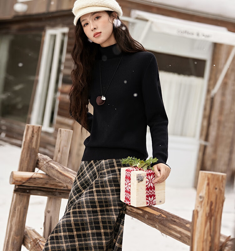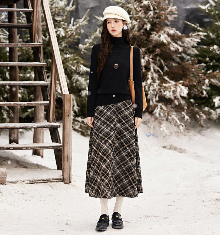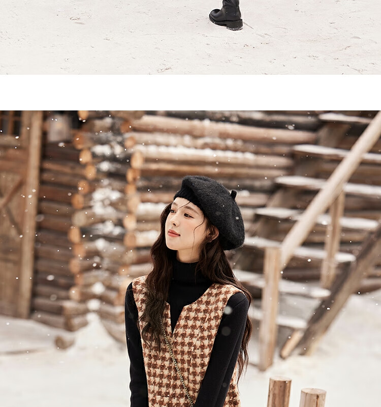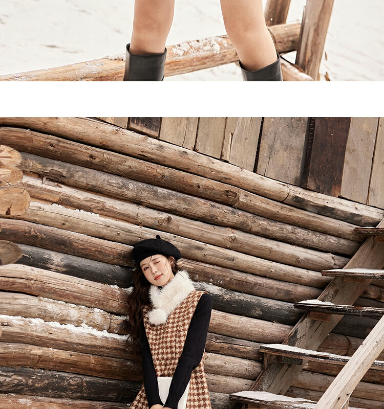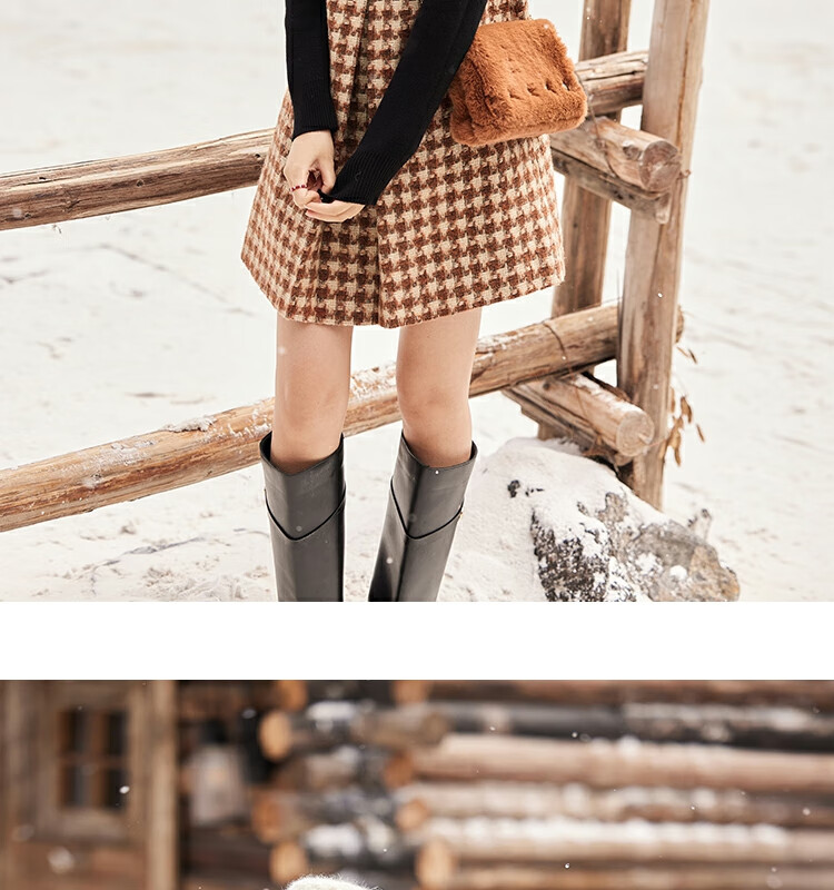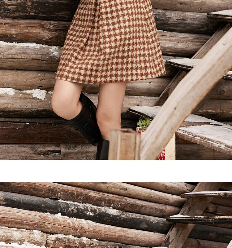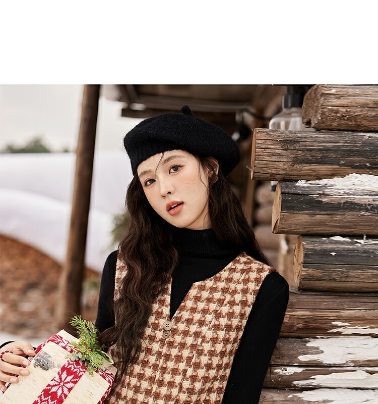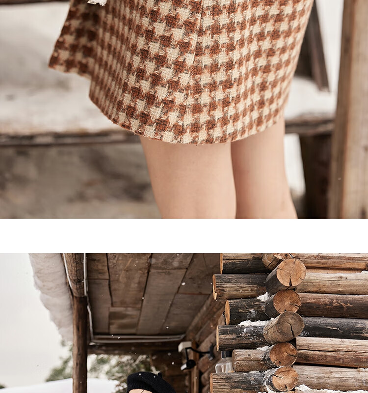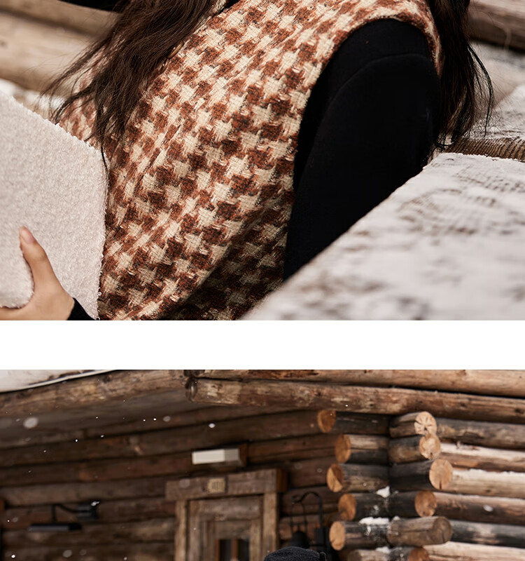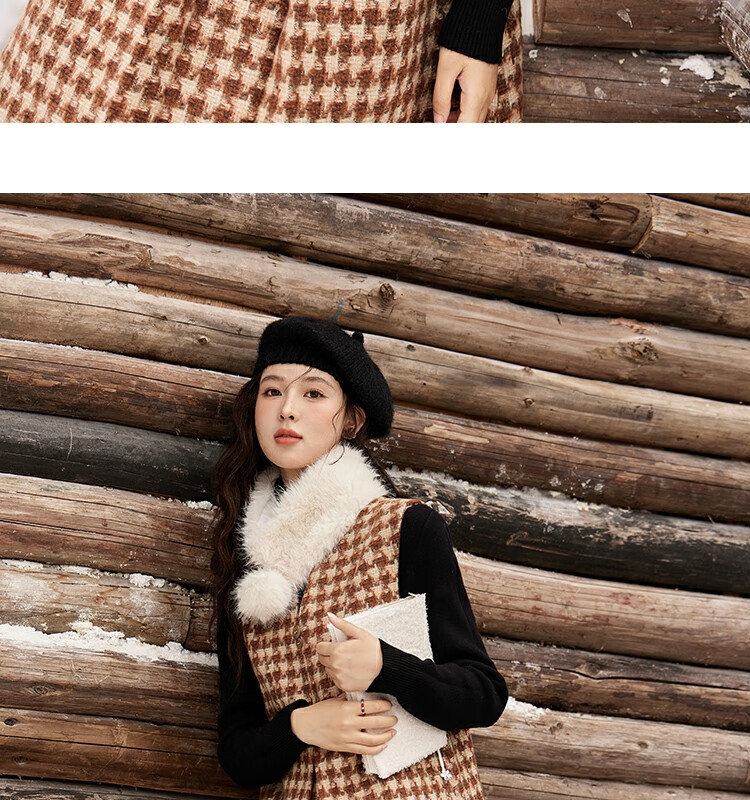 谜秀小香风红色新年红千鸟格背心连衣裙女2025冬复古无袖V领裙子 复古红格 背心连衣裙 M