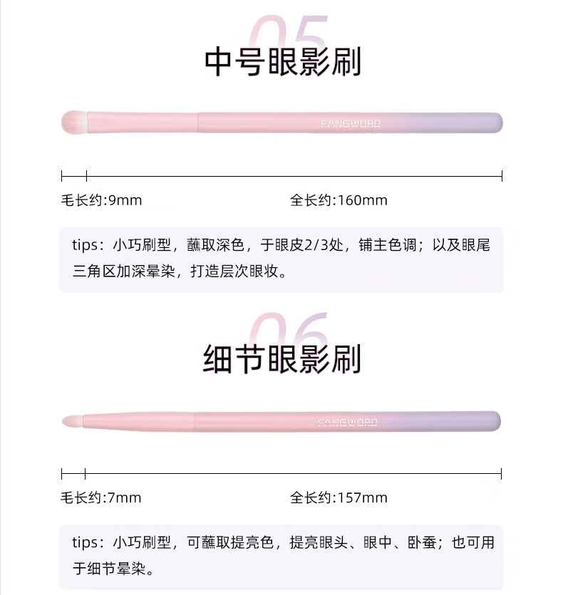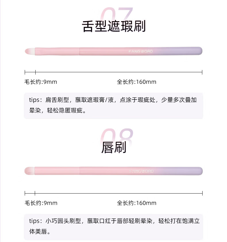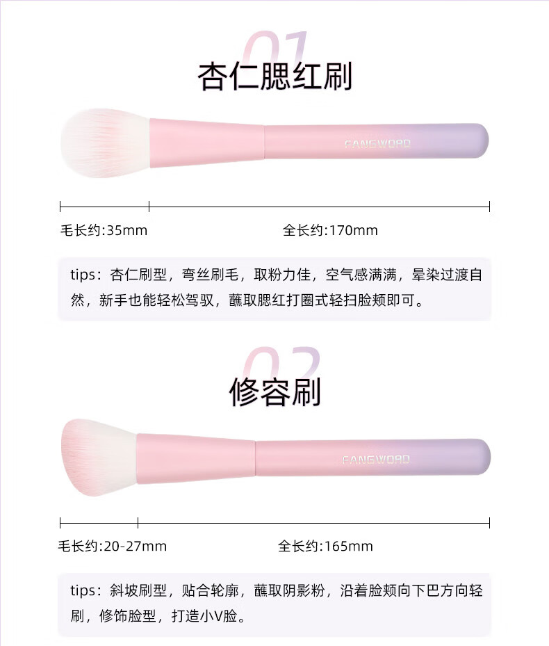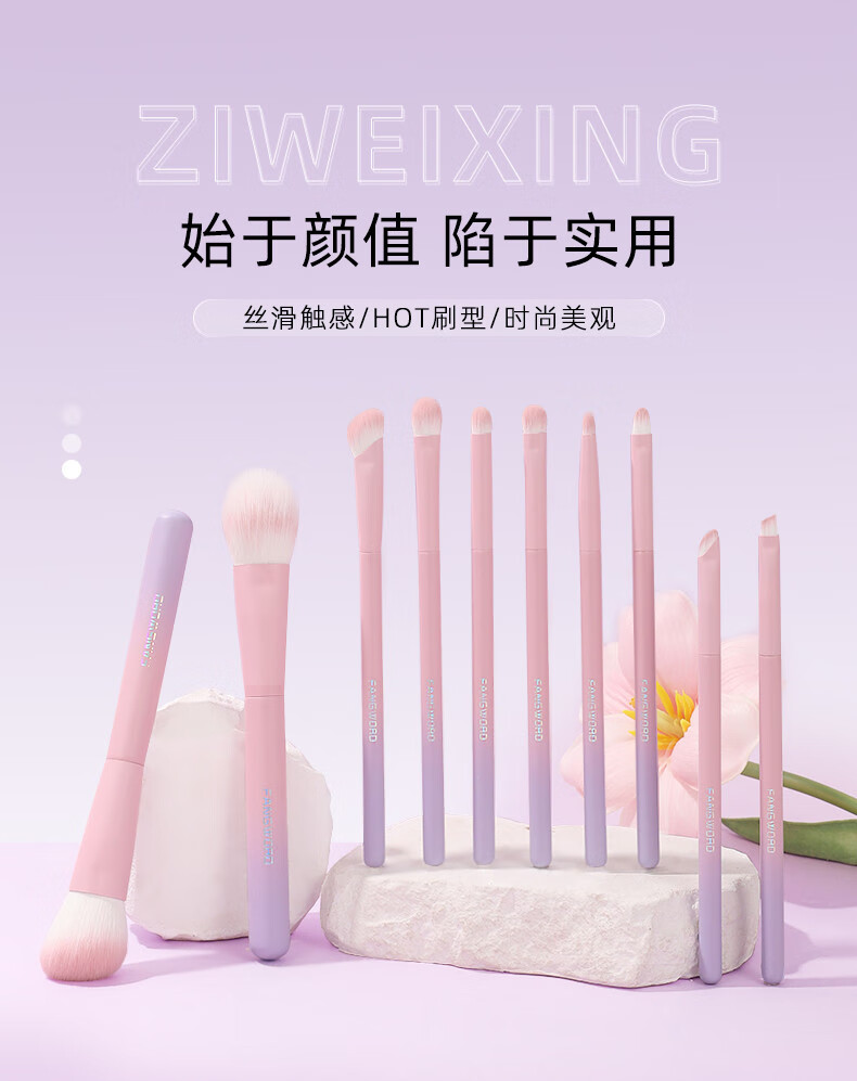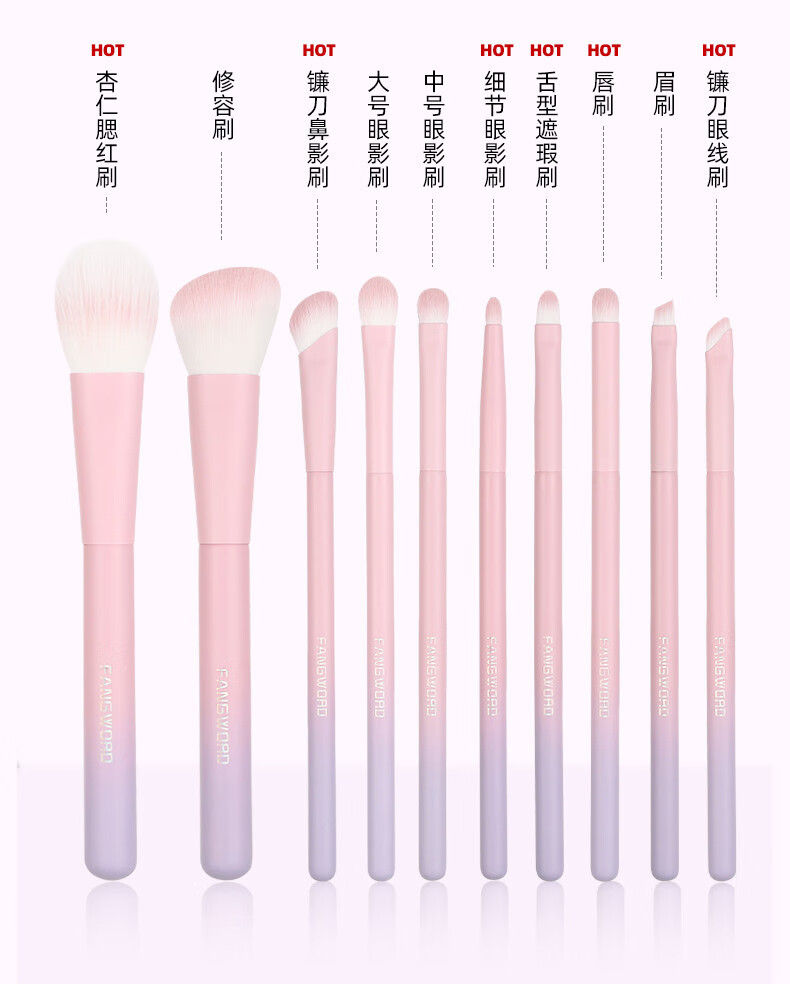 芳语紫薇星10支套刷腮红修容遮瑕鼻影眼影眼线眉刷唇刷渐变化妆刷 芳语紫薇星10支化妆刷 人造纤维