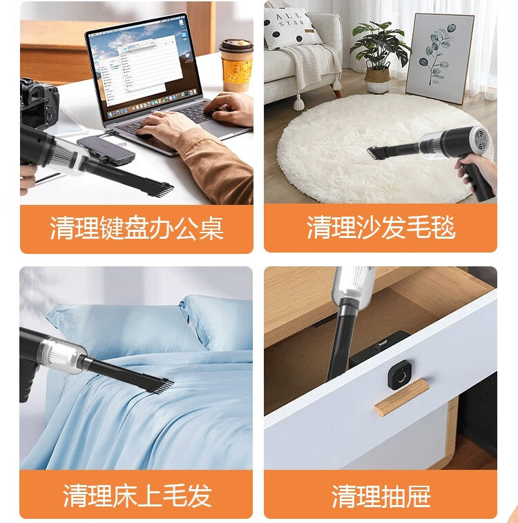 吸尘器吹吸两用家用室内桌面清洁衣柜充电手持式吹风机车载吸尘器 车载吸尘器【橙色】