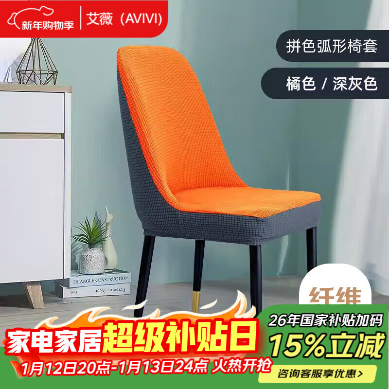 艾薇弧形椅子套罩餐椅座套餐桌椅套万能全包坐椅凳子套罩芝麻橘灰