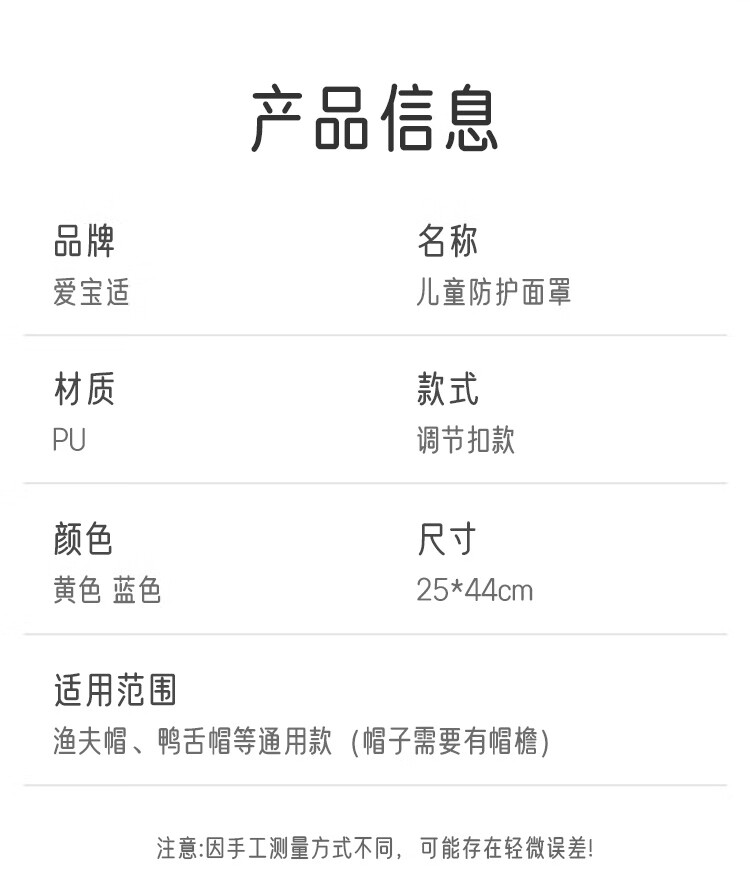 爱宝适婴儿帽子防护面罩防飞沫防唾液儿童遮阳帽渔夫帽通用 蓝色S756