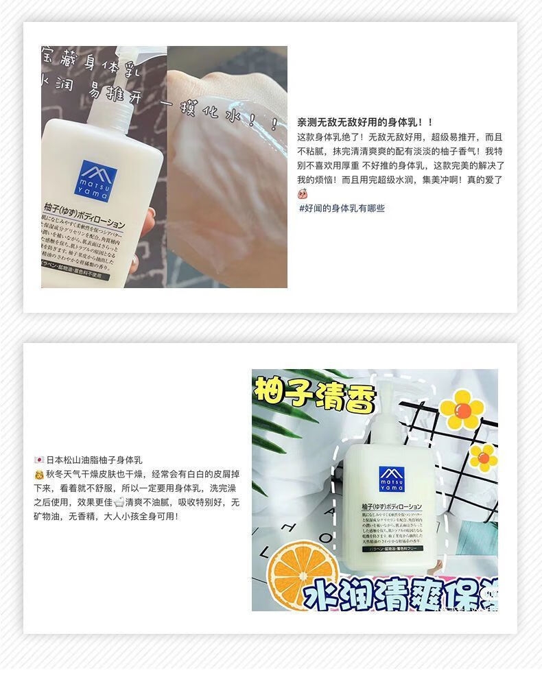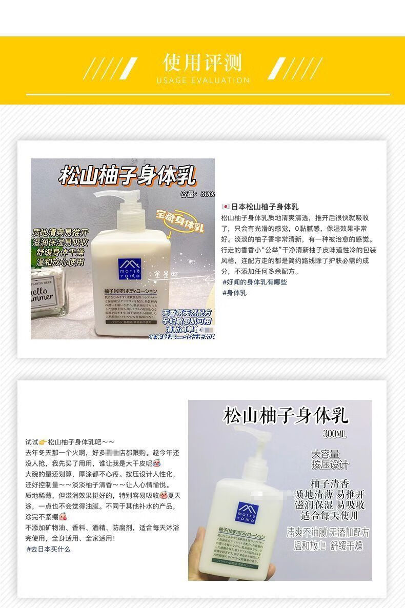 松山油脂国版天然油脂柚子身体乳清爽滋润补水清爽不油腻保湿润肤乳 1瓶装松山油脂身体乳300ml