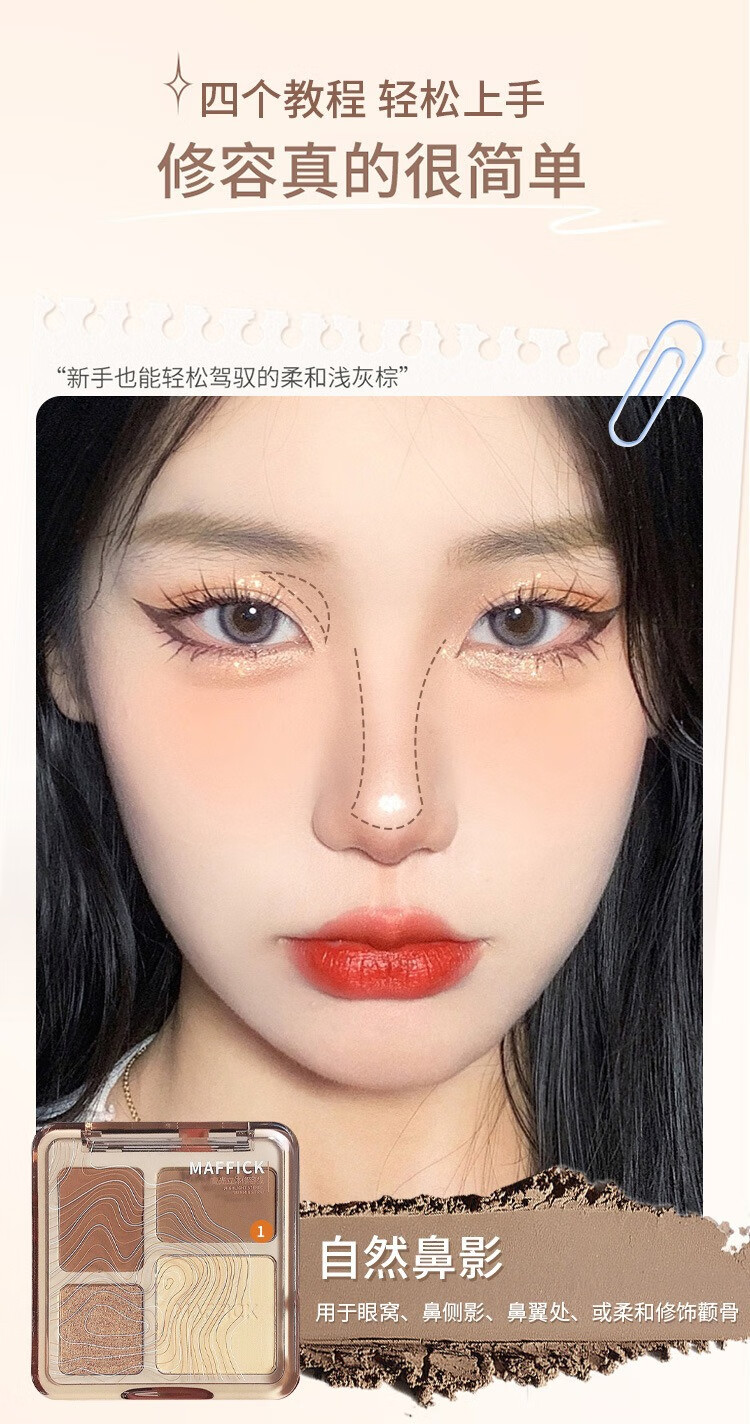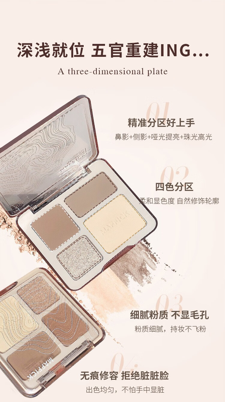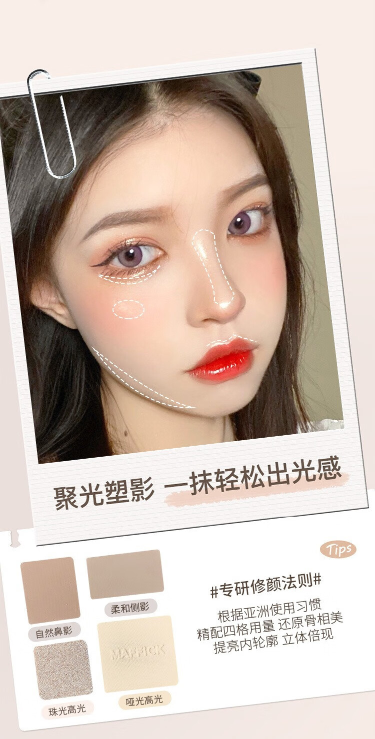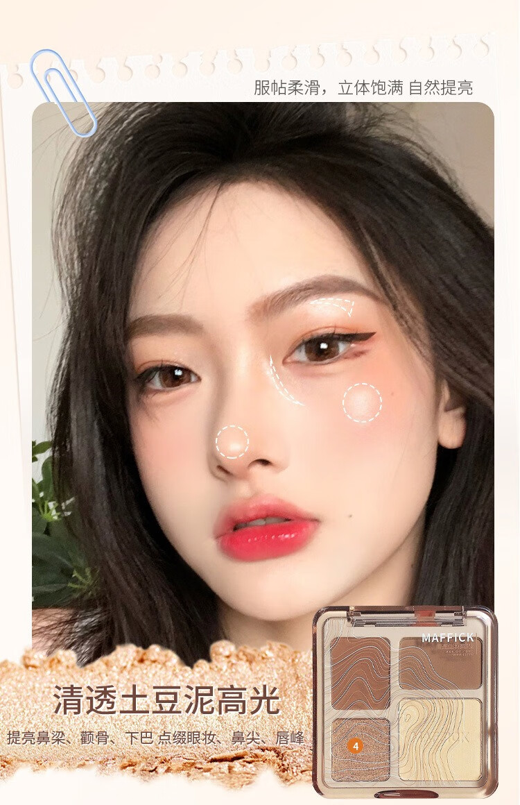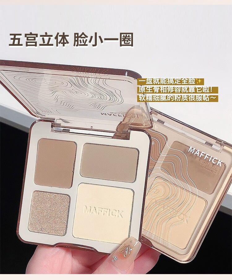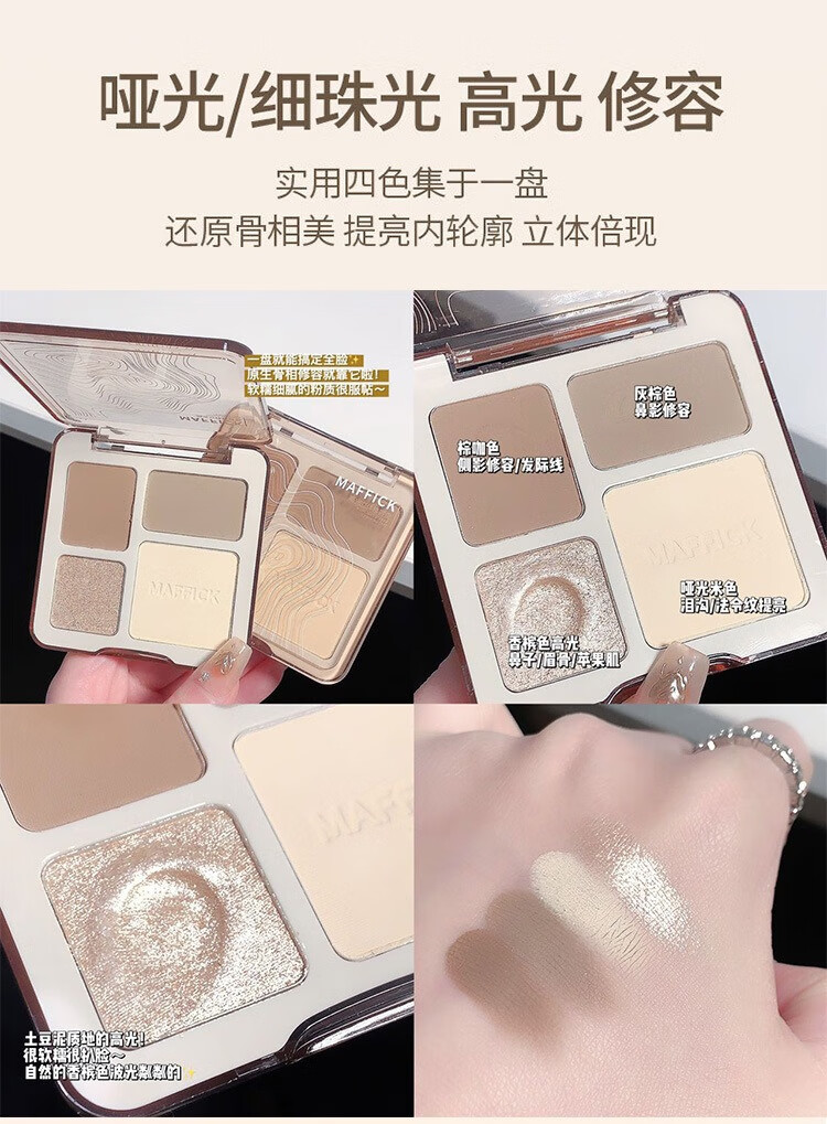 玛菲可修容盘高光四色一体盘自然哑光珠光立体鼻影提亮学生修饰 高光四色修容盘 1个装