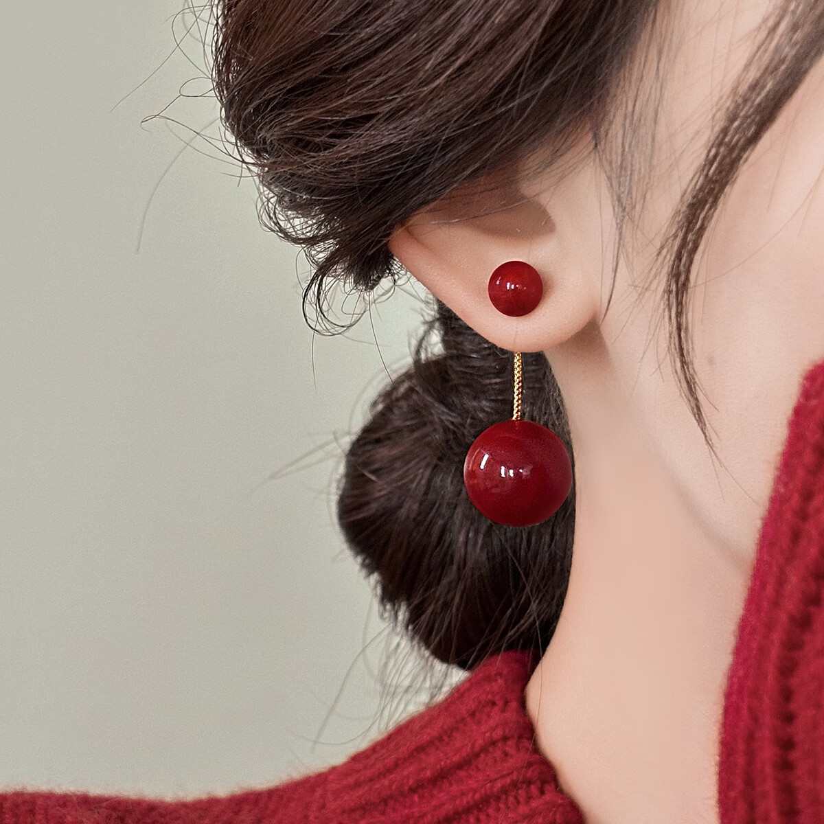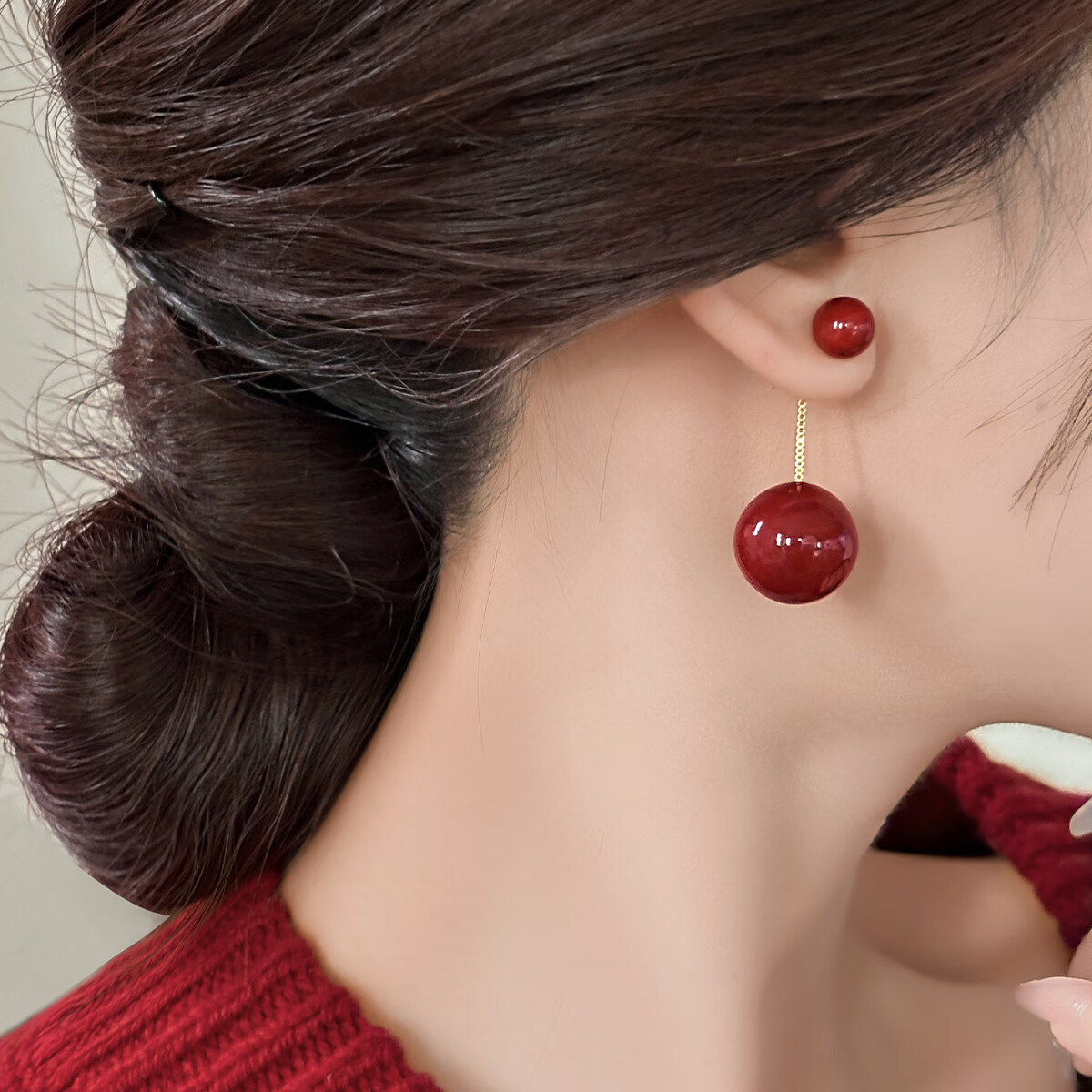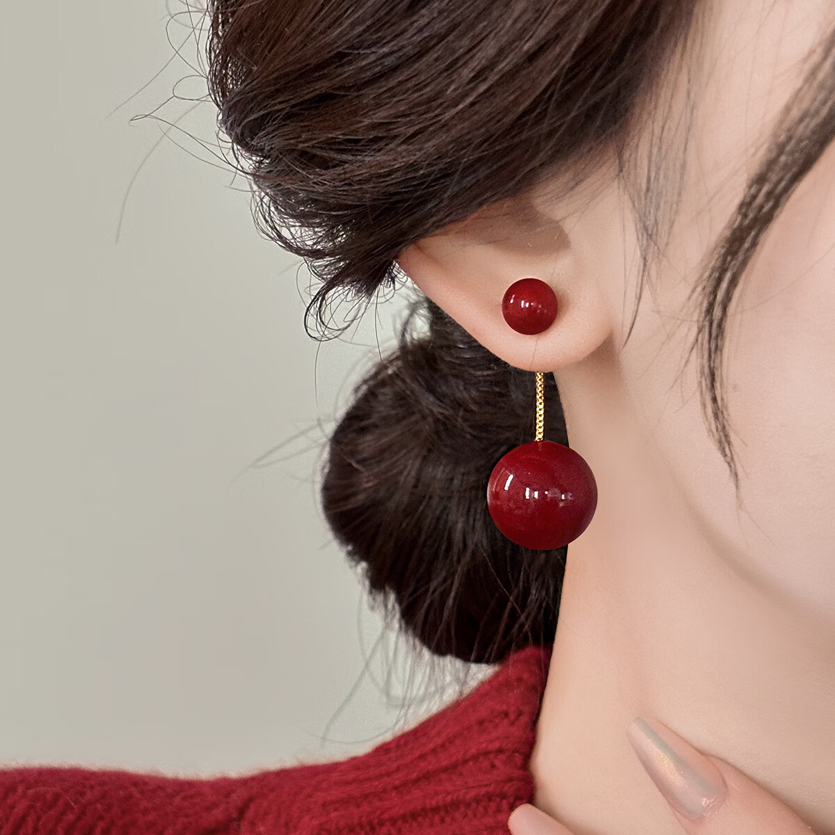 wsryxxsc长款流苏新年红色珍珠耳坠感银耳环2025新款复古耳饰耳钉礼物