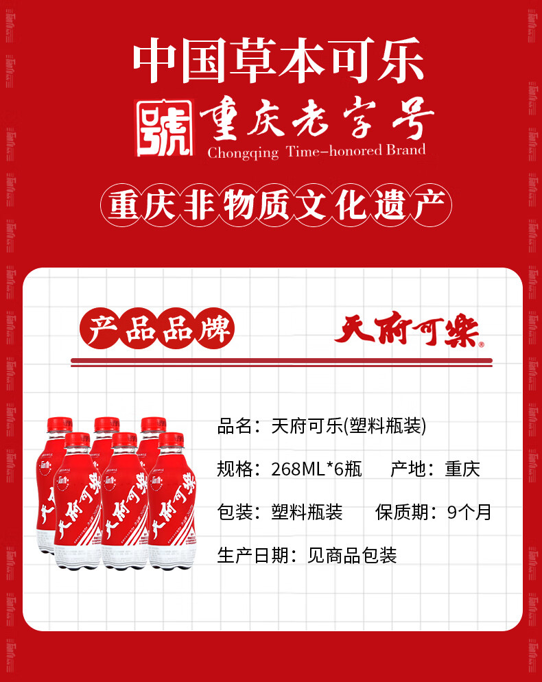 天府可樂草本植物精制老汽水国产经典好喝碳酸饮料怀旧汽水整箱 天府可乐时尚便携装268ml*12瓶