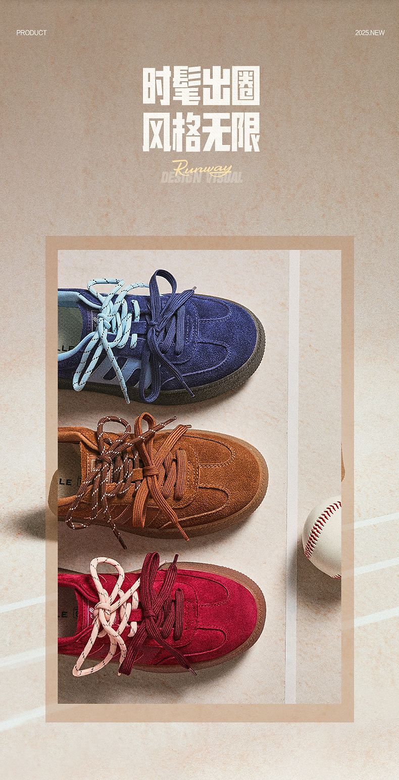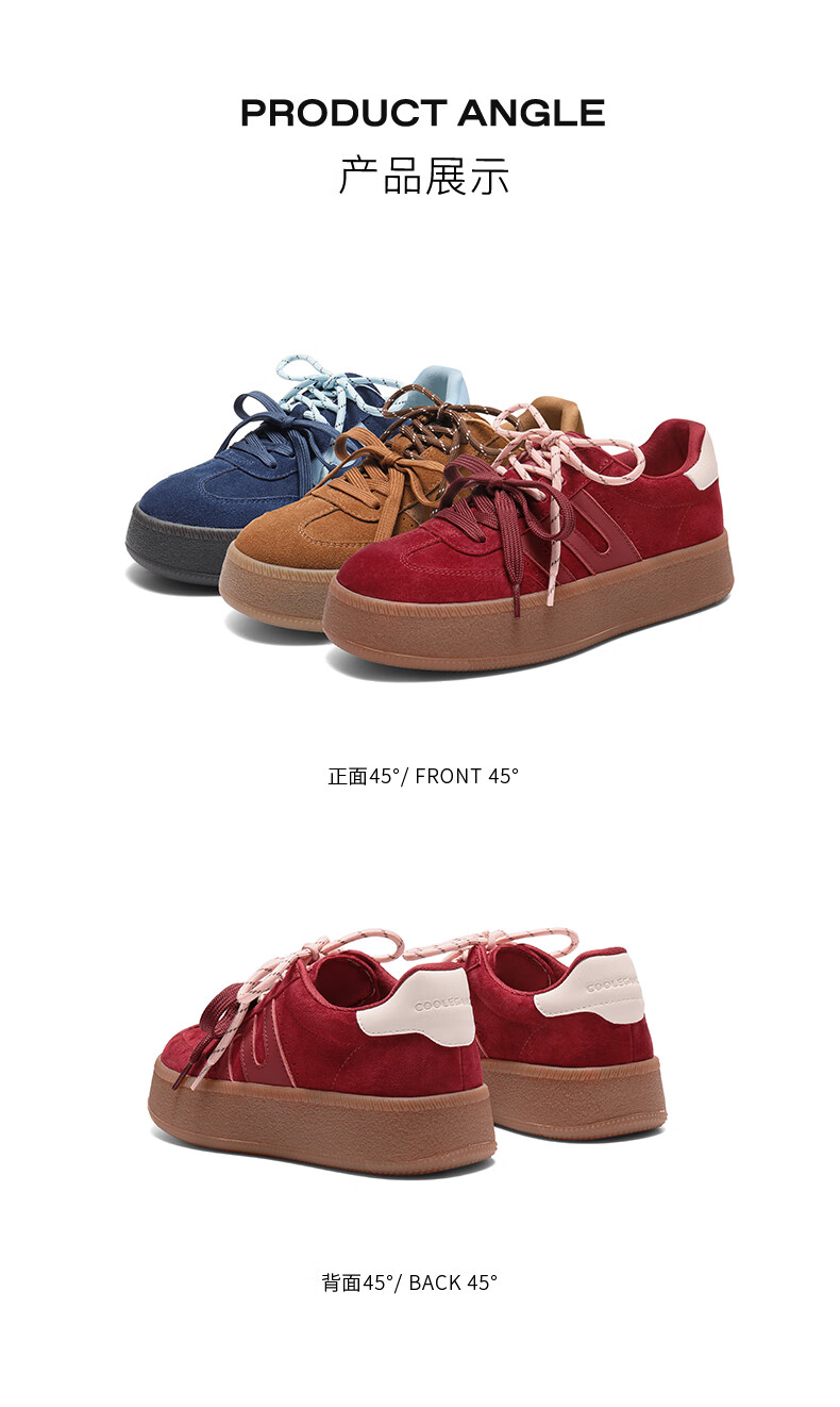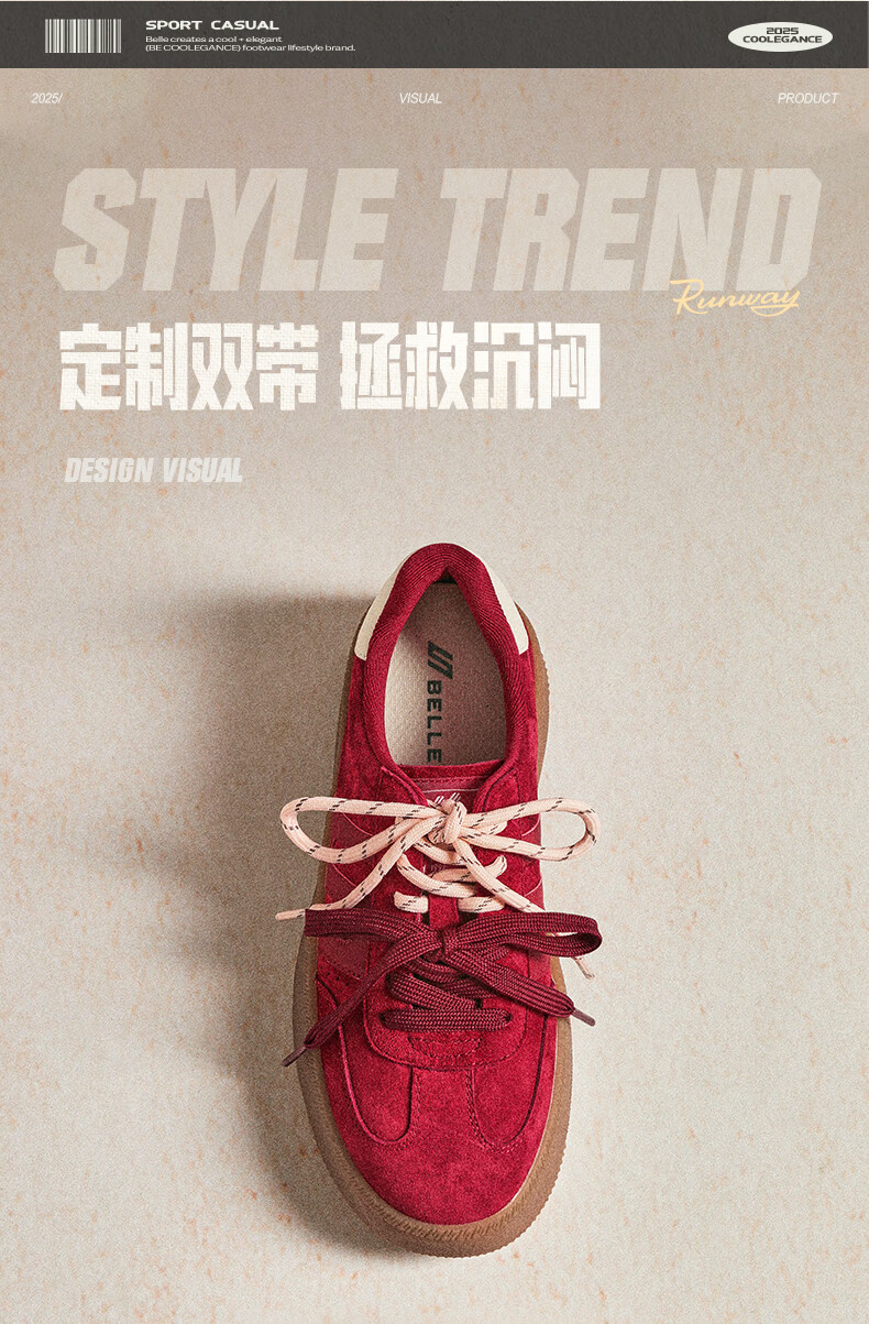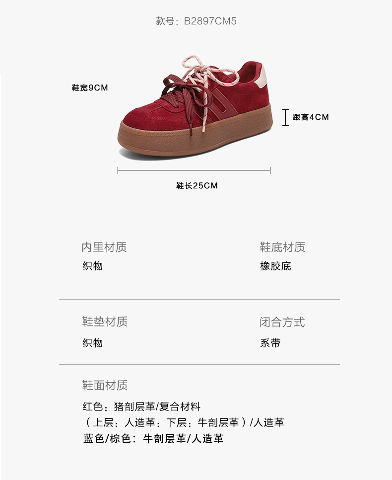 百丽(Belle)张凌赫同款绒面跑道德训鞋女双鞋带休闲鞋B2897CM5预售 红色 36