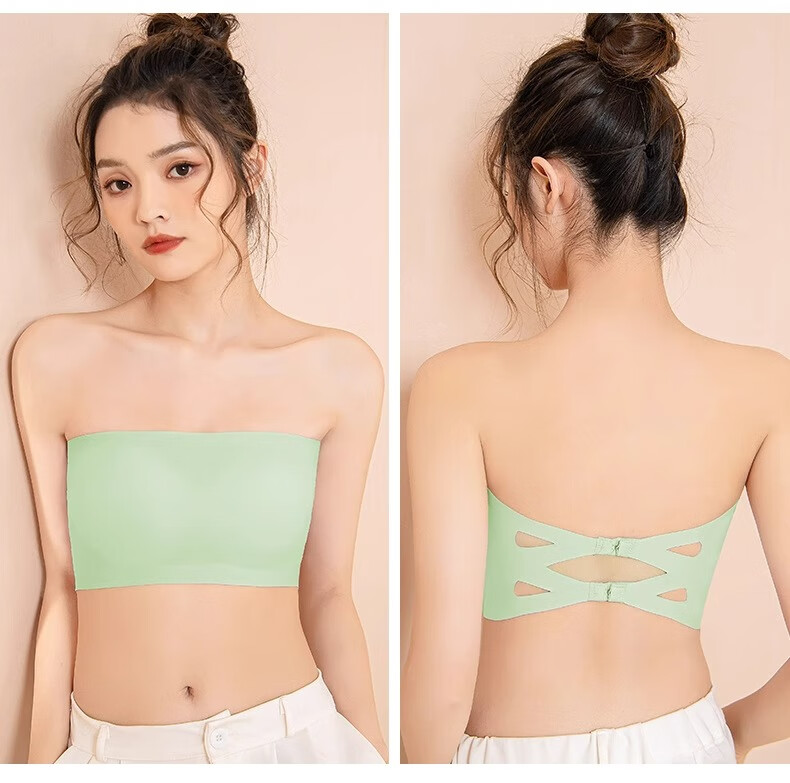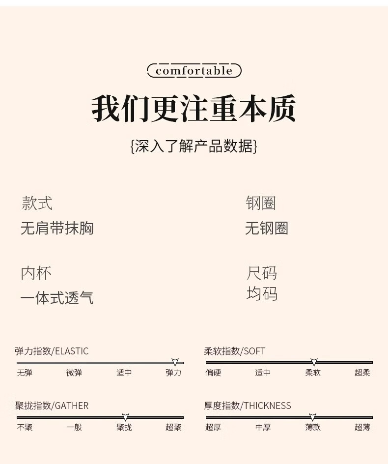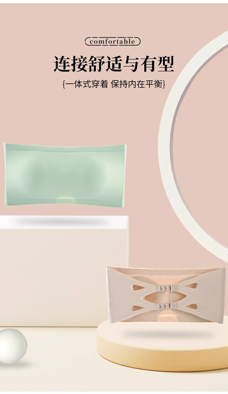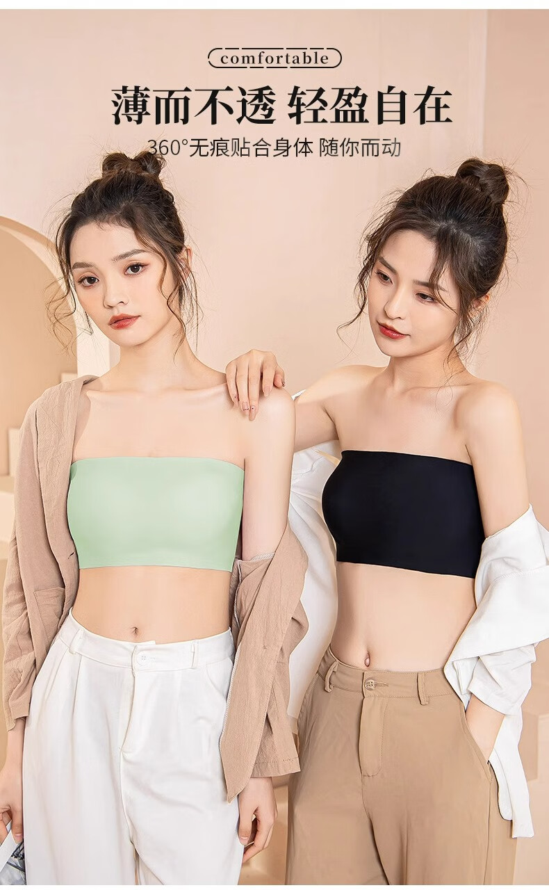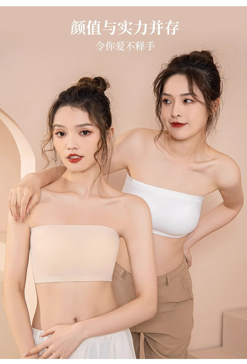 【FILA制造商】无痕女士抹胸无肩带内衣防滑防走光内搭一片式文胸 卡其色-【女款】 1件装