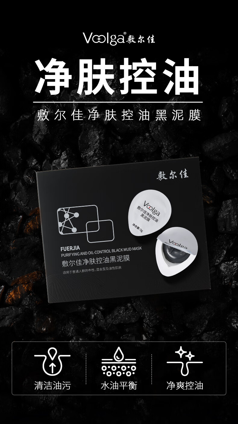 敷尔佳【成毅同款】黑泥膜涂抹式面膜净肤控油 平衡水油净透清洁 2颗体验装
