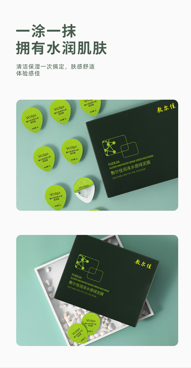 敷尔佳【成毅同款】涂抹式泥膜 绿泥膜补水保湿男女清洁肌肤 绿泥膜2颗体验装